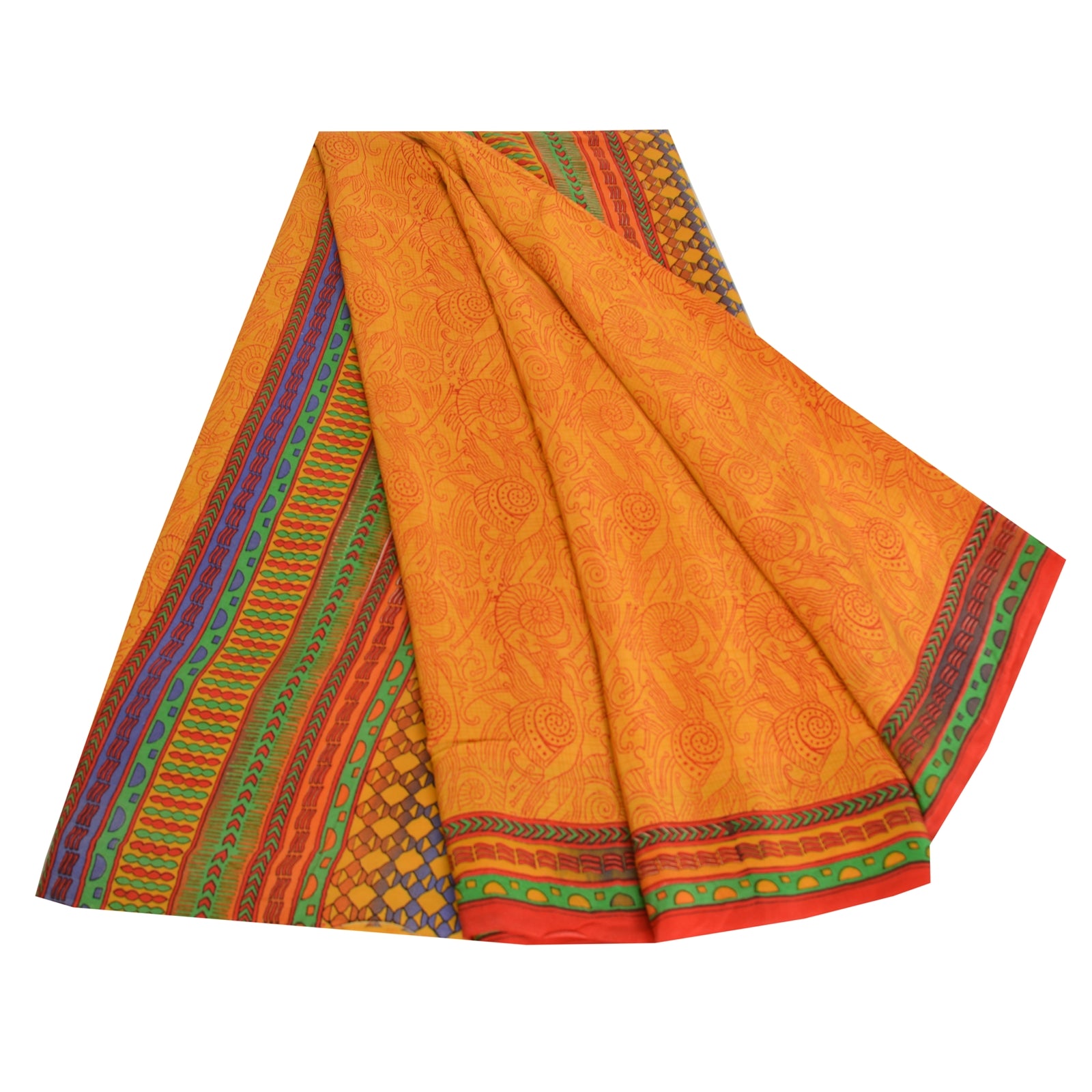 THE ITEM COLOR OR SHADE MAY BE DARKER OR LIGHTER THAN THE PICTURE.' Beautiful yellow colored pure crepe silk printed saree. Pallu & Border has printed geometric design. Floral design in center part of saree. What is special about this saree? Fabulous design is really enhancing the beauty of the saree. This unique vintage saree can be used for various crafting ideas even if you don't want to use it as a sari. Design a dress, use it as window,dressing, upholstery, sarongs, throw, dress making and table linen much more. Let your creative juices flow and use this decorated Sustainable Fabric in multiple fashion. International buyers please note: Import duties, taxes, and charges are not included in the item price or postage cost. These charges are the buyer's responsibility. Please check with your country's customs office to determine what these additional costs will be prior to bidding or buying.Buyer will pay custom duty/tax. It is calculated and charged differently by every country. As a seller I do not have any control over it.VAT or sales tax is calculated by the platform at the time of checkout. Customs charge is payable at the time of delivery.
