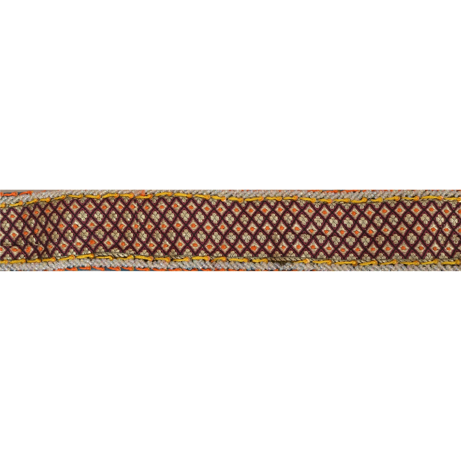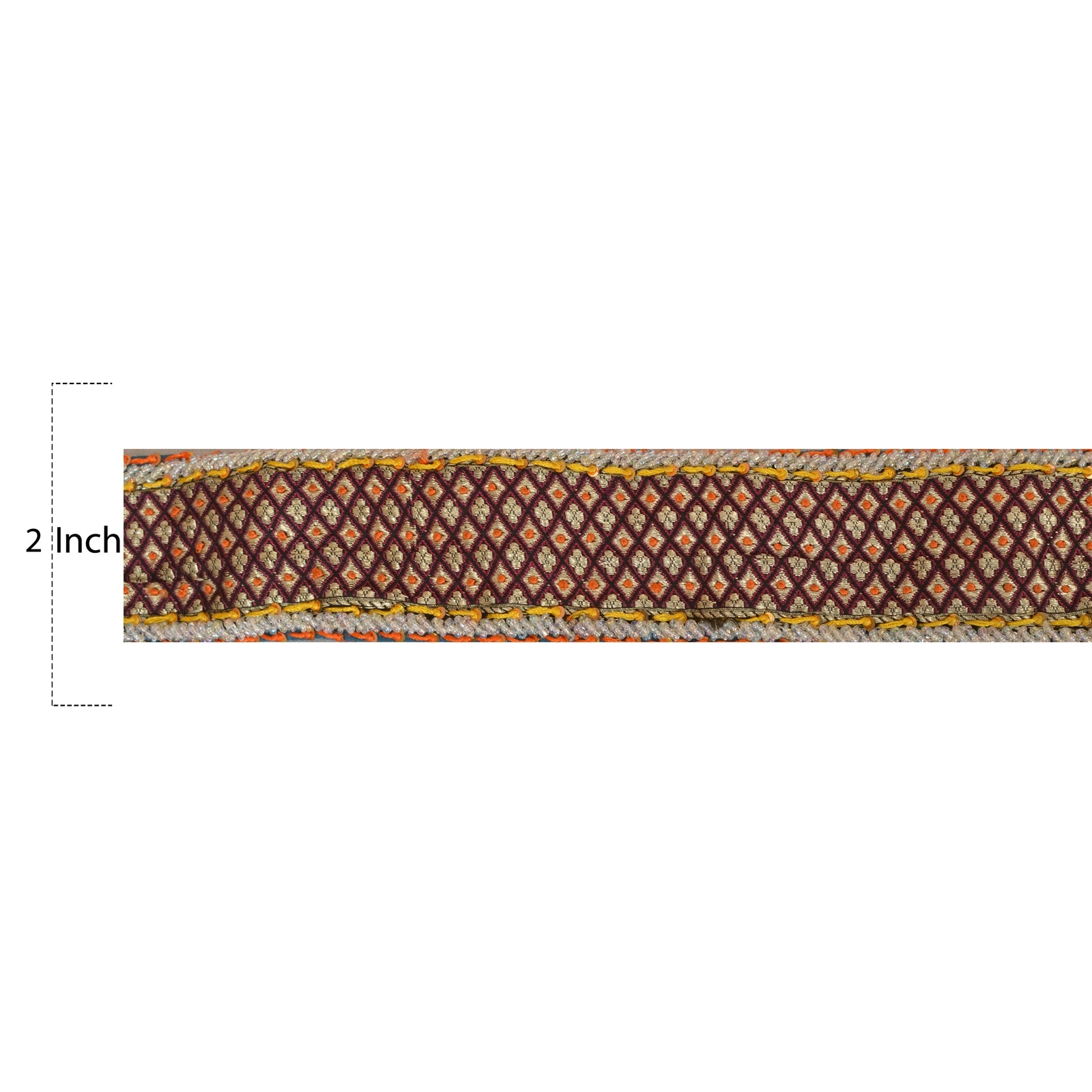 Fabulous georgette hand beaded sari border in grey color highlighting patch work. Border has beautiful floral patterns painstakingly hand beaded with multi color woven Sustainable Fabric patch work, white glass beads, gold sequins work. Further you can see fine detailing with orange, yellow thread work. WOW!! an awesome one of a kind versatile border. 1 Quantity = 1 Yard