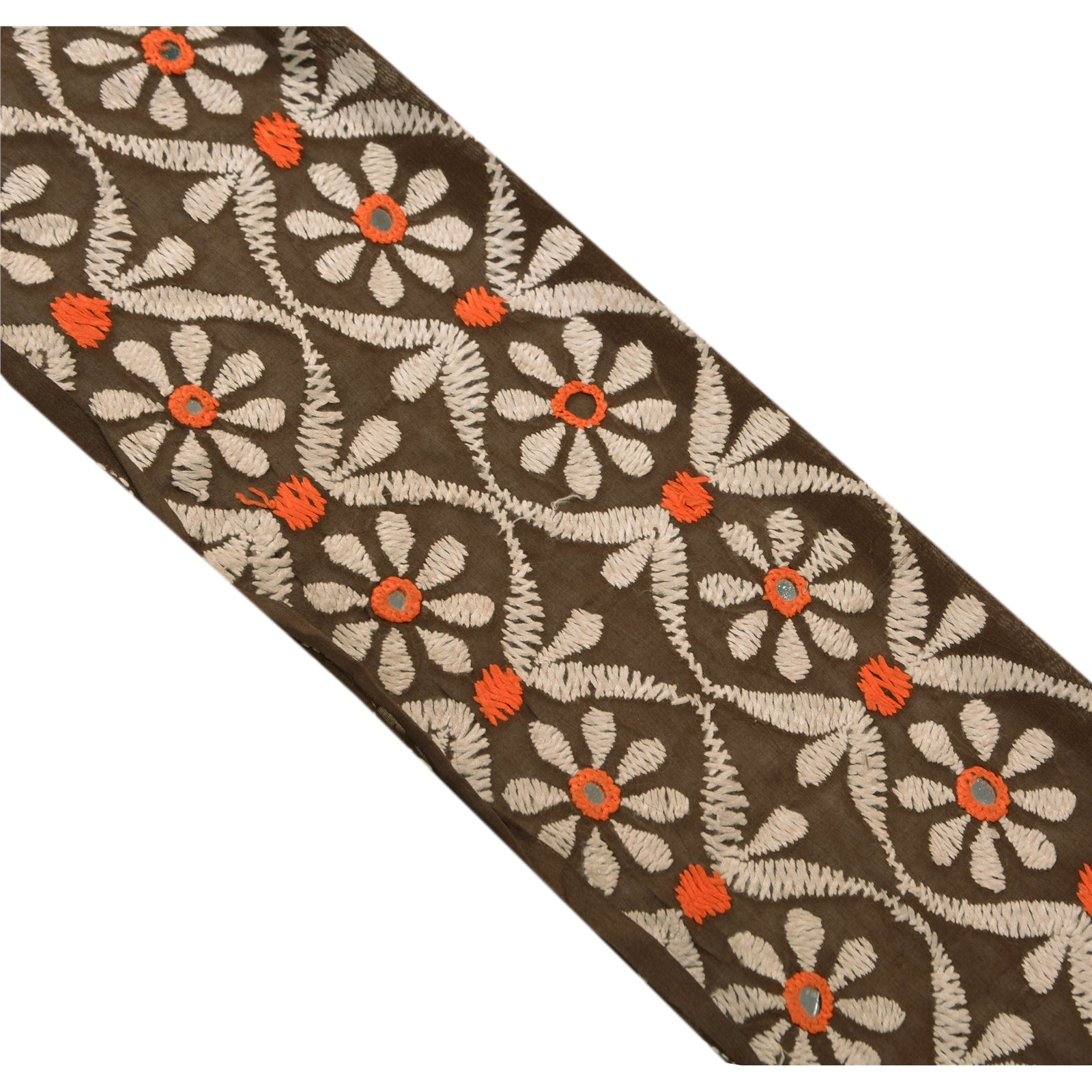 Sanskriti Vintage Sari Border Hand Embroidered 1 Yd Trim Sewing Brown Craft Lace