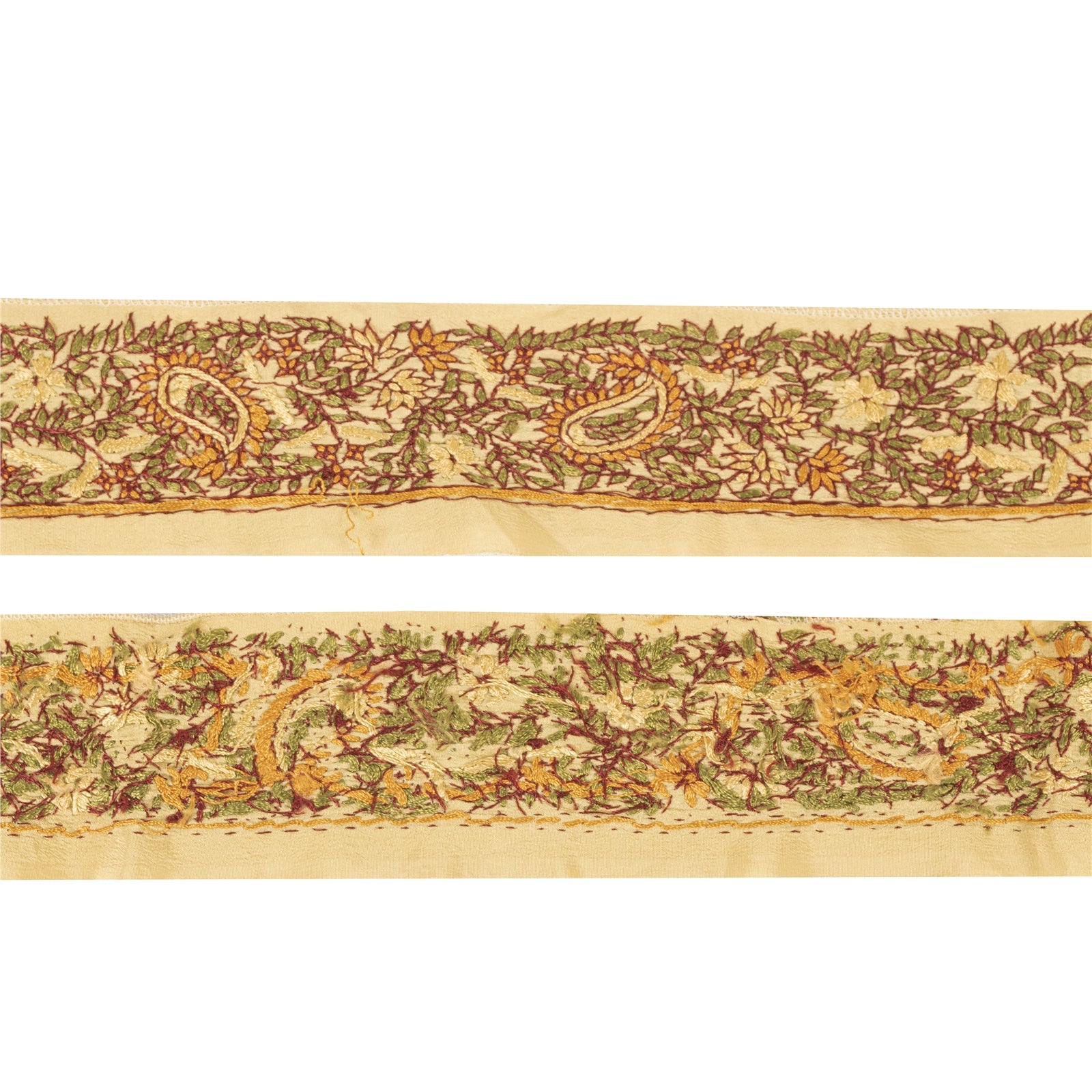 THE ITEM COLOR OR SHADE MAY BE DARKER OR LIGHTER THAN THE PICTURE.' Beautiful crepe silk hand embroidered suzani sari border. Further embellished by maroon, cream, saffron, green thread work along with floral design on cream base fabric. WOW!! an awesome one of a kind versatile border. 1 quantity = 1 yard. International buyers please note: Import duties, taxes, and charges are not included in the item price or postage cost. These charges are the buyer's responsibility. Please check with your country's customs office to determine what these additional costs will be prior to bidding or buying.Buyer will pay custom duty/tax. It is calculated and charged differently by every country. As a seller I do not have any control over it. VAT or sales tax is calculated by the platform at the time of checkout. Customs charge is payable at the time of delivery. B-6281