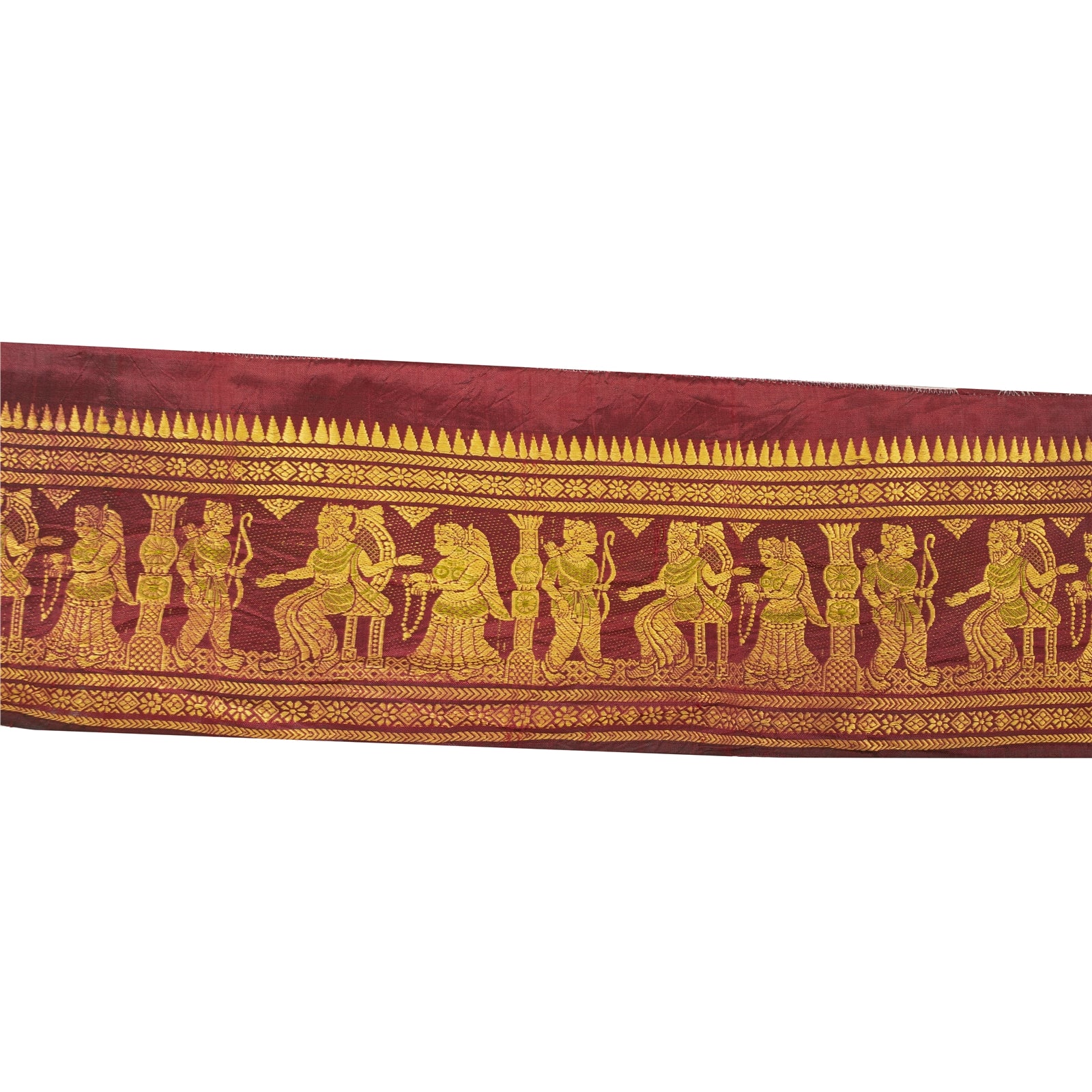 Sanskriti Vintage Sari Border Human Woven Baluchari 1YD Trim Dark Red Ribbon 5.1