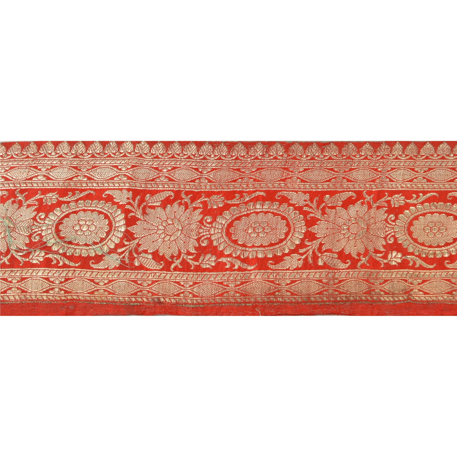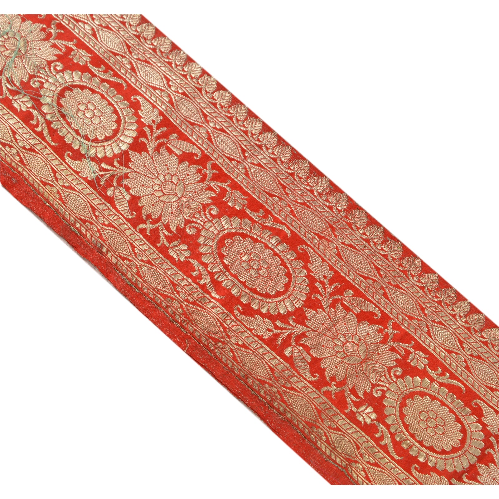 Sanskriti Vintage Sari Border Woven Brocade 1 YD Trim Craft Sewing Red Lace