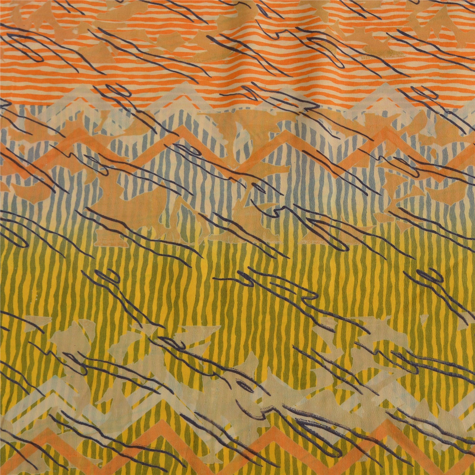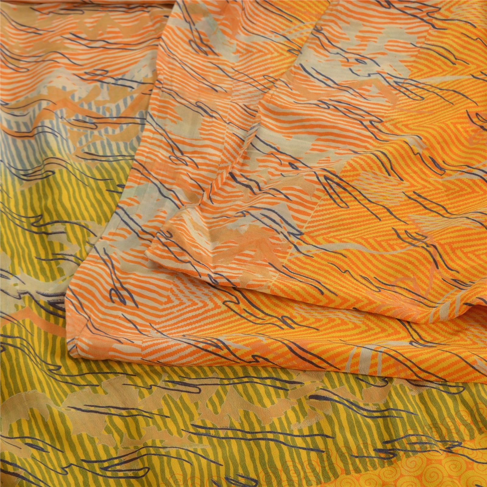 THE ITEM COLOR OR SHADE MAY BE DARKER OR LIGHTER THAN THE PICTURE.' • Beautiful yellow colored printed pure crepe silk saree . • Pallu & Border has printed abstract design . • Abstract design in center part of sari . This unique vintage saree can be used for various crafting ideas even if you don't want to use it as a sari. Design a dress, use it as a throw, as window dressing, beachwear, sarongs, table linen and much more. Let your creative juices flow and use this decorated Sustainable Fabric in multiple fashion. International buyers please note: Import duties, taxes, and charges are not included in the item price or postage cost. These charges are the buyer's responsibility. Please check with your country's customs office to determine what these additional costs will be prior to bidding or buying.Buyer will pay custom duty/tax. It is calculated and charged differently by every country. As a seller I do not have any control over it.VAT or sales tax is calculated by the platform at the time of checkout. Customs charge is payable at the time of delivery. PRC-2575