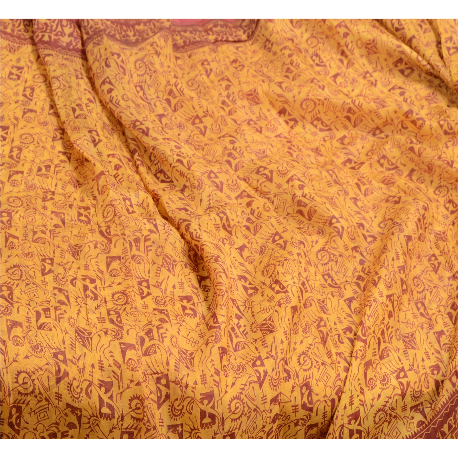 Sanskriti Vintage Yellow Sarees Pure Silk Wali Art Printed Sari 5yd Craft Sustainable Fabric