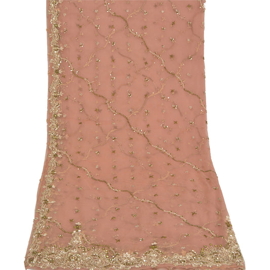 Sanskriti Vintage Dupatta Long Stole Pure Georgette Pink Hand Beaded Scarves