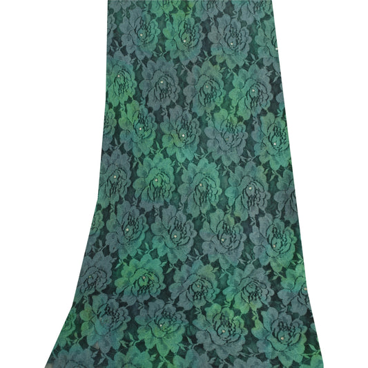 Sanskriti Vintage Long Dupatta/Stole Pure Silk Green Hand Beaded Scarf Veil