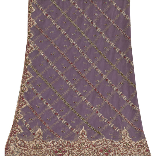 Sanskriti Vintage Lilac Dupatta Long Stole Net Hand Beaded Premium Wrap Scarves