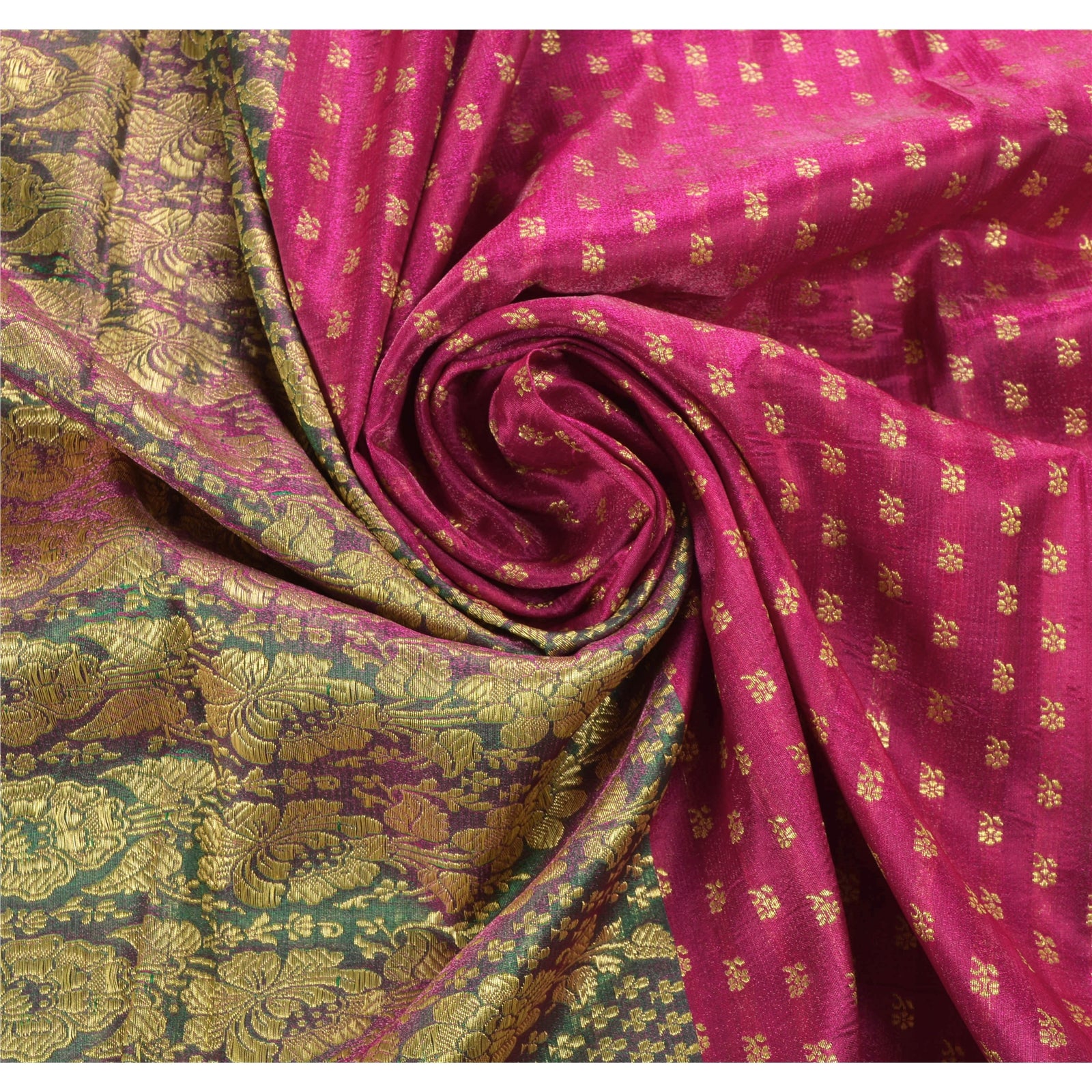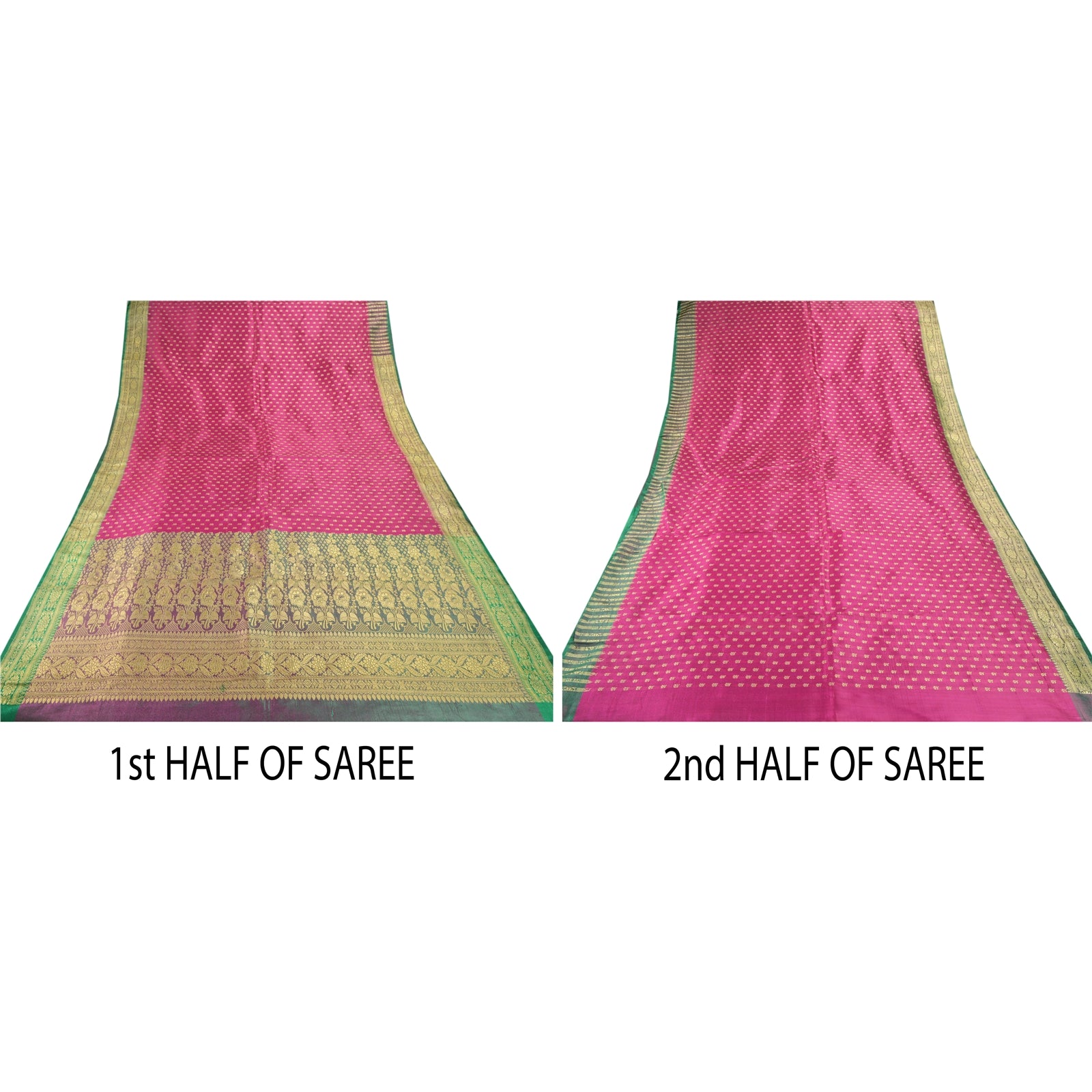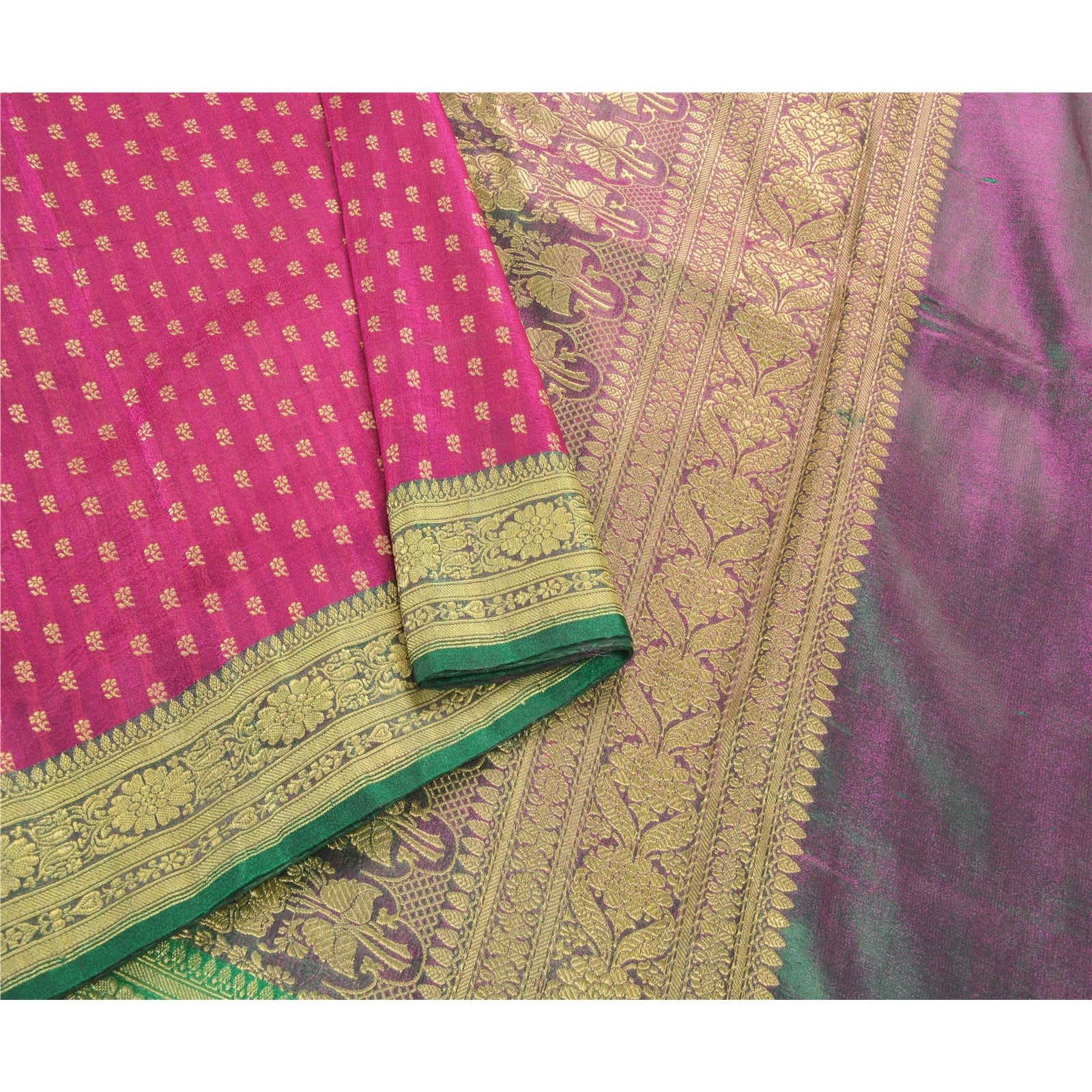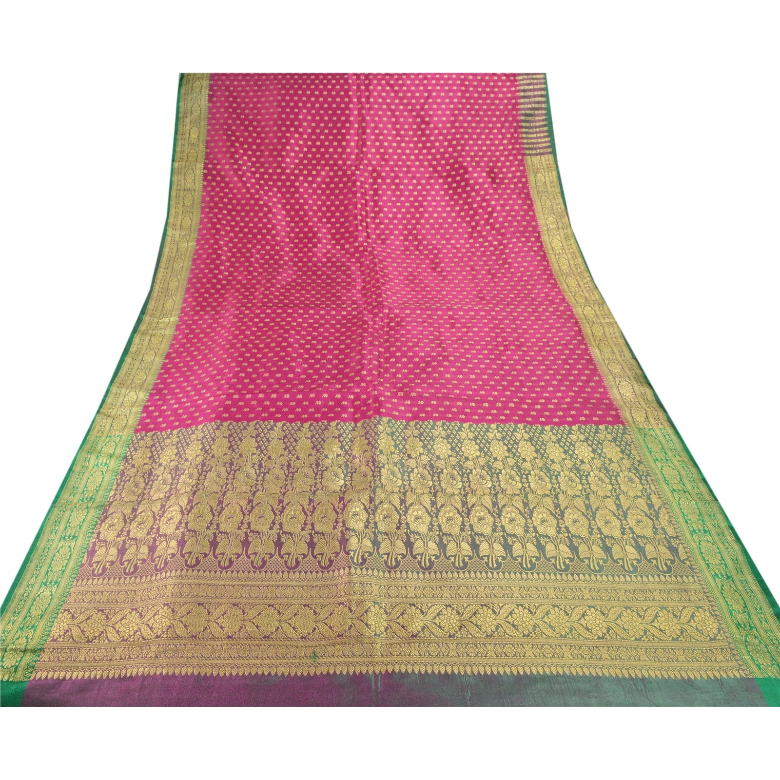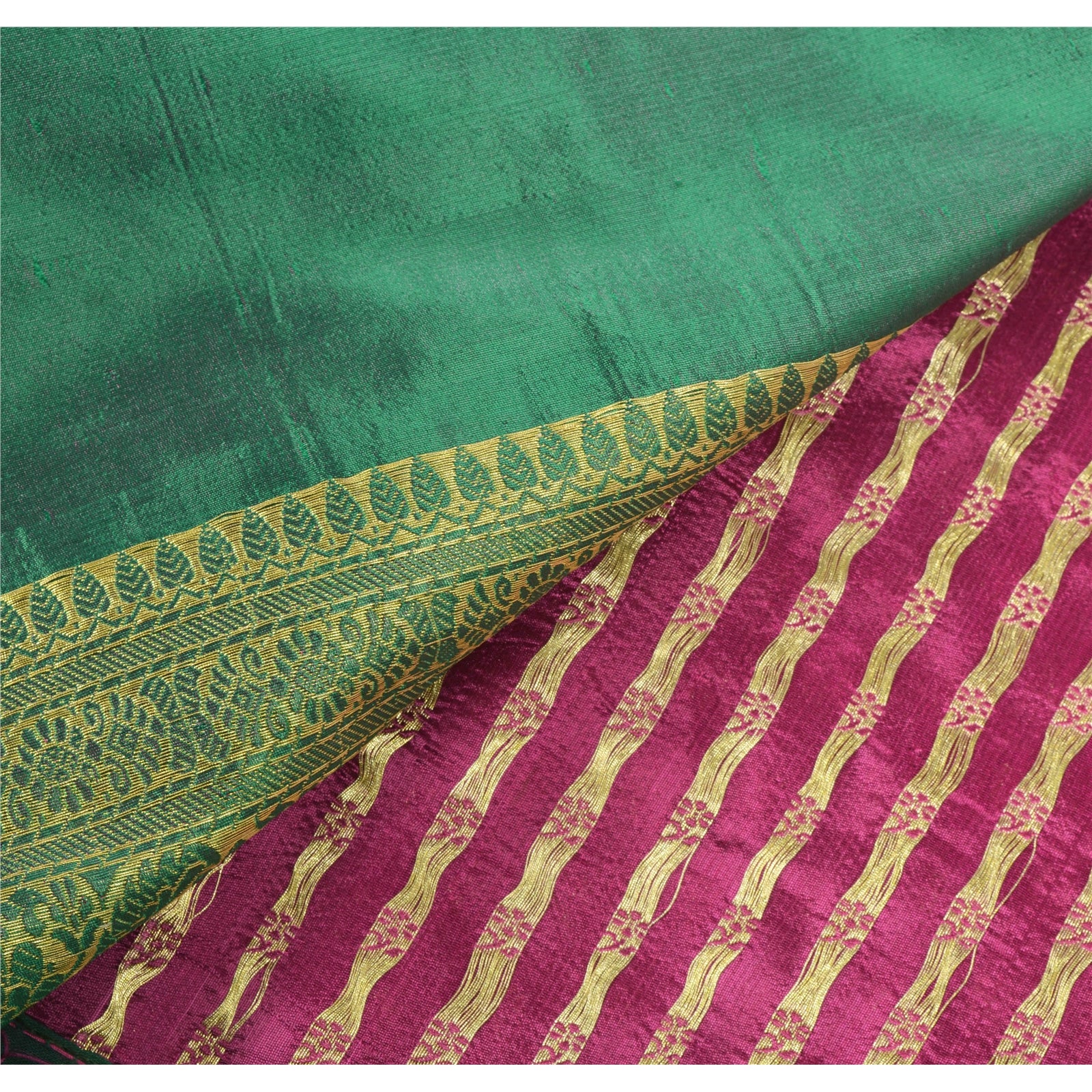 Sanskriti Vintage Green Heavy Saree Art Silk Banarasi Brocade Sustainable Fabric Zari Sari