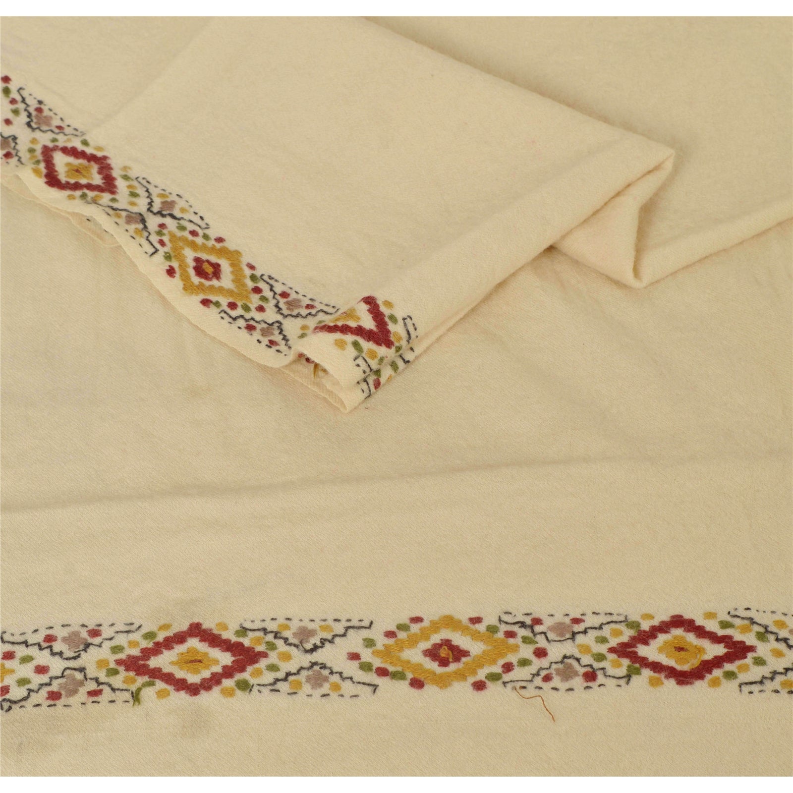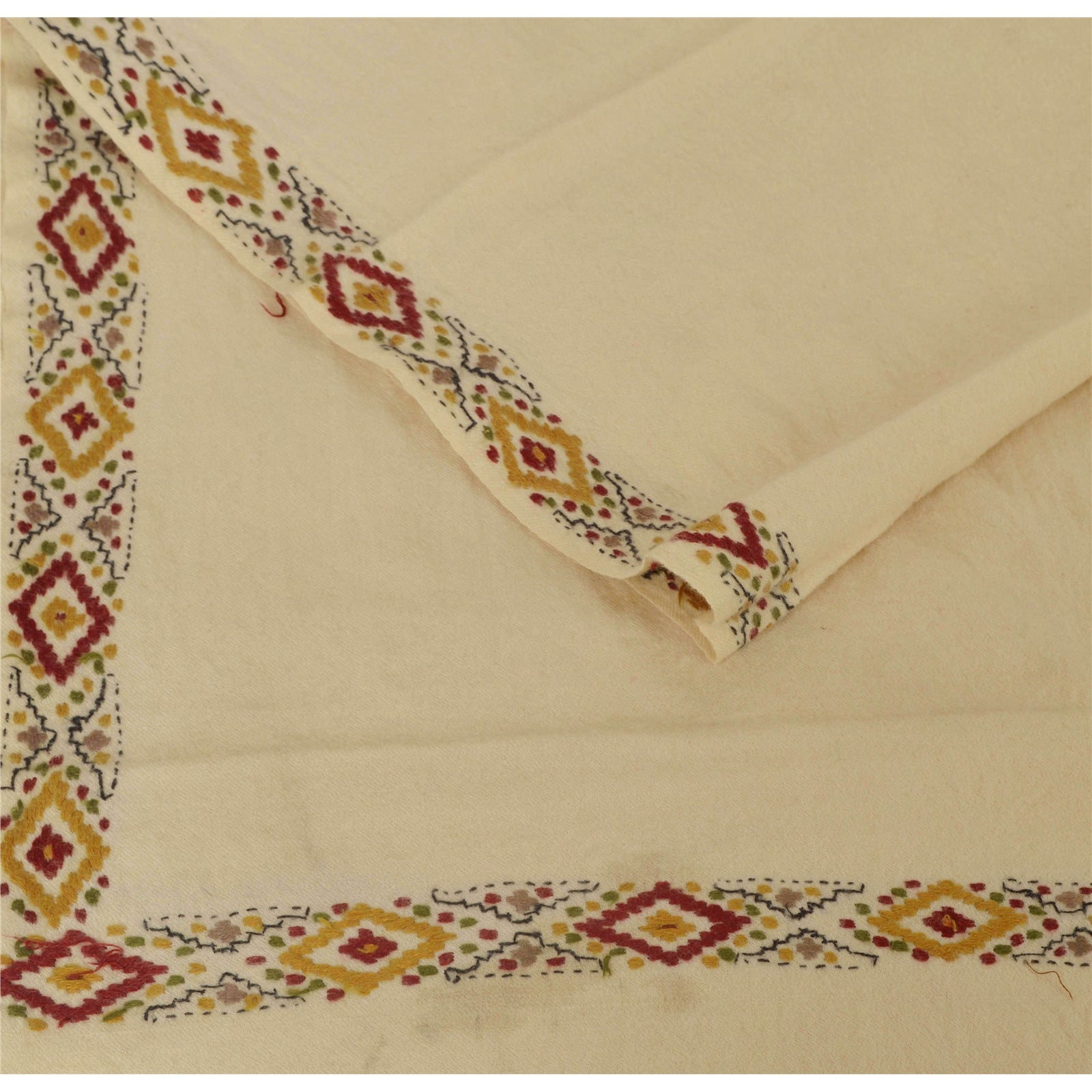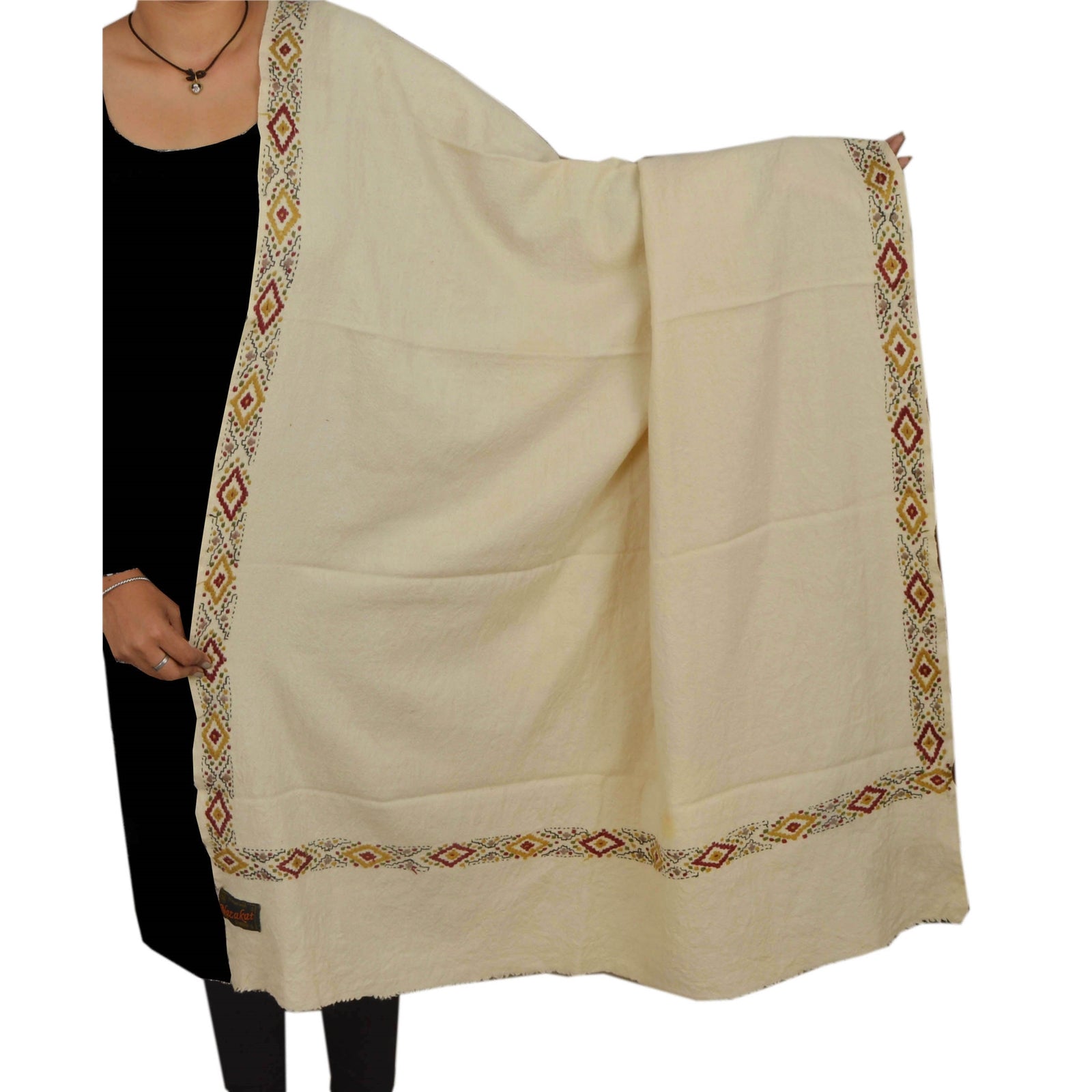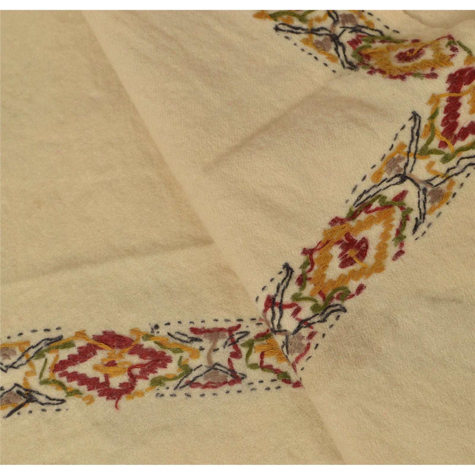 Sanskriti Vintage Hand Embroidered Woolen Shawl Cream Stole Floral