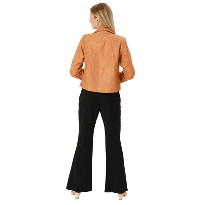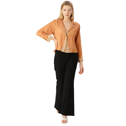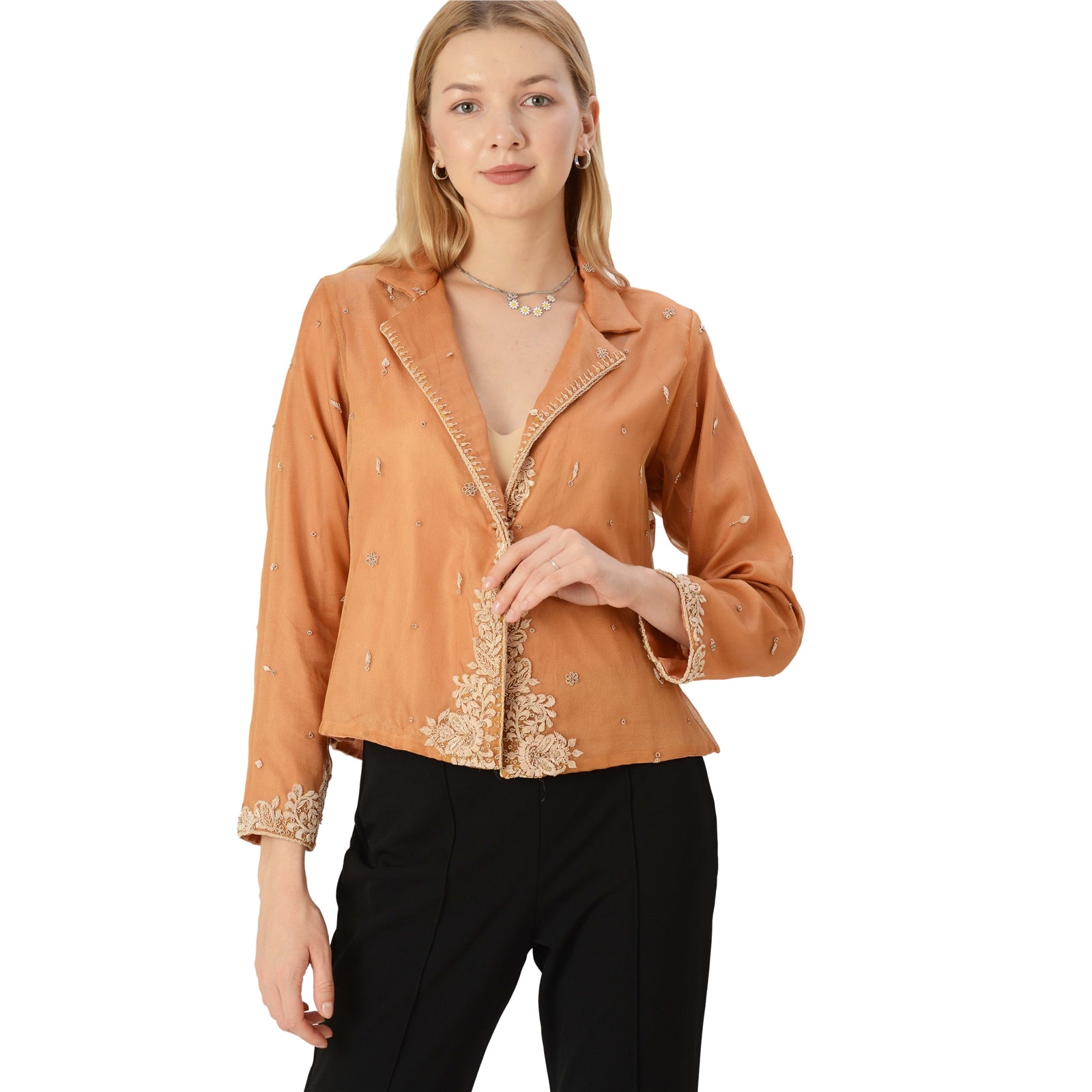 Sanskriti Vintage Limited Edition Short Orange Blazer Upcycled Jacket Free Size