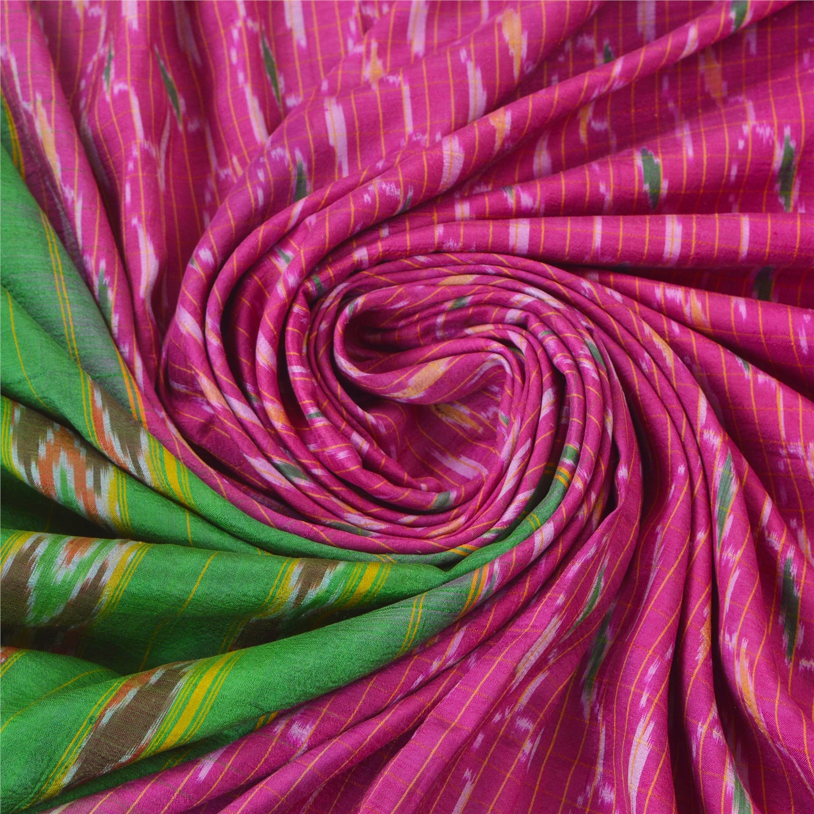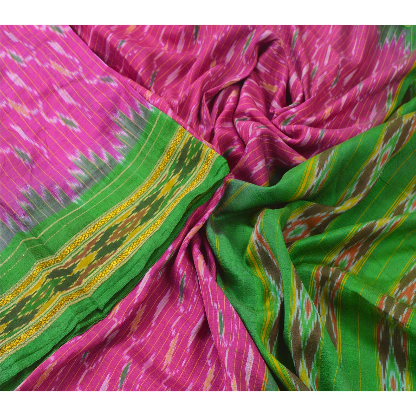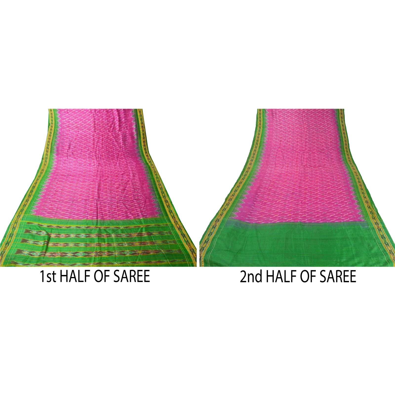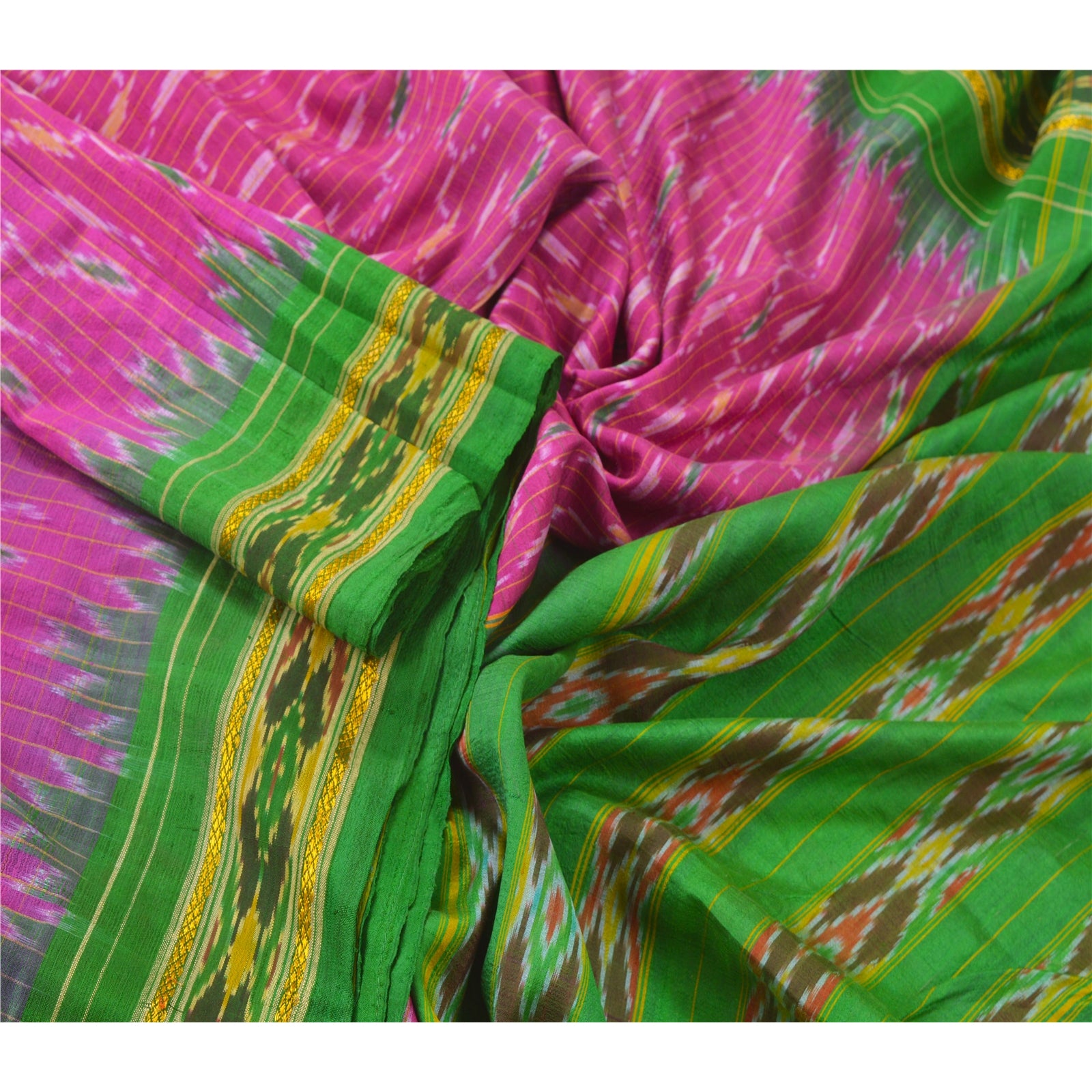 Sanskriti Vintage Pink Saree Pure Silk Ikat Woven Work Pochampally Sari Craft Sustainable Fabric