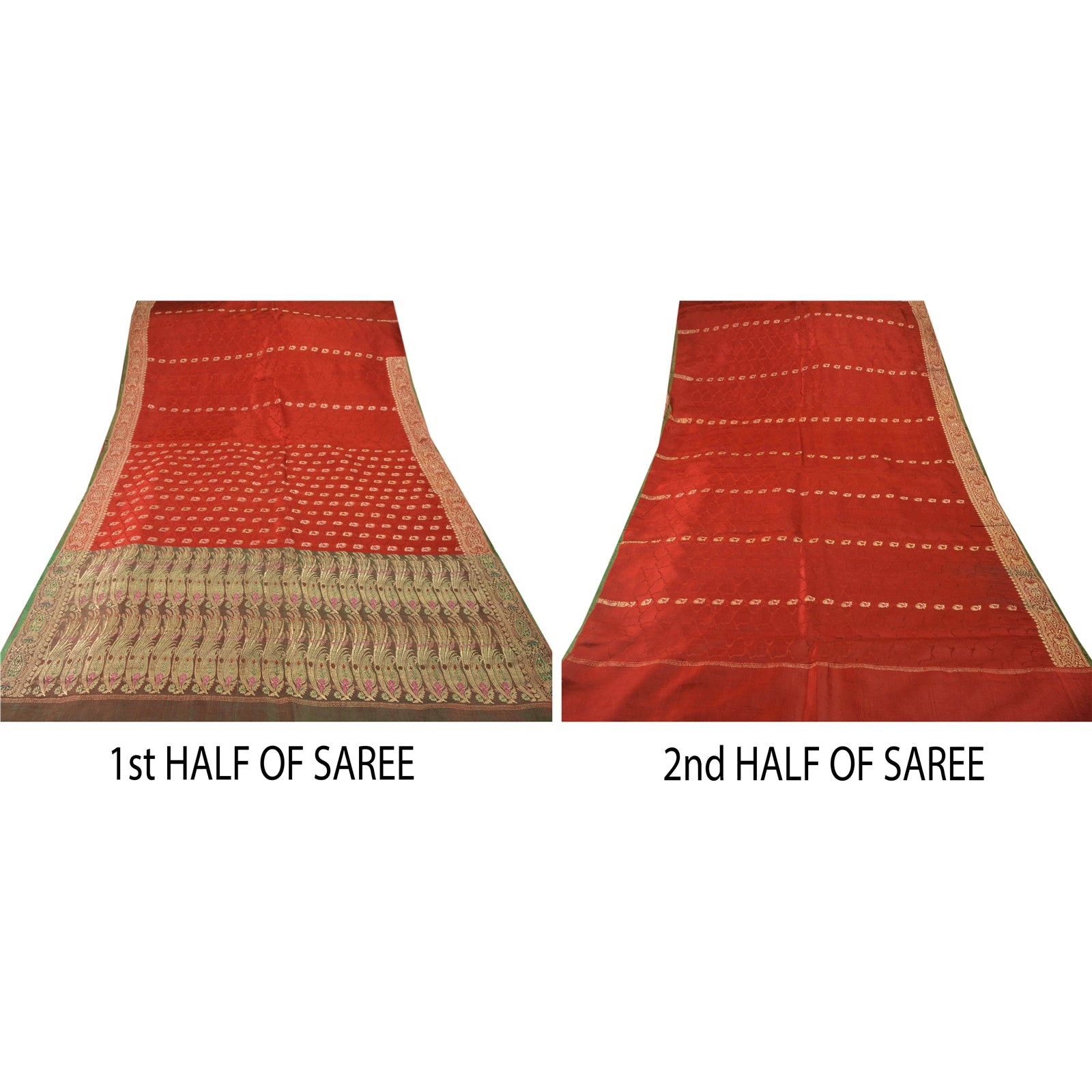 Sanskriti Vintage Red Heavy Saree Art Silk Banarasi Brocade Woven Sustainable Fabric Sari