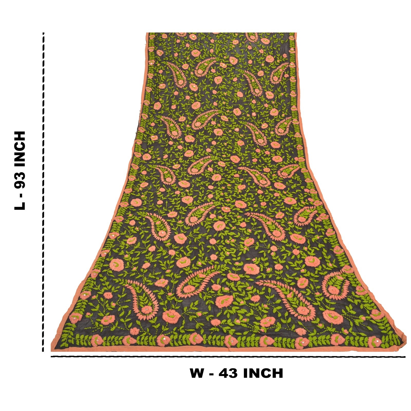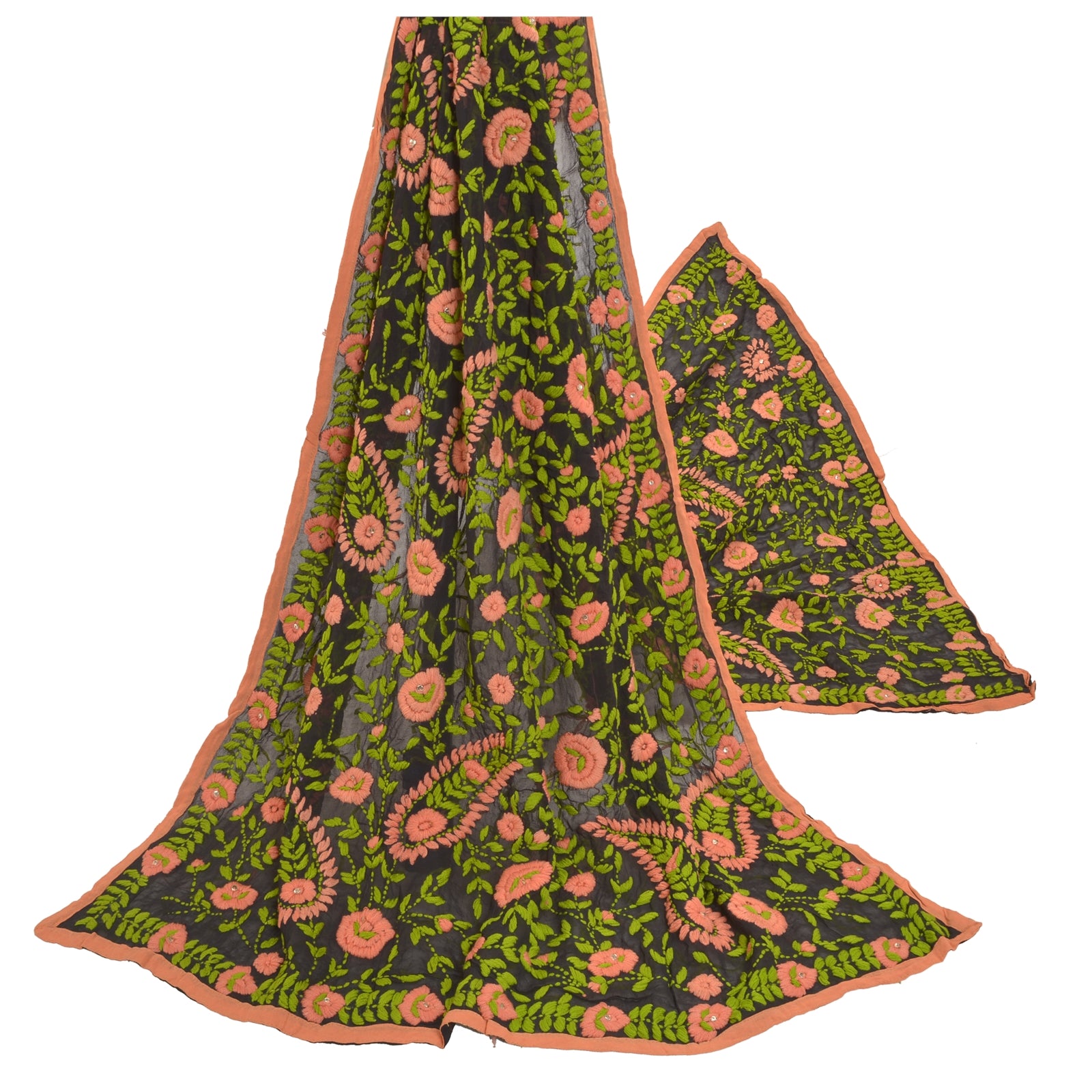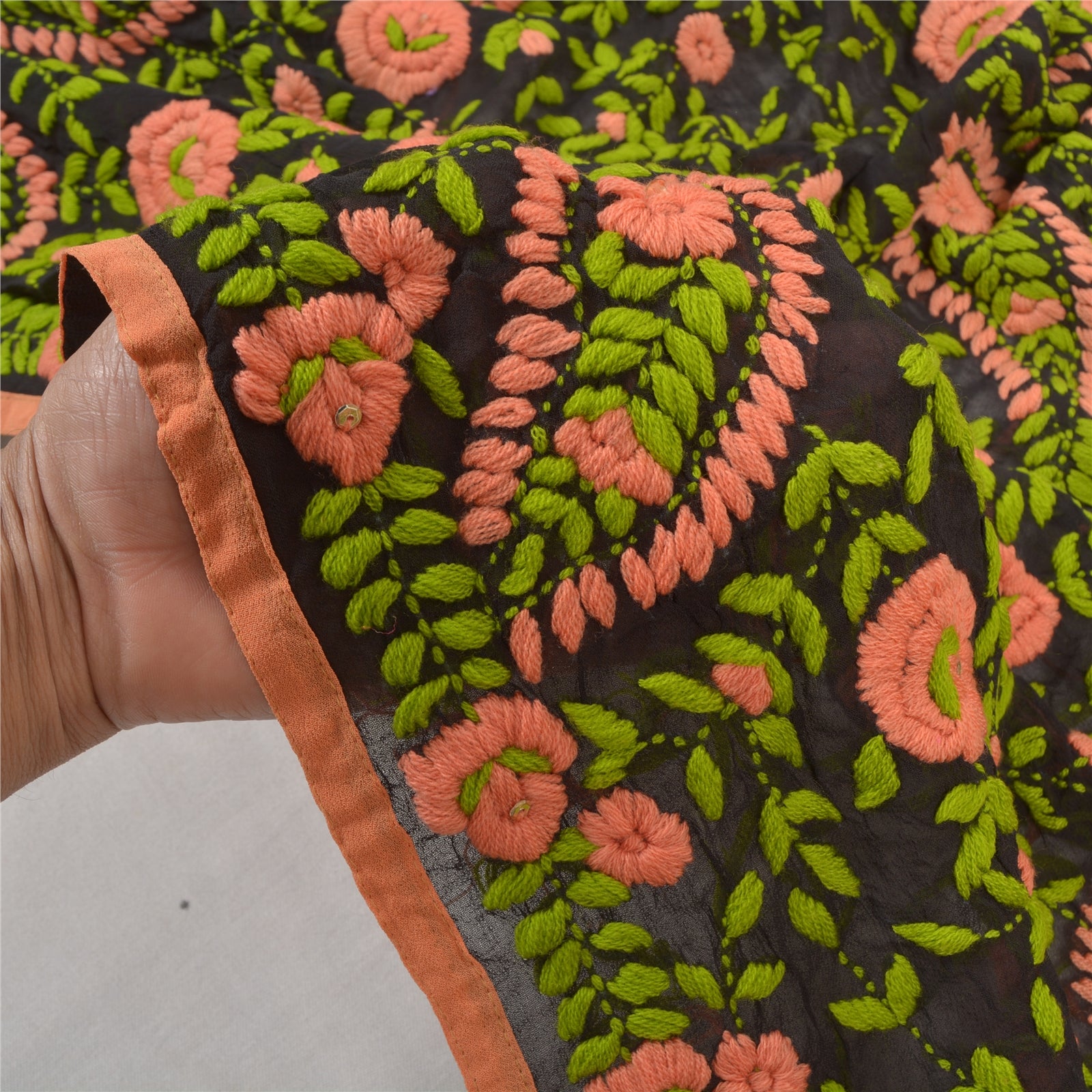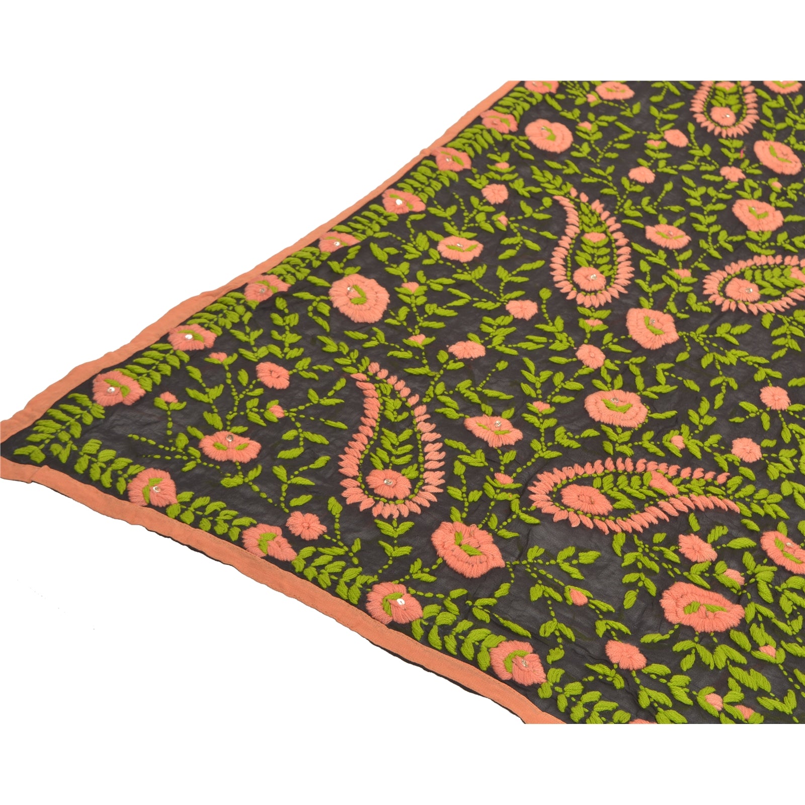 Sanskriti Vintage Heavy Dupatta Georgette Hand Embroidered Black Phulkari OOAK Stole