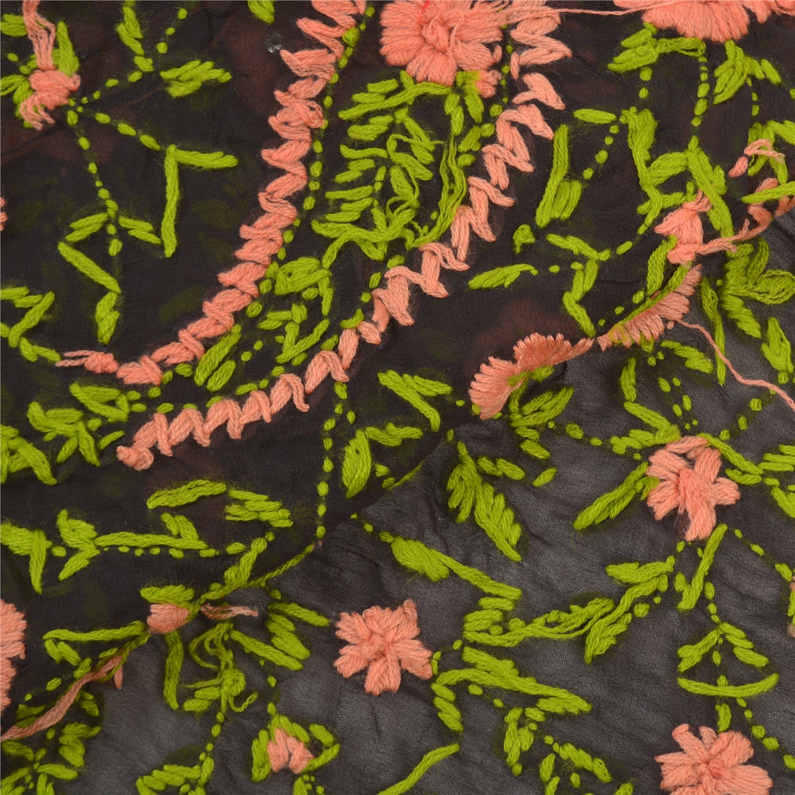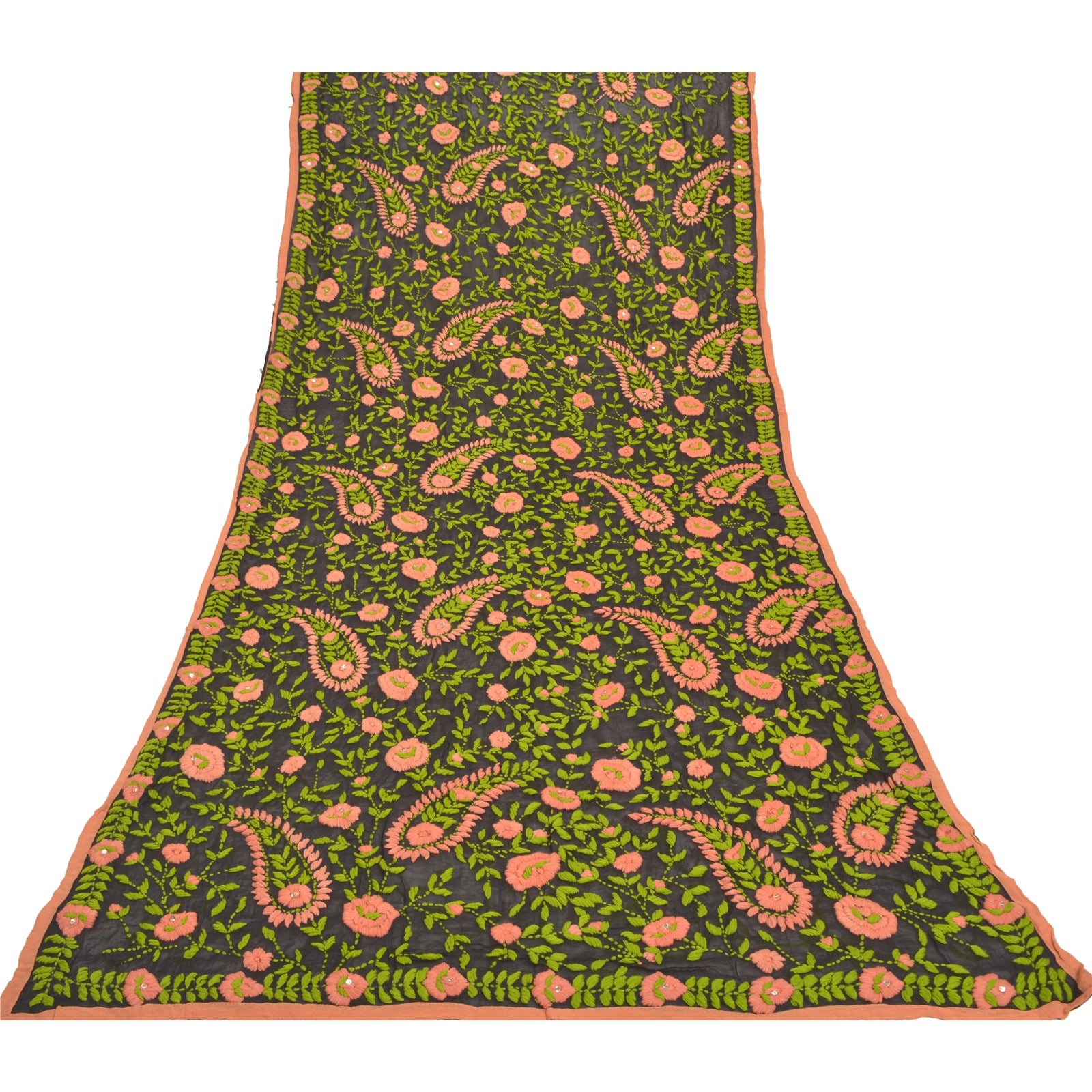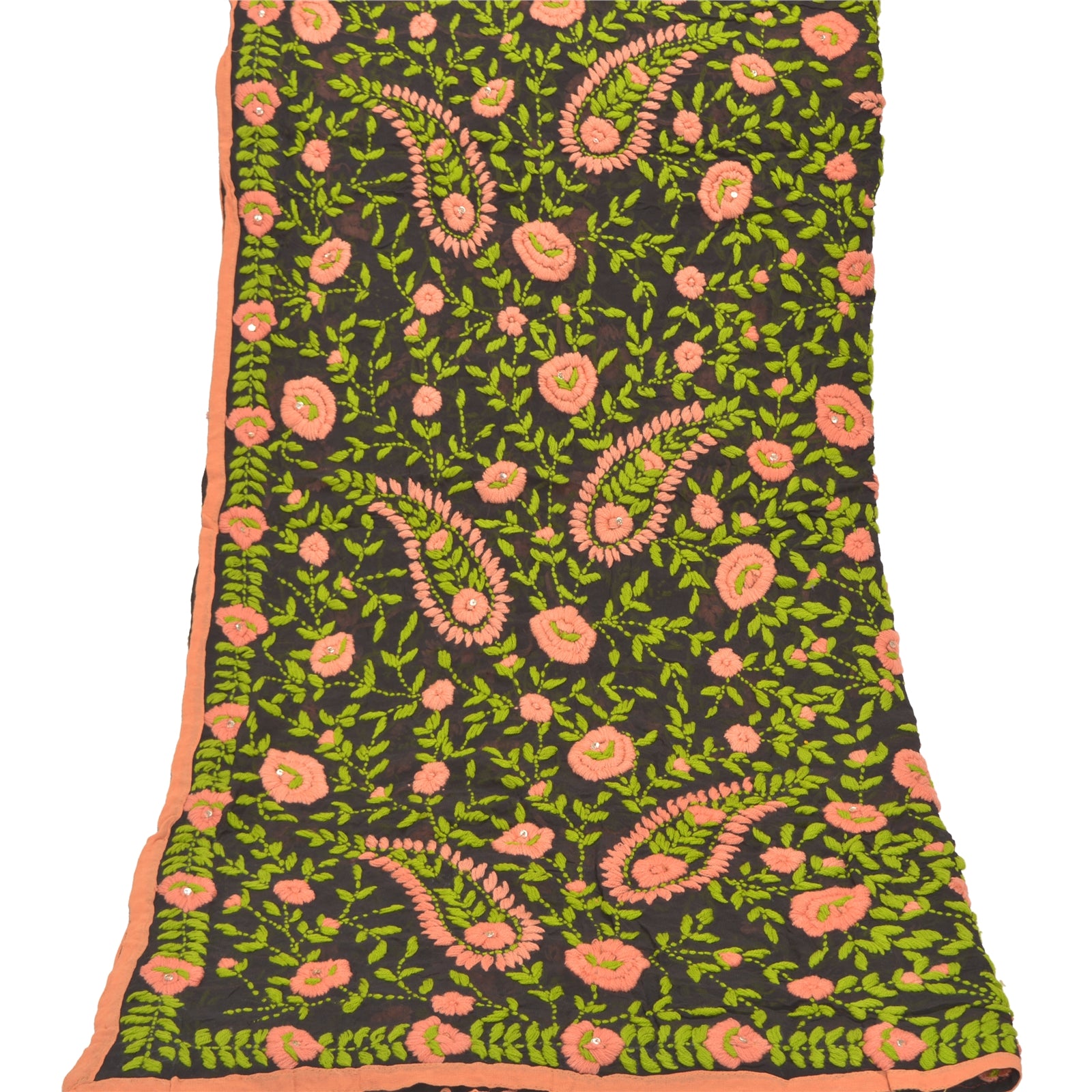Sanskriti Vintage Heavy Dupatta Georgette Hand Embroidered Black Phulkari OOAK Stole