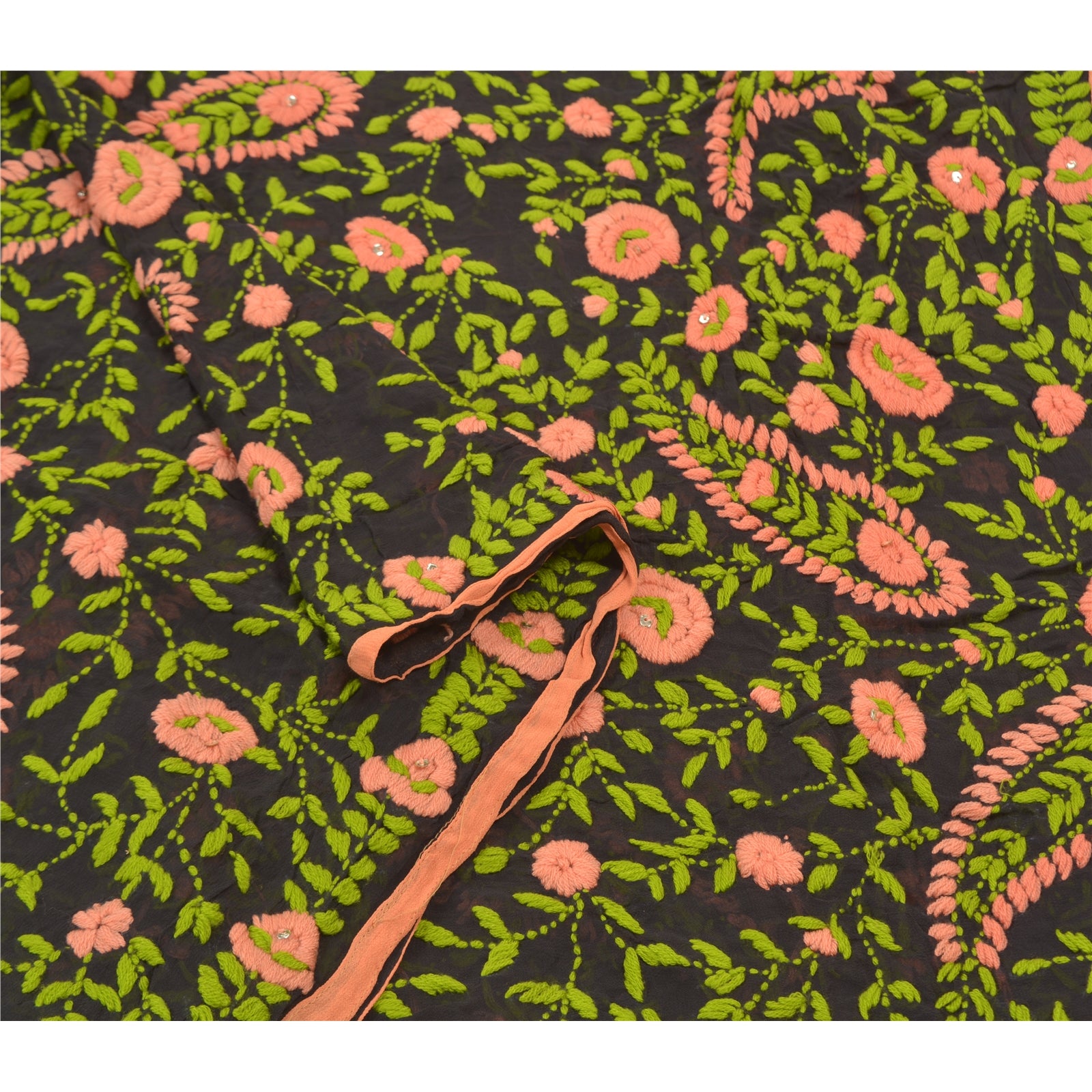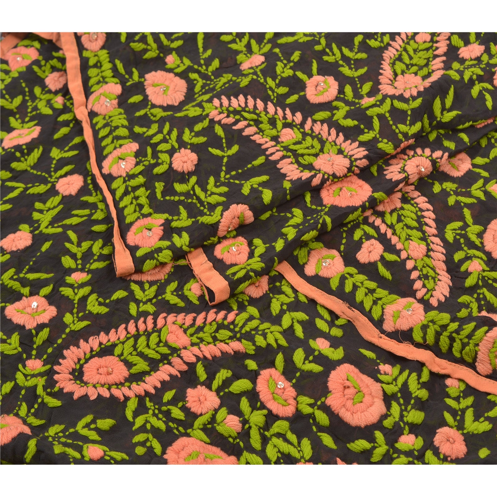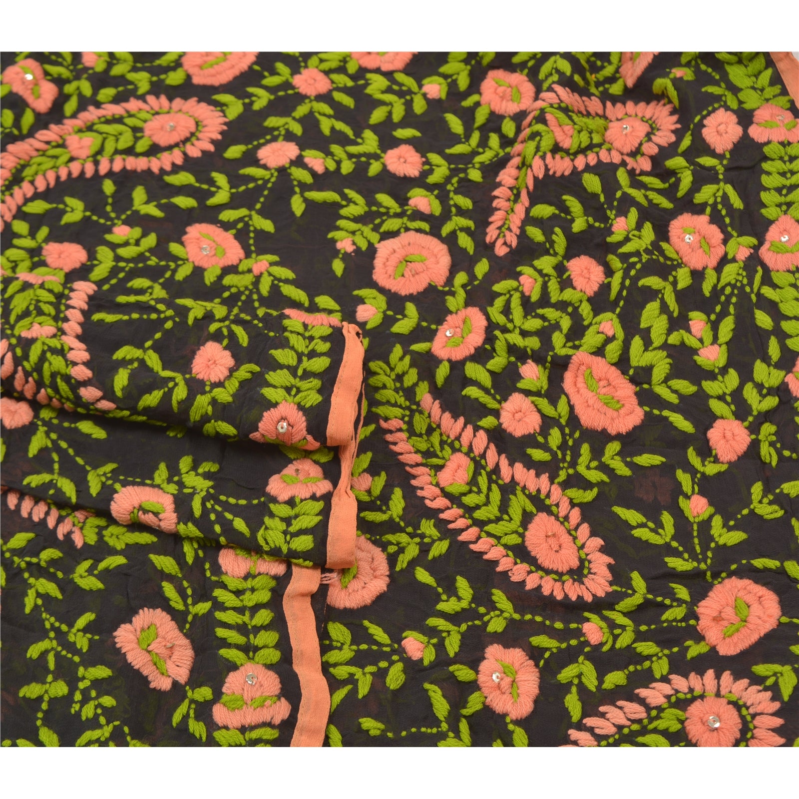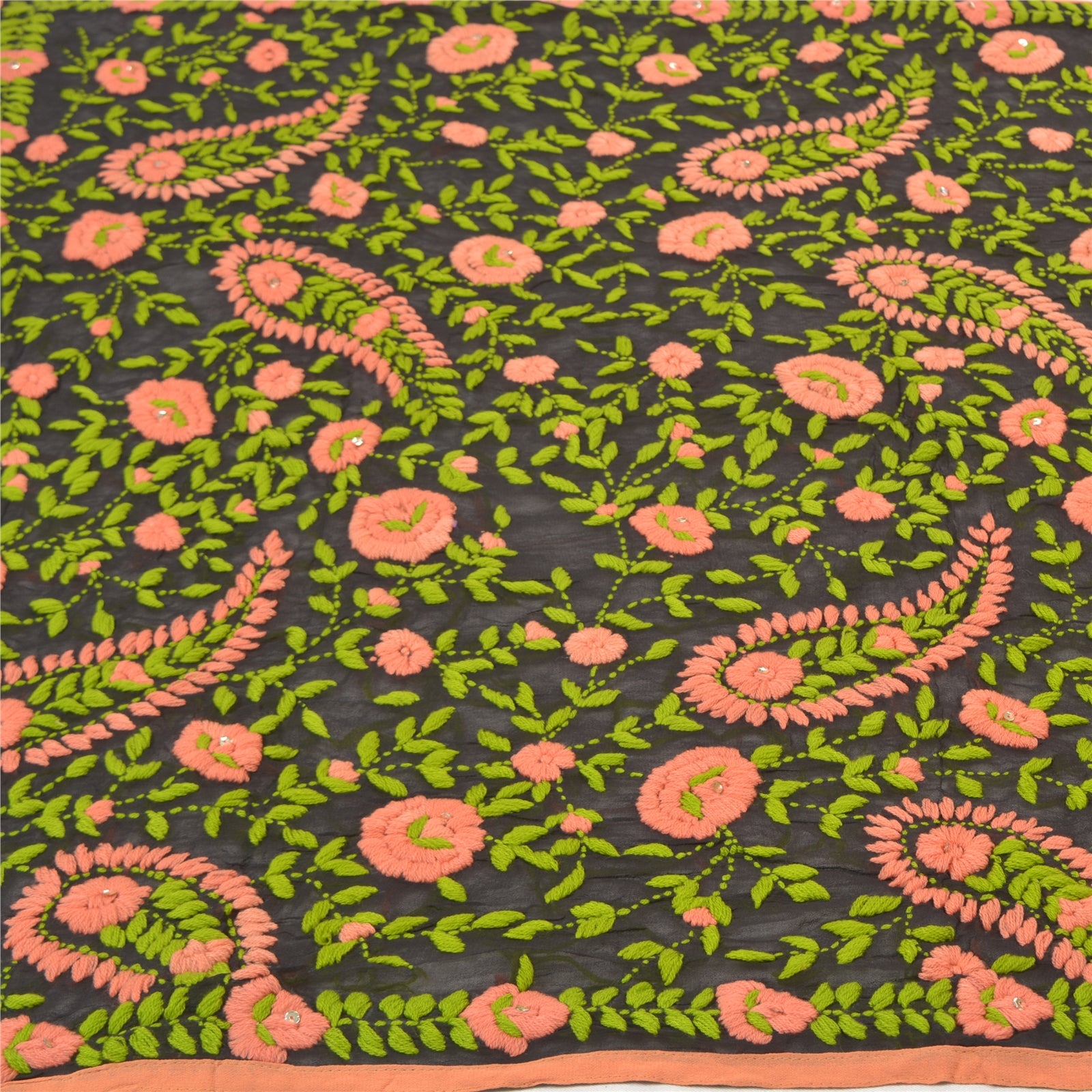 Sanskriti Vintage Heavy Dupatta Georgette Hand Embroidered Black Phulkari OOAK Stole