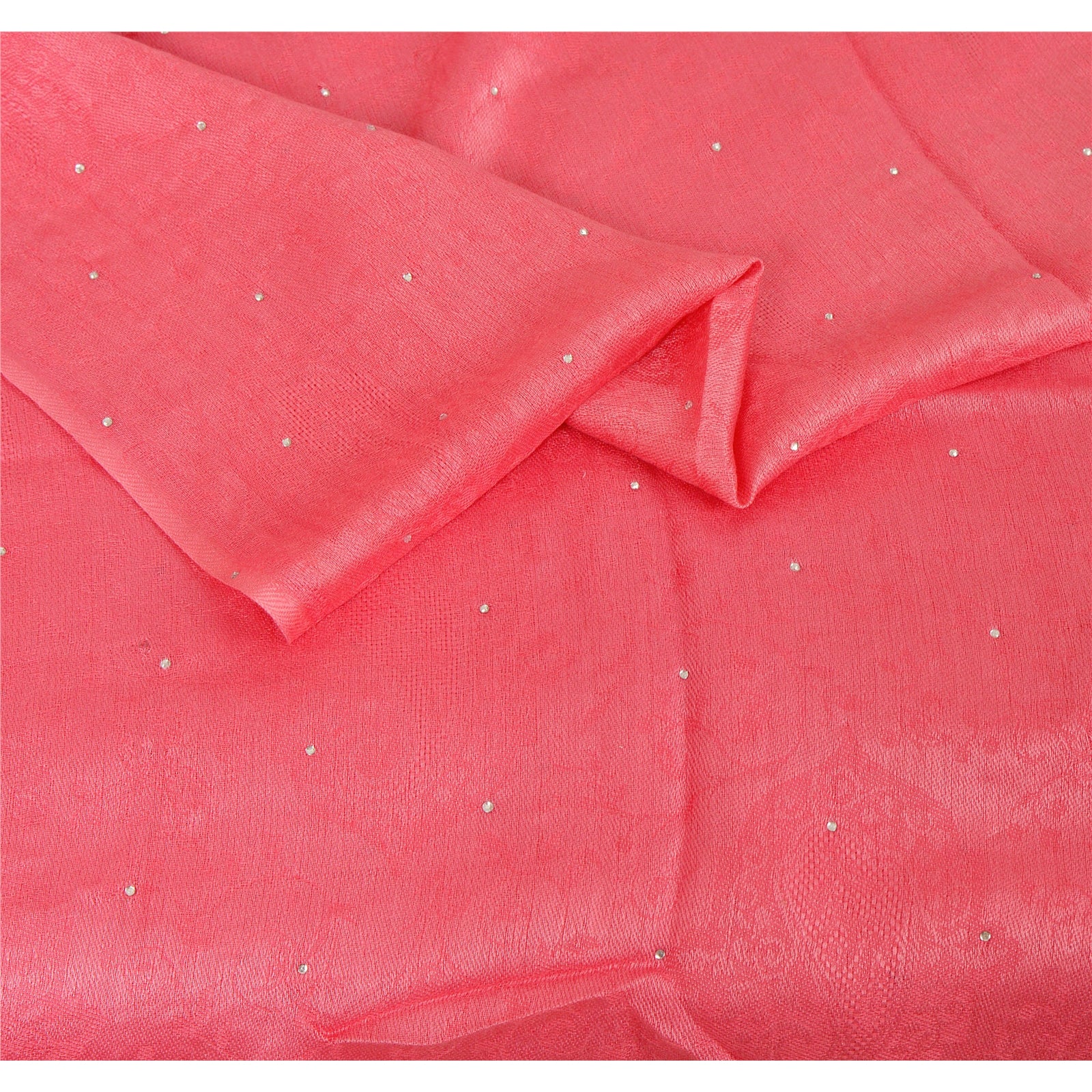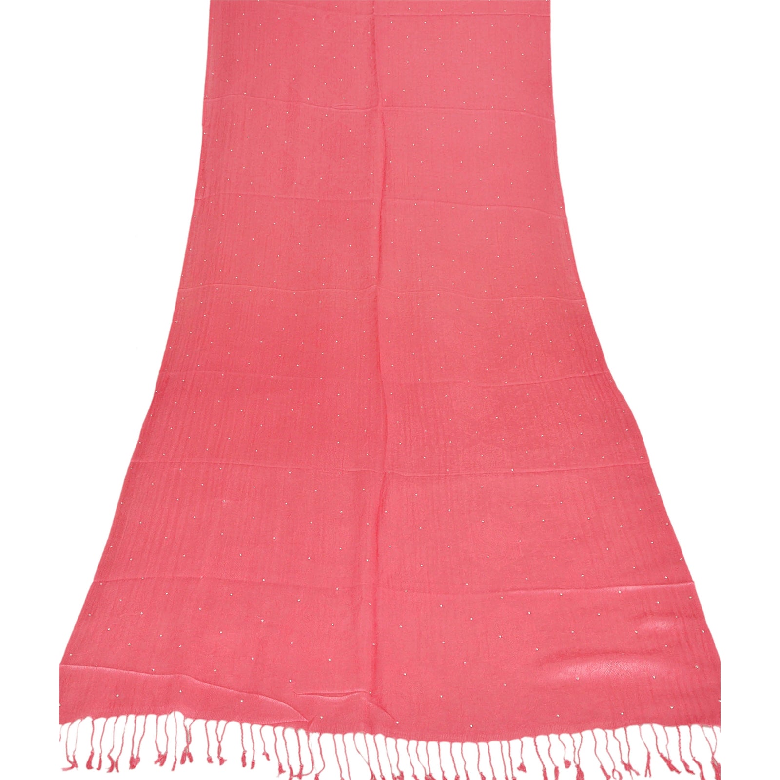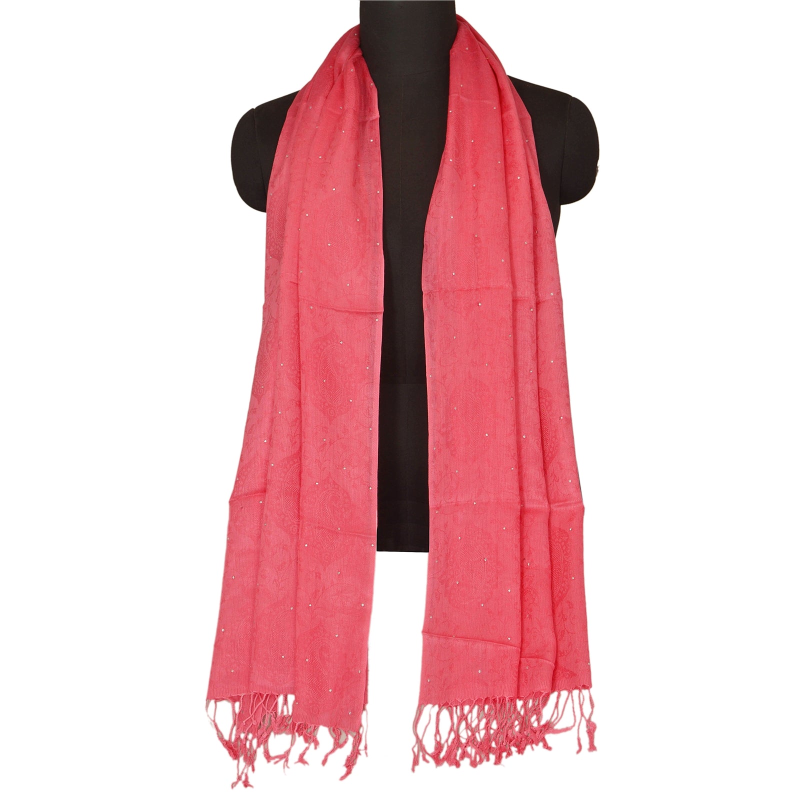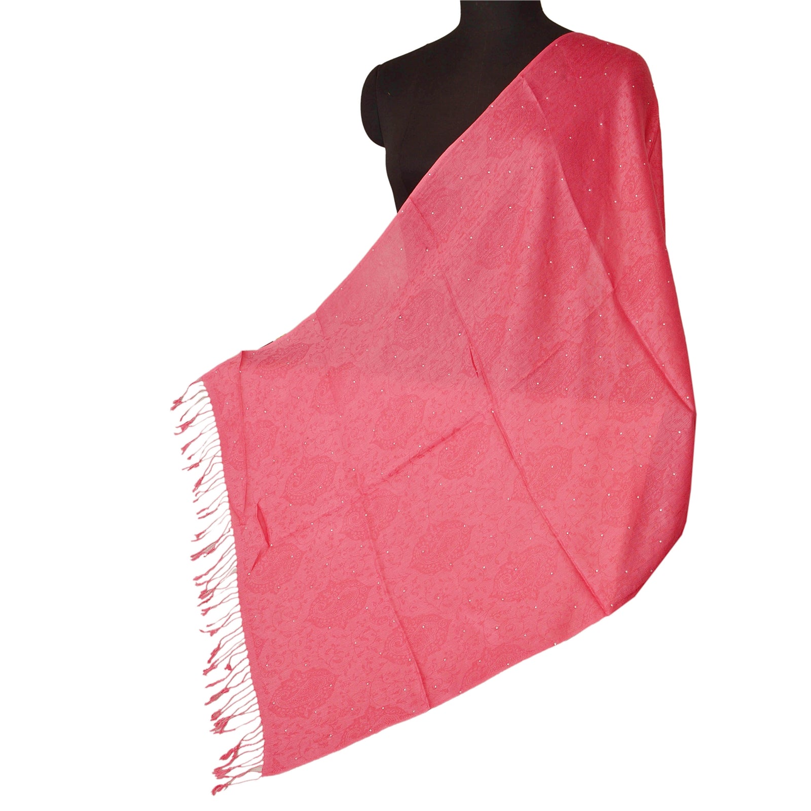 Sanskriti New Pink Shawl Viscose Sauroski Woven Work Long Stole Soft Scarf