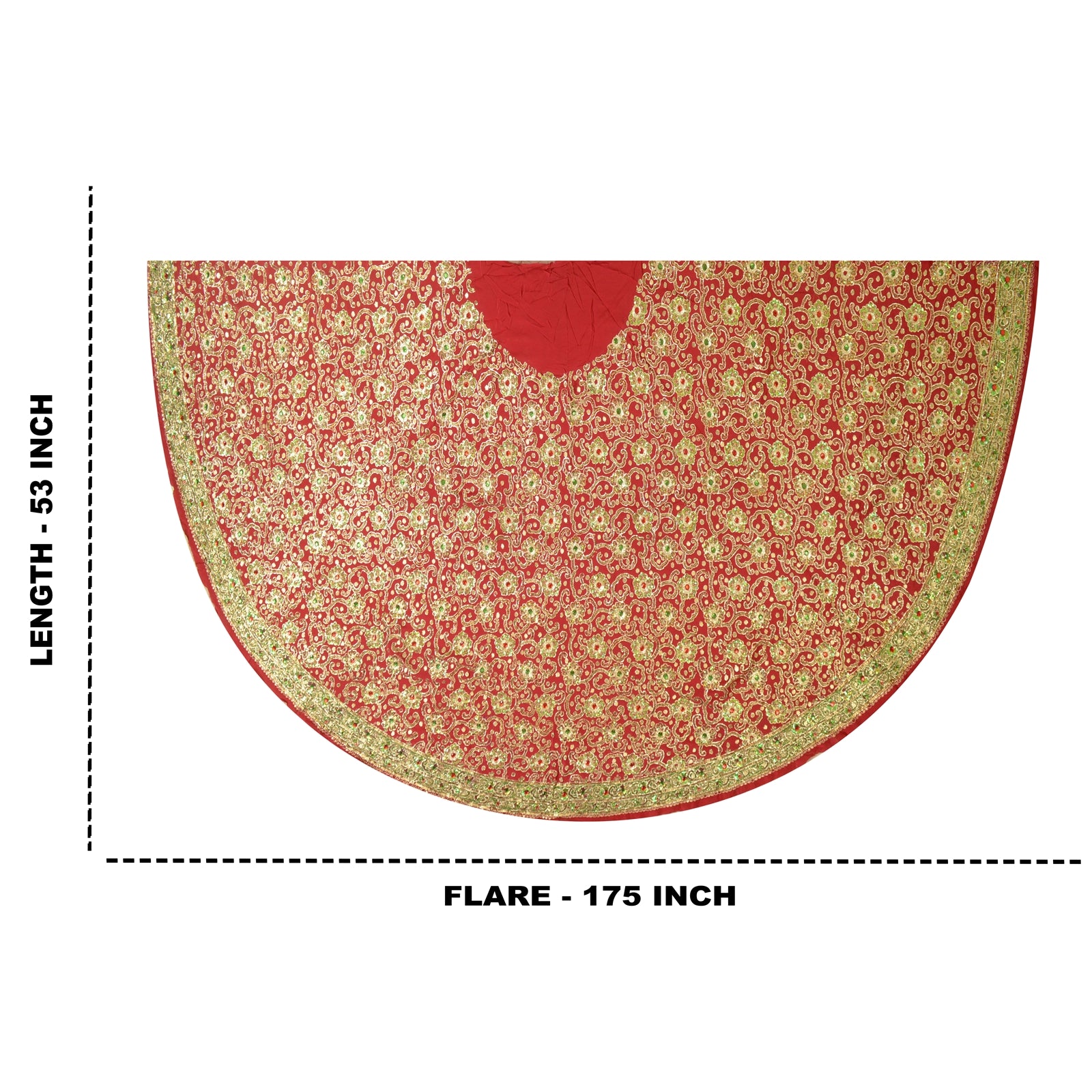 'THE ITEM COLOR OR SHADE MAY BE DARKER OR LIGHTER THAN THE PICTURE.' This red new long skirt made with 100% Pure Silk. The skirt has hand beaded floral design embellished with pure metallic golden dabka, red zardozi, green/golden sequins work, red/green rhinestones work all over. Flaunt this heavy skirt with ethnic tops, blouses or kurtis at parties, weddings and other occasions. The quality of zari (dabka) work is amazing, its a pure metallic zari. Some zari work gives an antique look. 'International buyers please note: Import duties, taxes, and charges are not included in the item price or postage cost. These charges are the buyer's responsibility. Please check with your country's customs office to determine what these additional costs will be prior to bidding or buying. Buyer will pay custom duty/tax. It is calculated and charged differently by every country. As a seller I do not have any control over it.VAT or sales tax is calculated by the platform at the time of checkout. Customs charge is payable at the time of delivery.' SK-1796