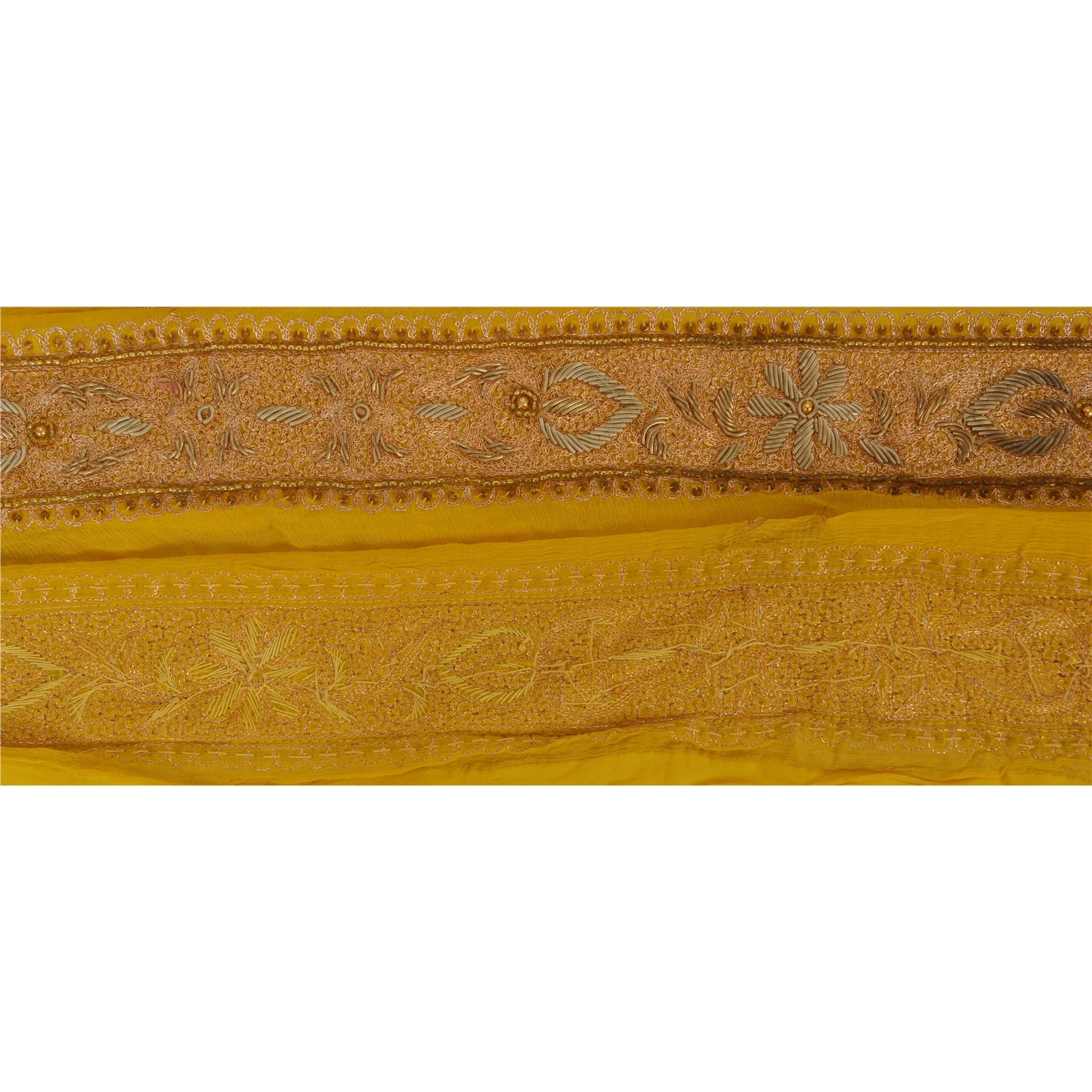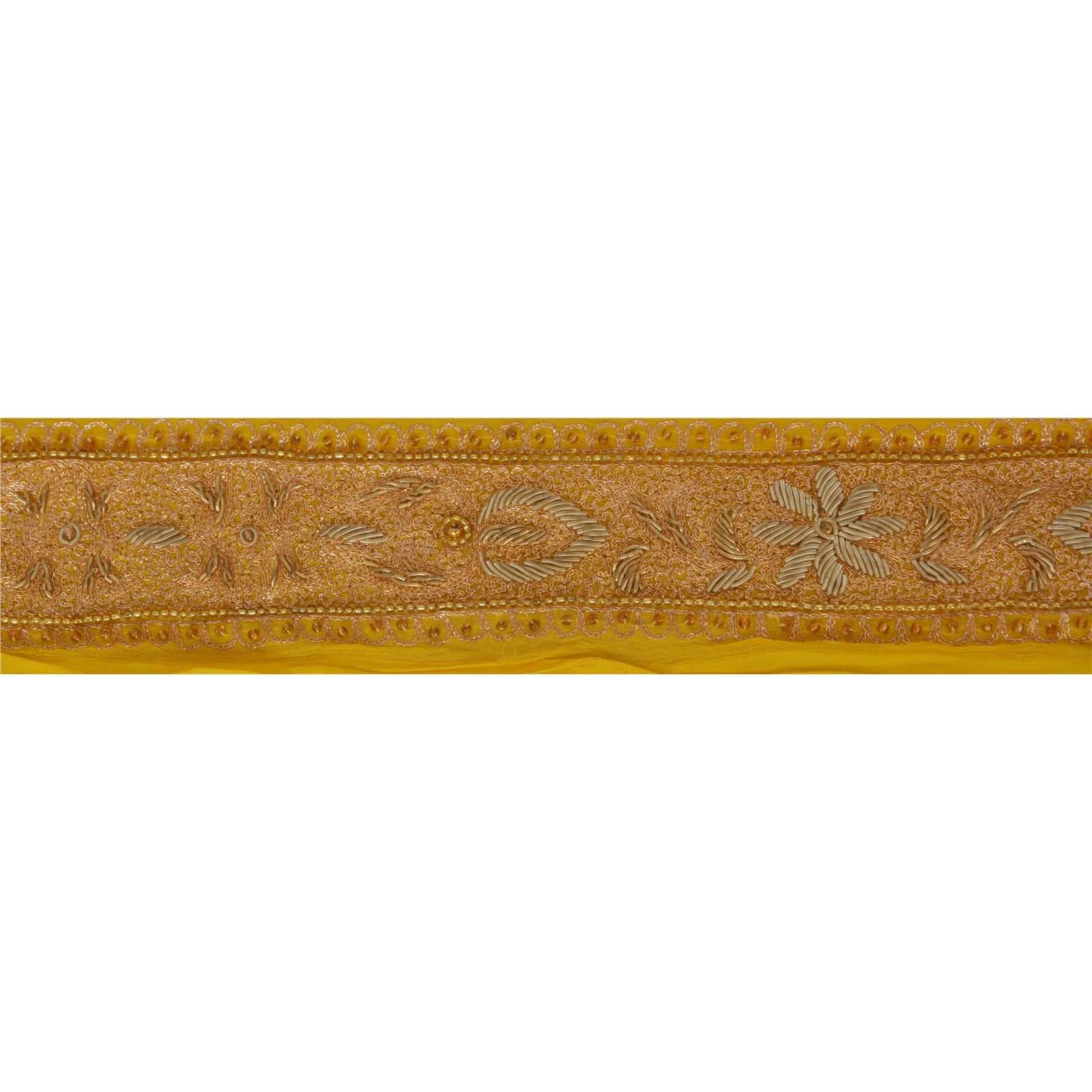 Sanskriti Vintage 1 YD Sari Border Hand Beaded Craft Sewing Yellow Zardozi Lace