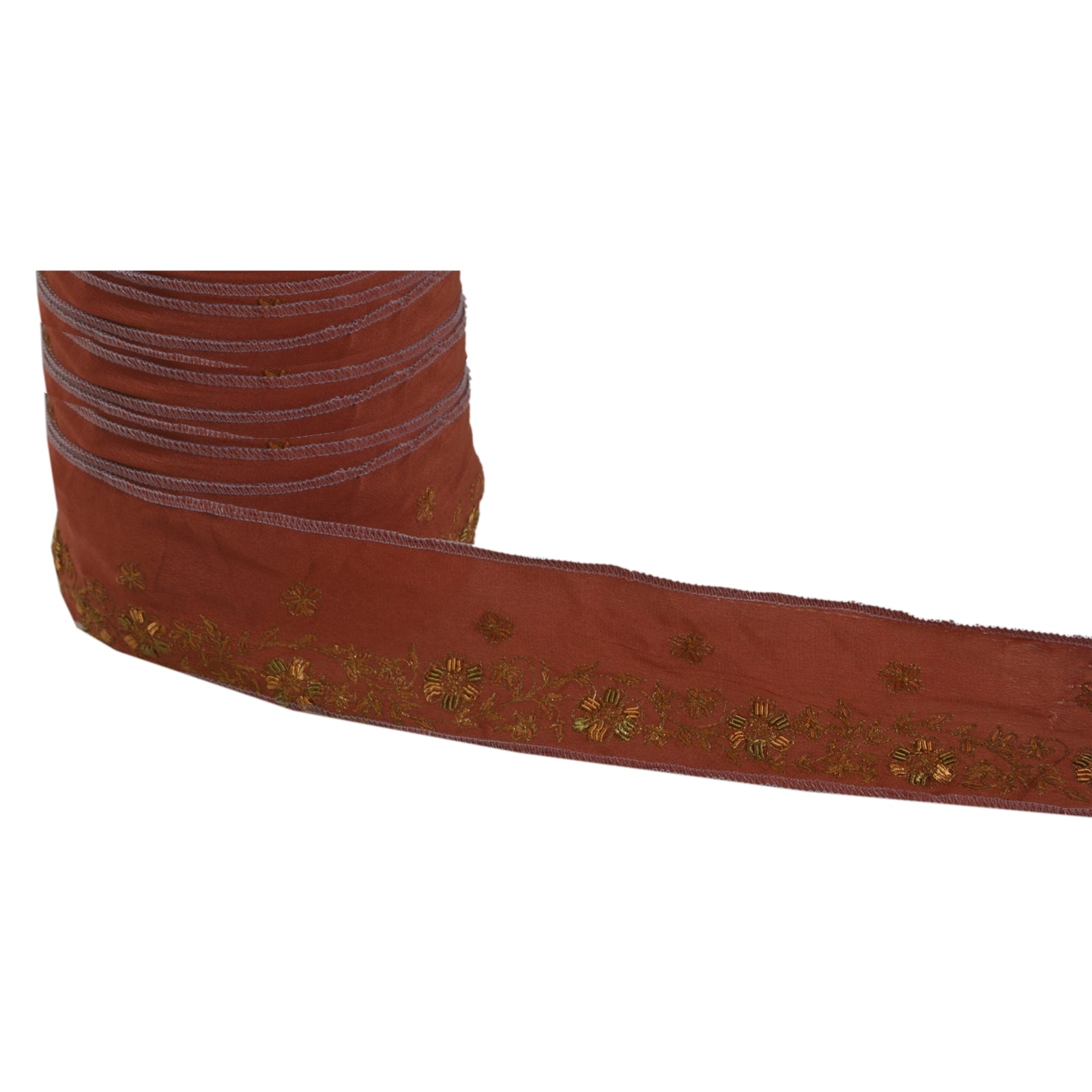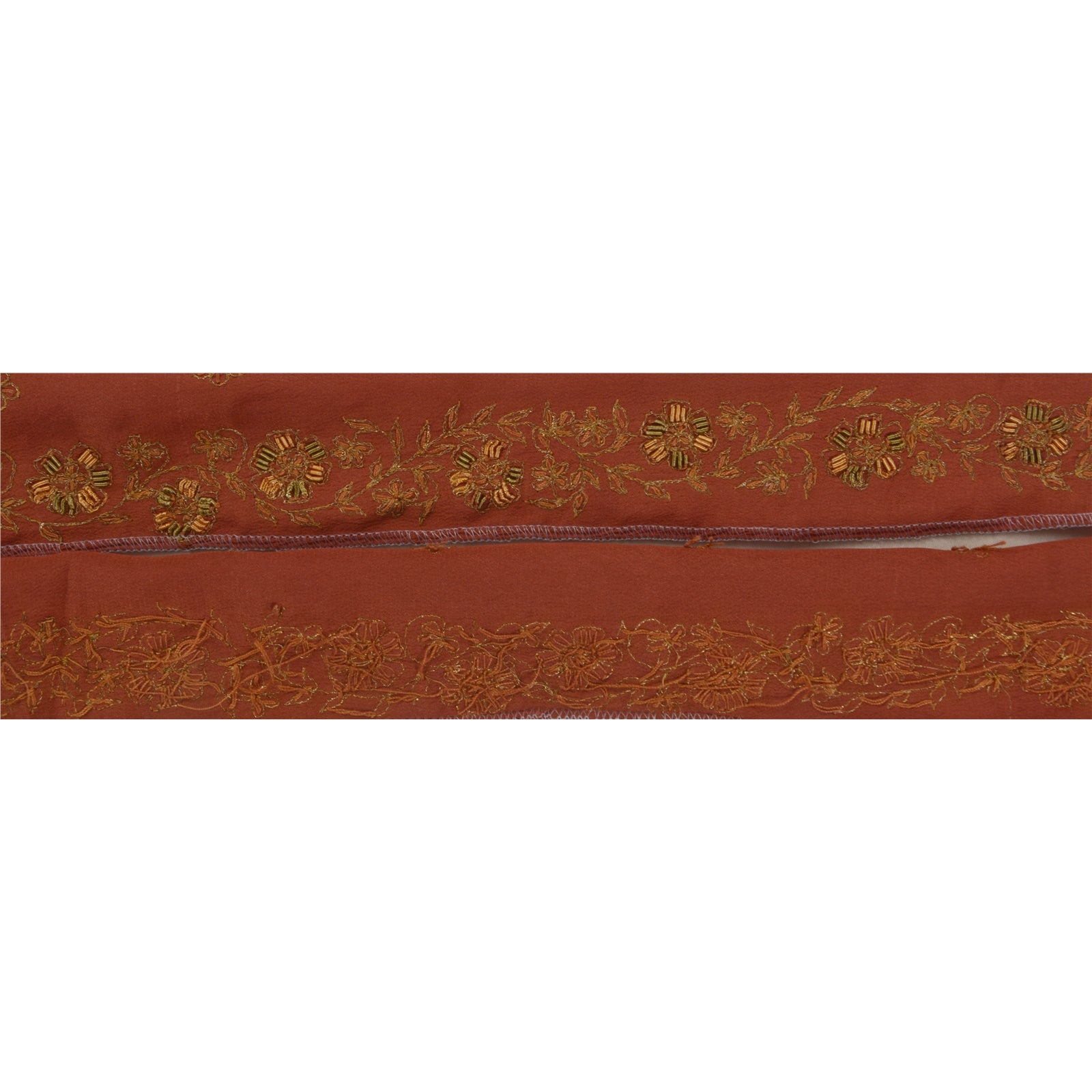 Sanskriti Vintage 1 YD Sari Border Hand Embroidery Zardozi Brown Craft Trim Lace
