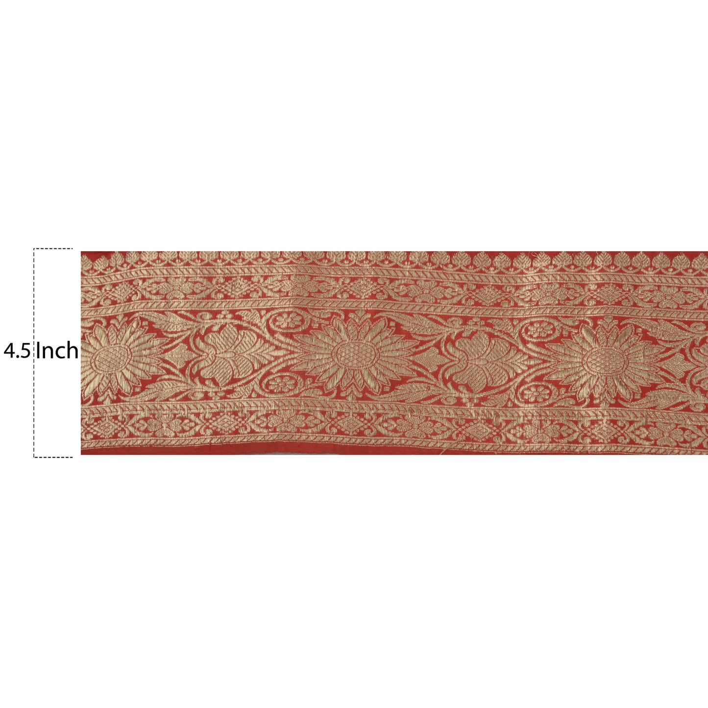 Sanskriti Vintage 1 Yd Trim Sari Border Antique Woven Brocade Red Sewing Lace