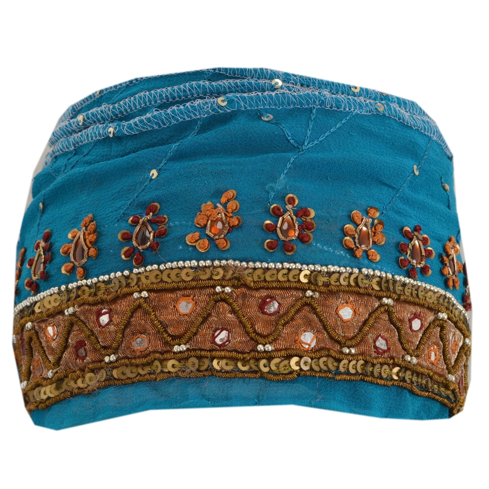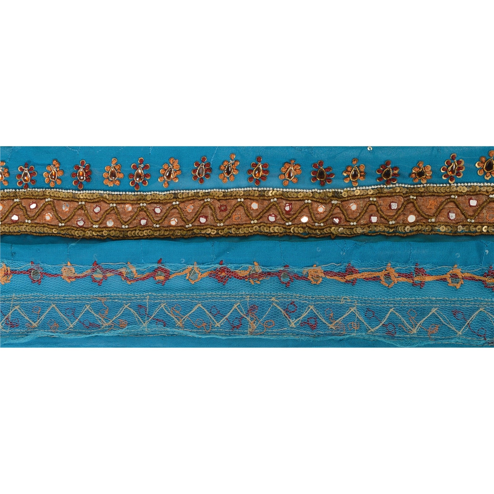 Sanskriti Vintage 1YD Sari Border Hand Beaded Trim Dabka ZardoziRibbon Blue Lace