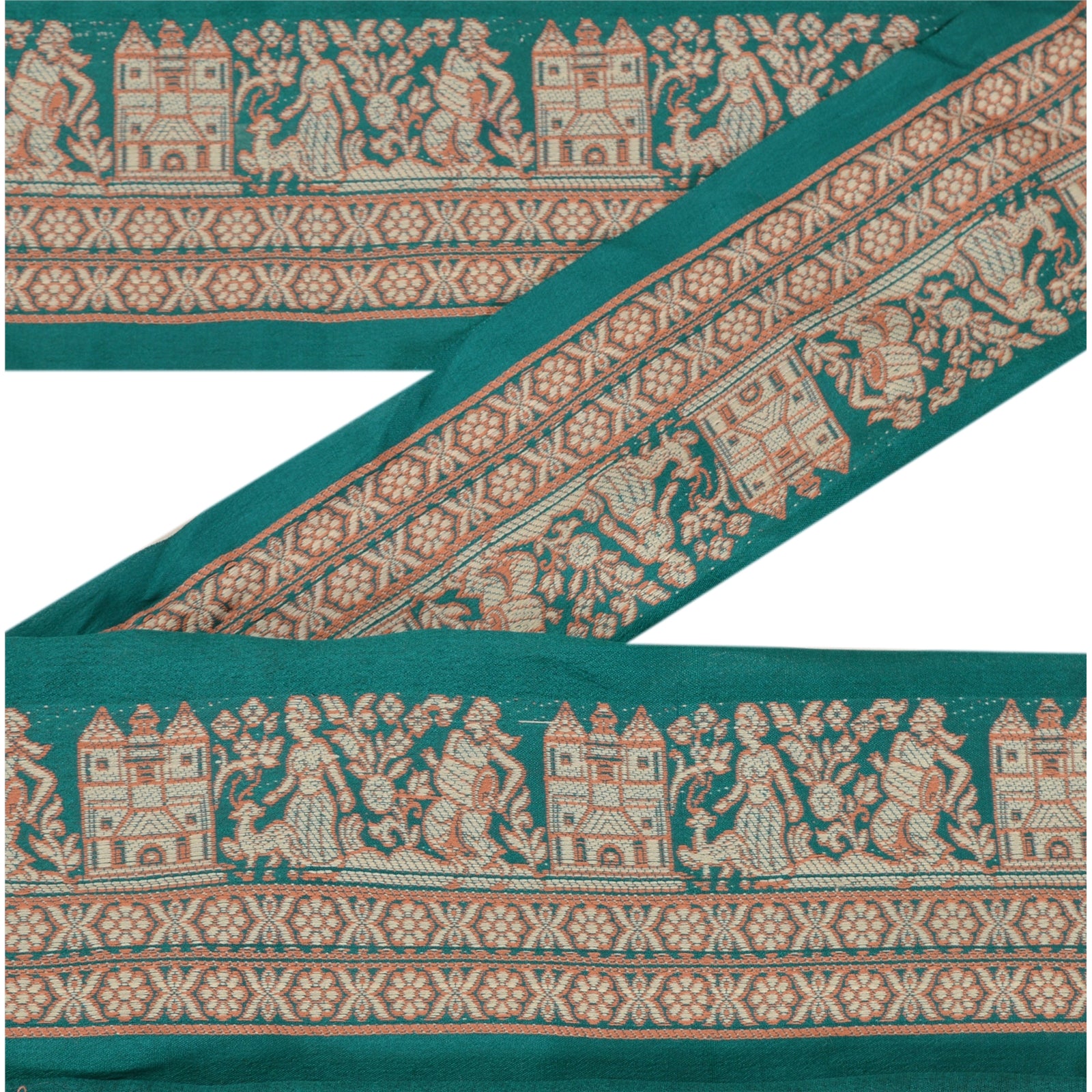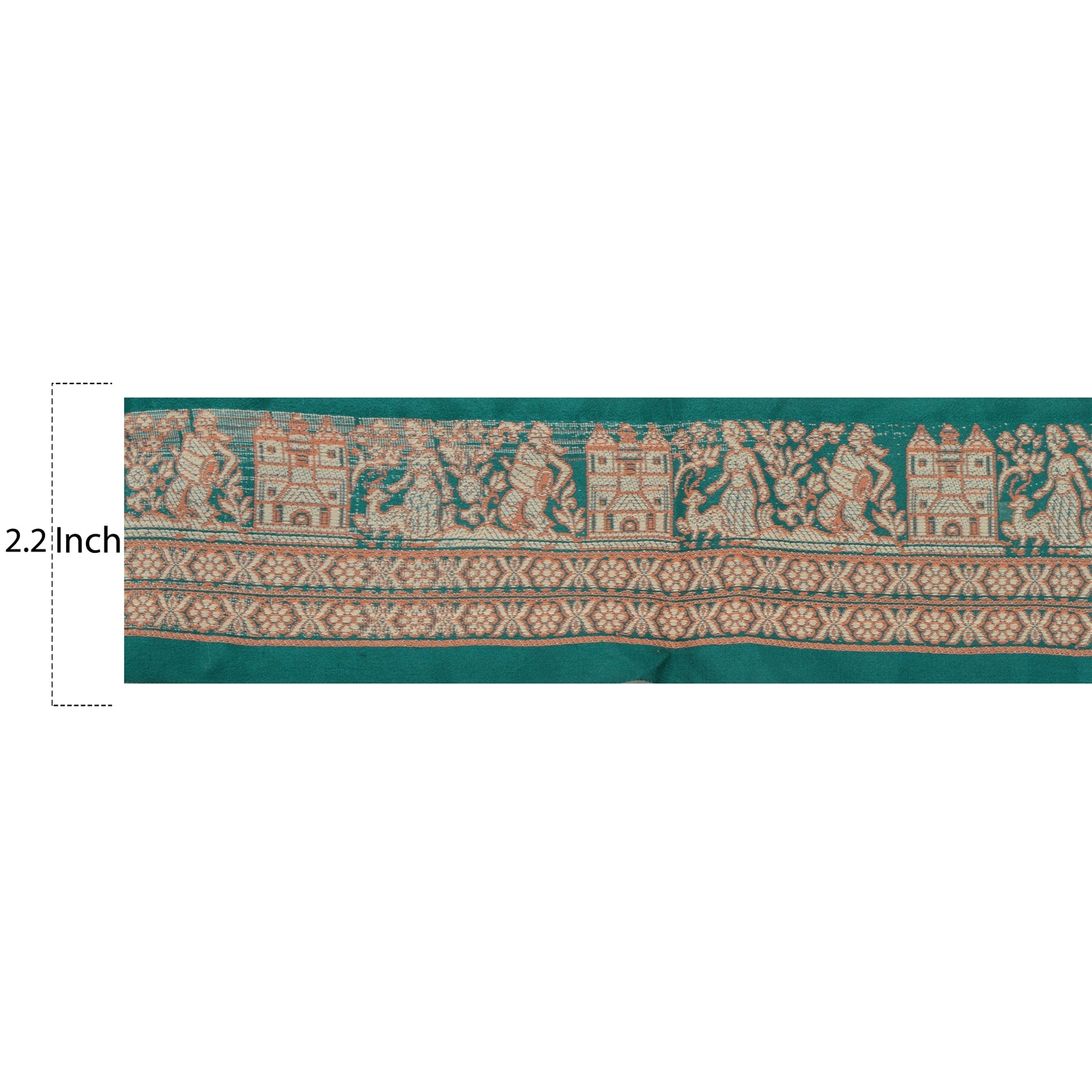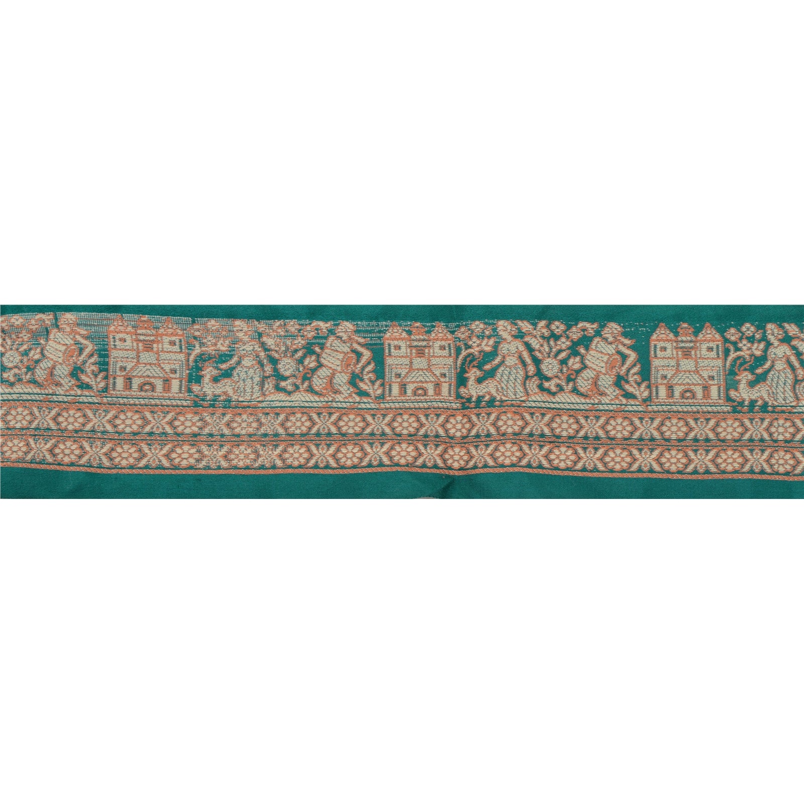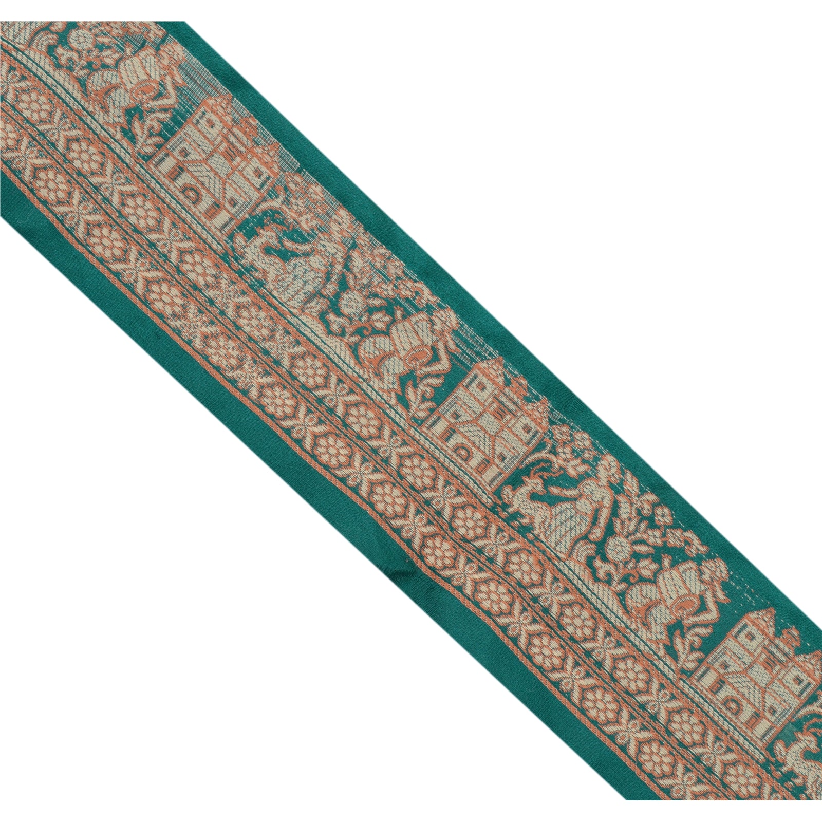 Sanskriti Vintage 1 Yd Sari Border Craft Woven Baluchari Sewing Green 2.2"W Lace