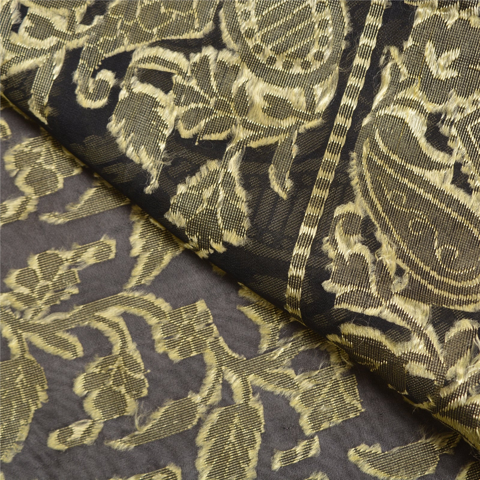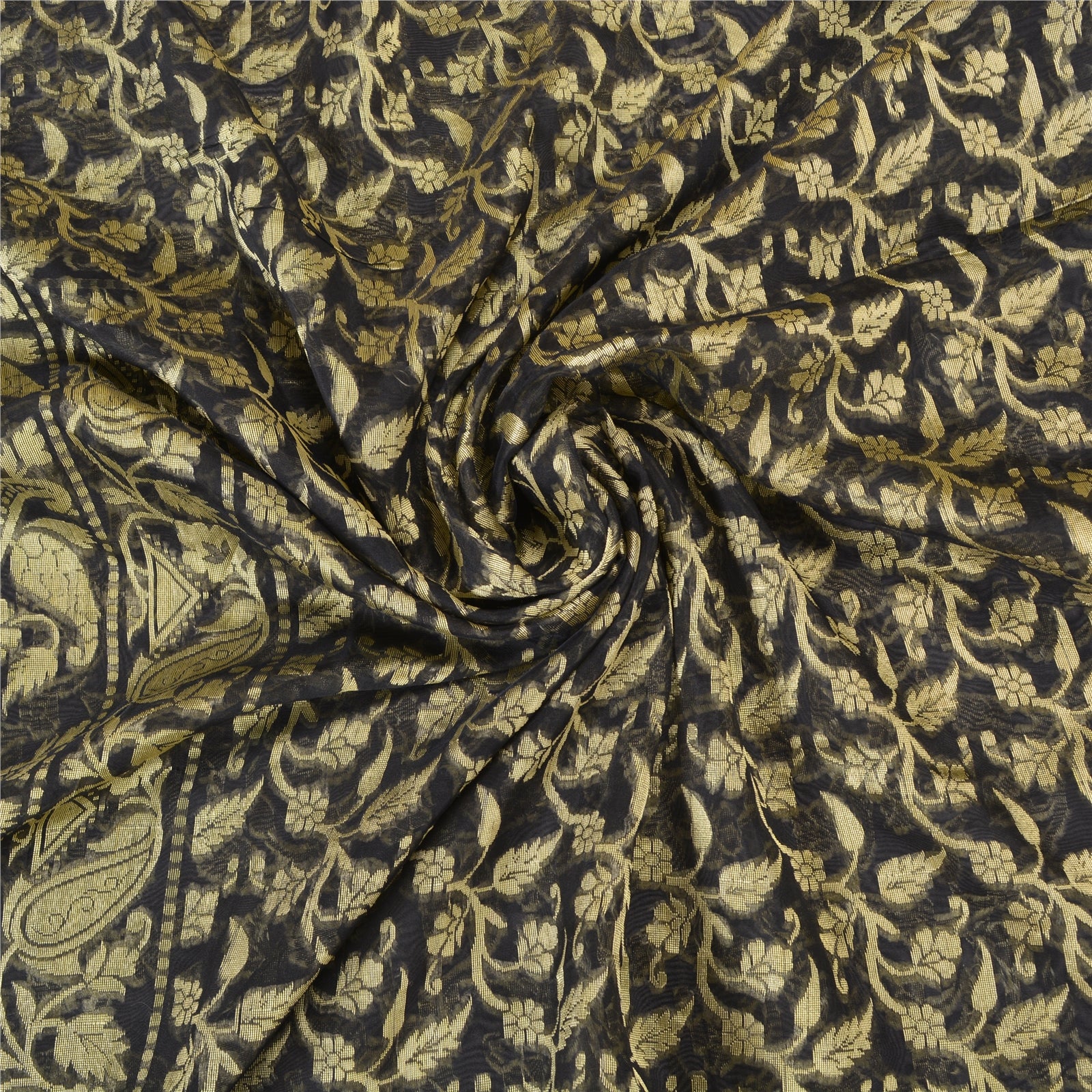 'THE ITEM COLOR OR SHADE MAY BE DARKER OR LIGHTER THAN THE PICTURE.' Beautiful Black Colored Blend Silk Woven Sari/Sustainable Fabric. Pallu & Border has golden woven thread work with floral & paisley design. The center of the saree has similar woven floral design. This saree can be used for various crafting ideas too. Use it for dress designing, as a throw, as window dressing, upholstery, table linen and much more. Let your creative juices flow. 'International buyers please note: Import duties, taxes, and charges are not included in the item price or postage cost. These charges are the buyer's responsibility. Please check with your country's customs office to determine what these additional costs will be prior to bidding or buying. Buyer will pay custom duty/tax. It is calculated and charged differently by every country. As a seller I do not have any control over it. VAT or sales tax is calculated by the platform at the time of checkout. Customs charge is payable at the time of delivery.'