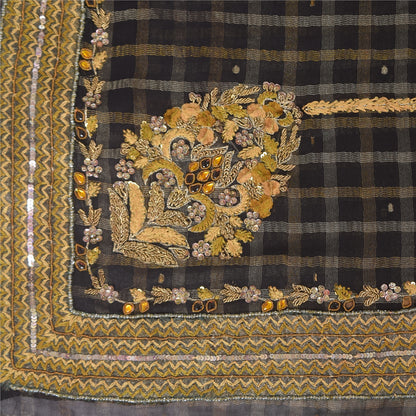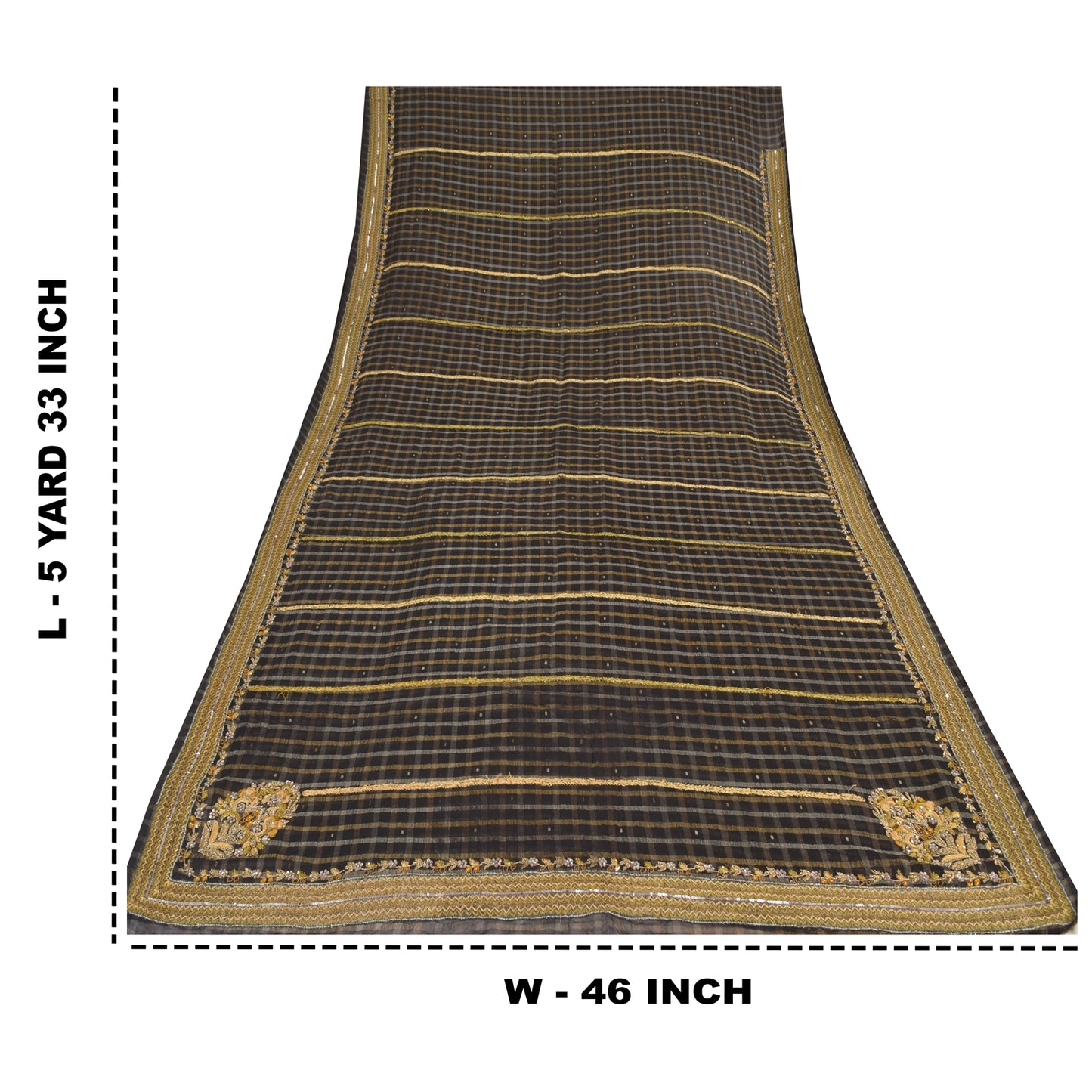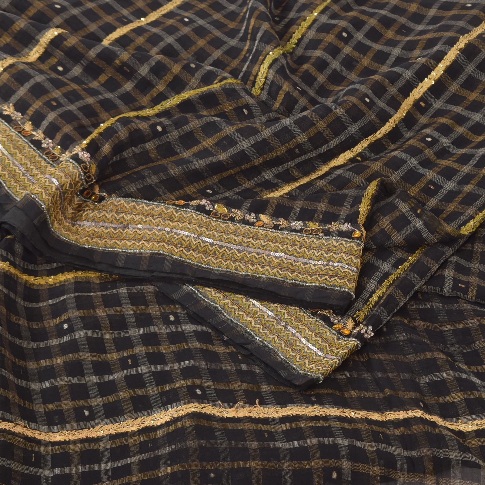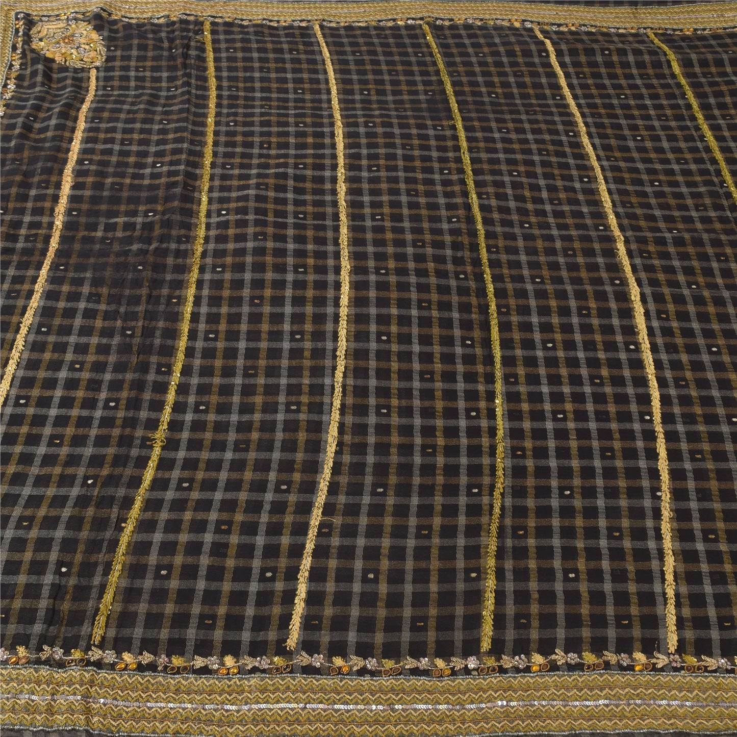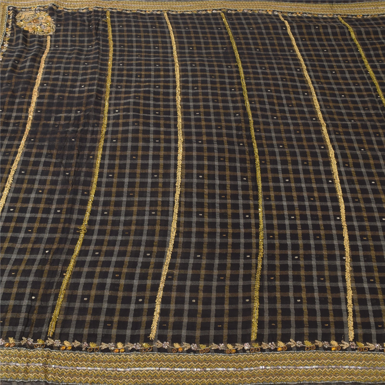 THE ITEM COLOR OR SHADE MAY BE DARKER OR LIGHTER THAN THE PICTURE.' Beautiful Sari In 100% Pure Silk Black Colored Hand Embroidered Sari/Sustainable Fabric. Pallu & Border Features floral design embellished with metallic golden/silver zari, golden zardozi work, silver/golden sequins wrok, golden dori work, white glass beads work, red/yellow kundan stone work & yellow/green thread work. The center part of sari boasts floral/checks design with similar work. This unique vintage saree can be used for various crafting ideas for example design a dress, use it as a throw, as window dressing, upholstery, table linen and much more. Let your creative juices flow and use this decorated Sustainable Fabric in multiple fashion Shipping note: International buyers please note: Import duties, taxes, and charges are not included in the item price or postage cost. These charges are the buyer's responsibility. Please check with your country's customs office to determine what these additional costs will be prior to bidding or buying. Buyer will pay custom duty/tax. It is calculated and charged differently by every country. As a seller I do not have any control over it. VAT or sales tax is calculated by the platform at the time of checkout. Customs charge is payable at the time of delivery. SKU: PS-64239