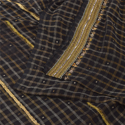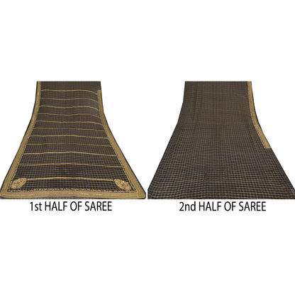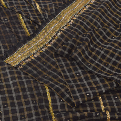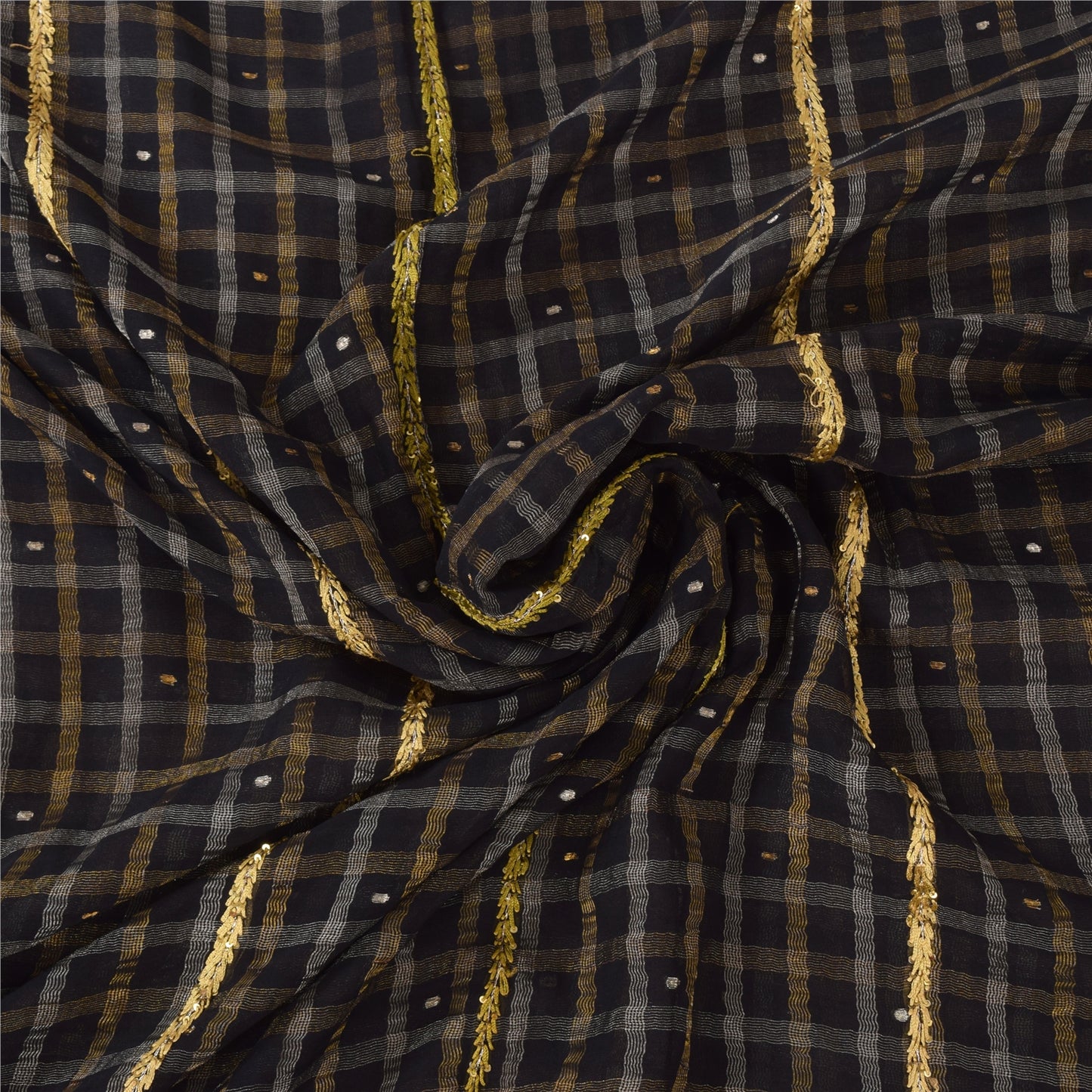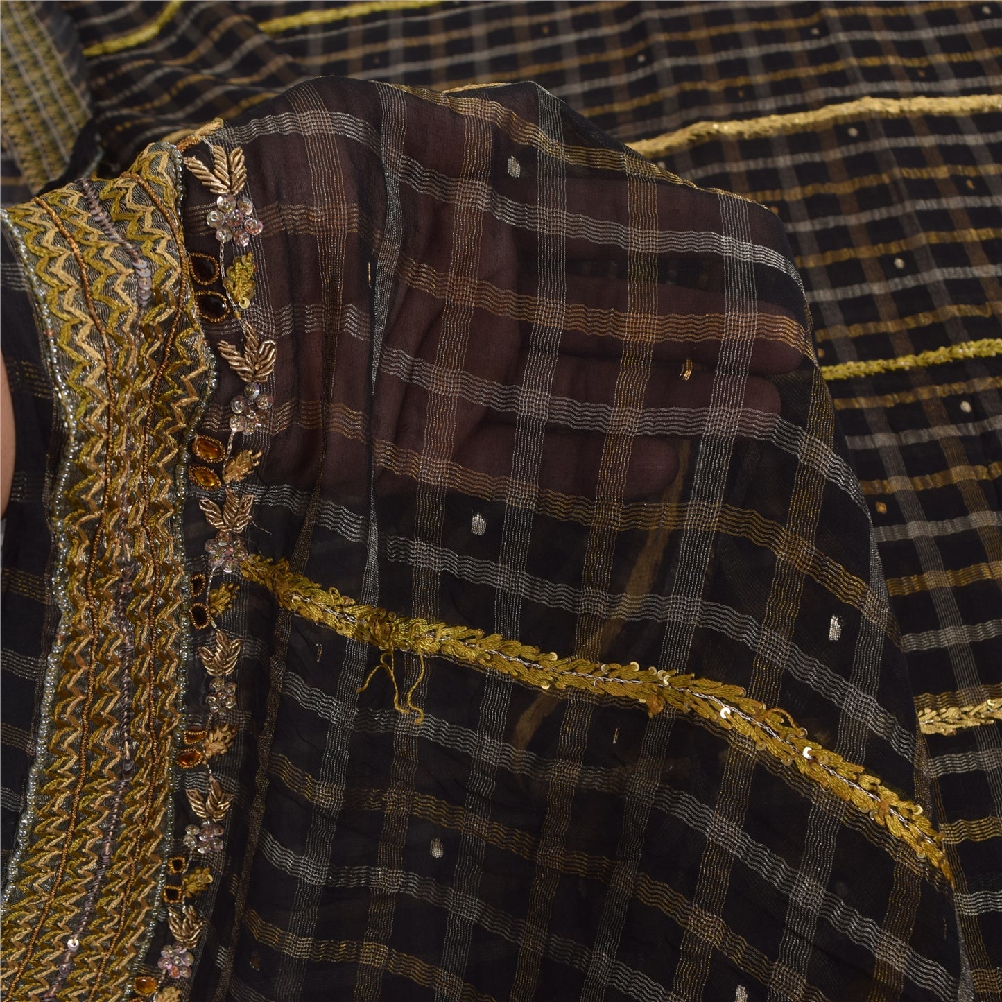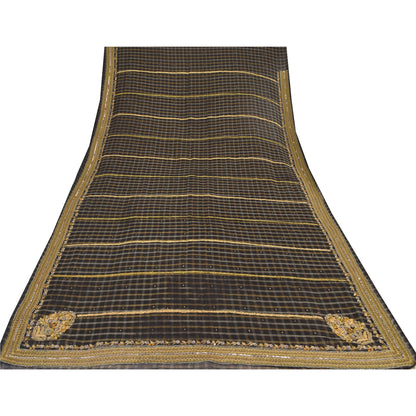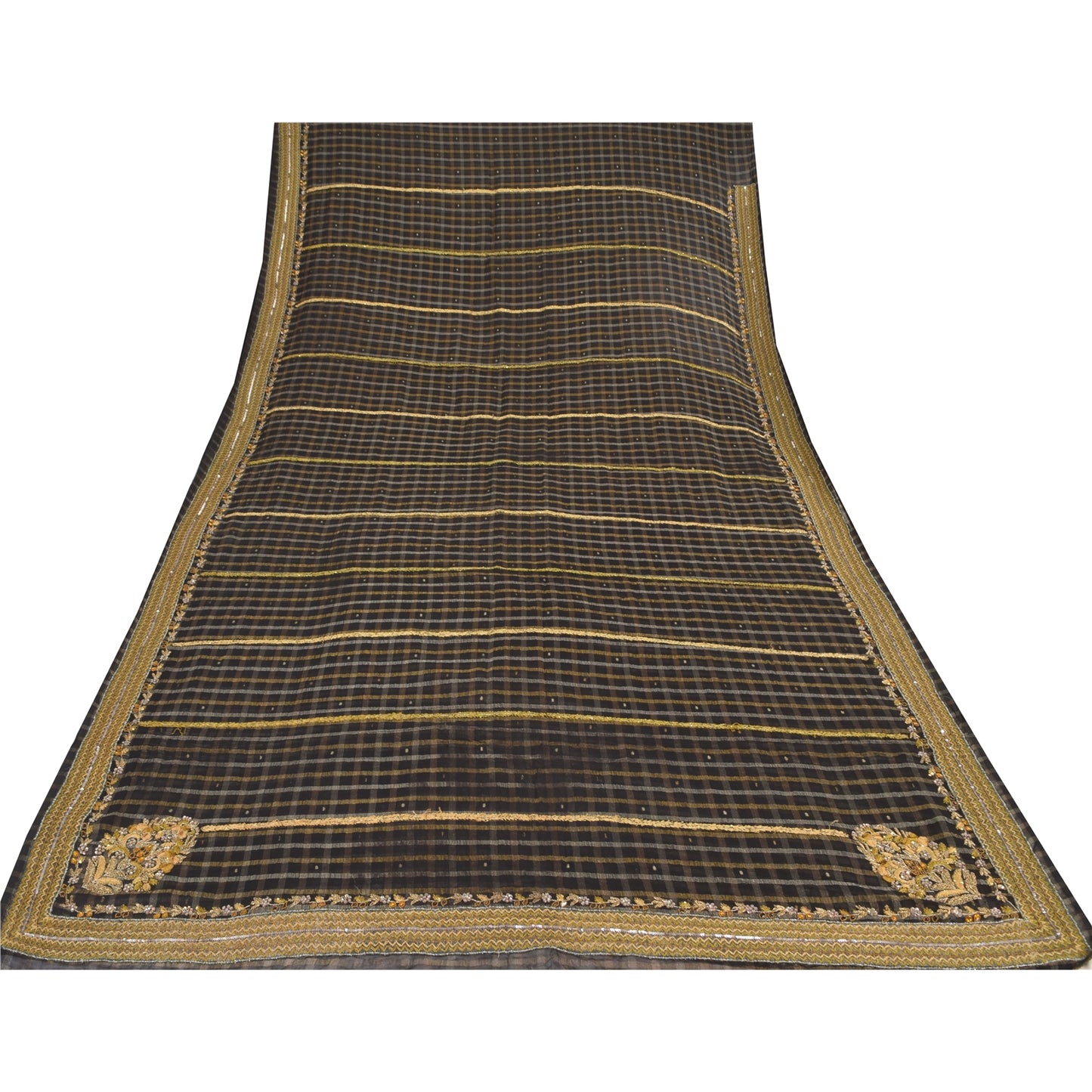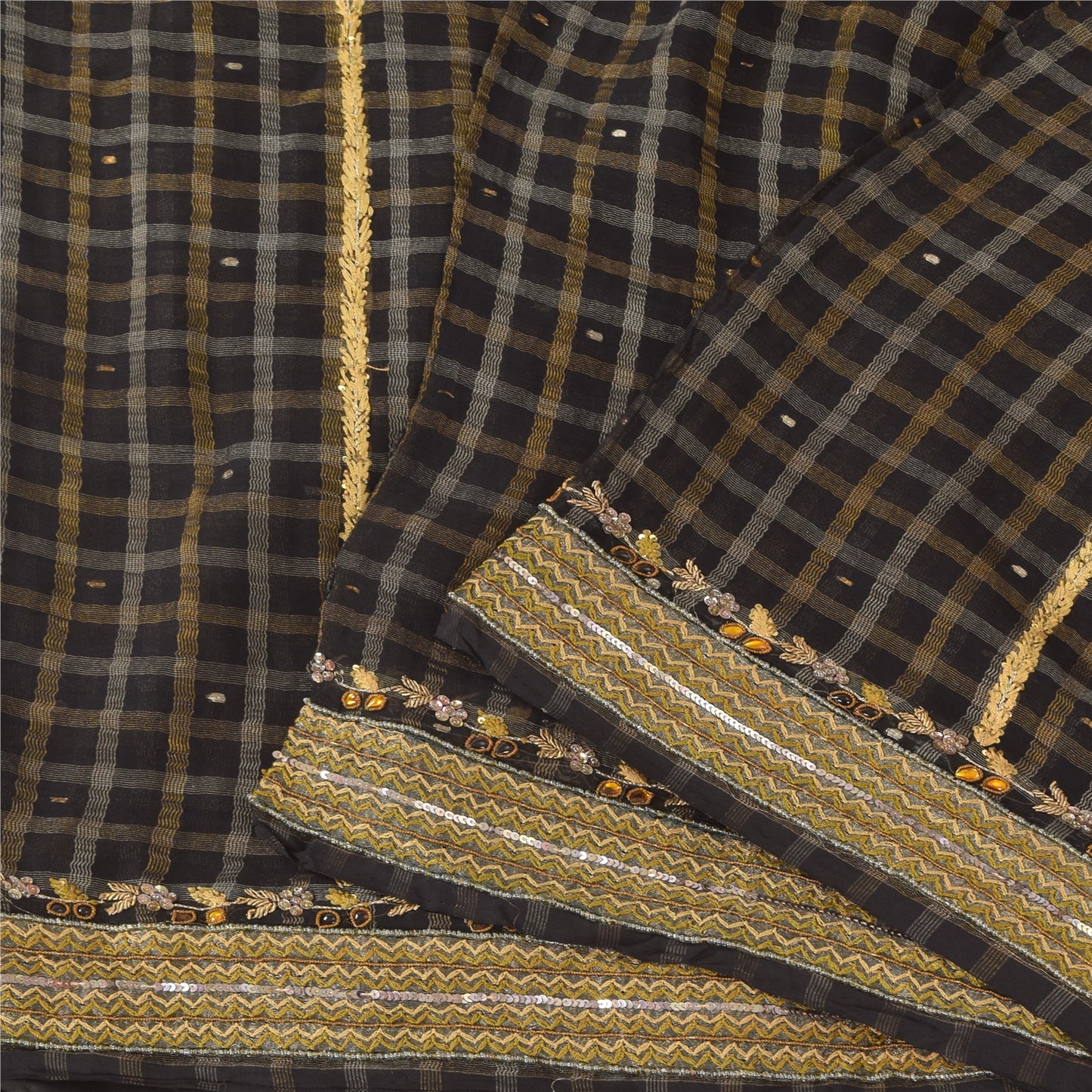 THE ITEM COLOR OR SHADE MAY BE DARKER OR LIGHTER THAN THE PICTURE.' Beautiful Sari In 100% Pure Silk Black Colored Hand Embroidered Sari/Sustainable Fabric. Pallu & Border Features floral design embellished with metallic golden/silver zari, golden zardozi work, silver/golden sequins wrok, golden dori work, white glass beads work, red/yellow kundan stone work & yellow/green thread work. The center part of sari boasts floral/checks design with similar work. This unique vintage saree can be used for various crafting ideas for example design a dress, use it as a throw, as window dressing, upholstery, table linen and much more. Let your creative juices flow and use this decorated Sustainable Fabric in multiple fashion Shipping note: International buyers please note: Import duties, taxes, and charges are not included in the item price or postage cost. These charges are the buyer's responsibility. Please check with your country's customs office to determine what these additional costs will be prior to bidding or buying. Buyer will pay custom duty/tax. It is calculated and charged differently by every country. As a seller I do not have any control over it. VAT or sales tax is calculated by the platform at the time of checkout. Customs charge is payable at the time of delivery. SKU: PS-64239