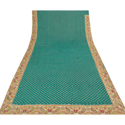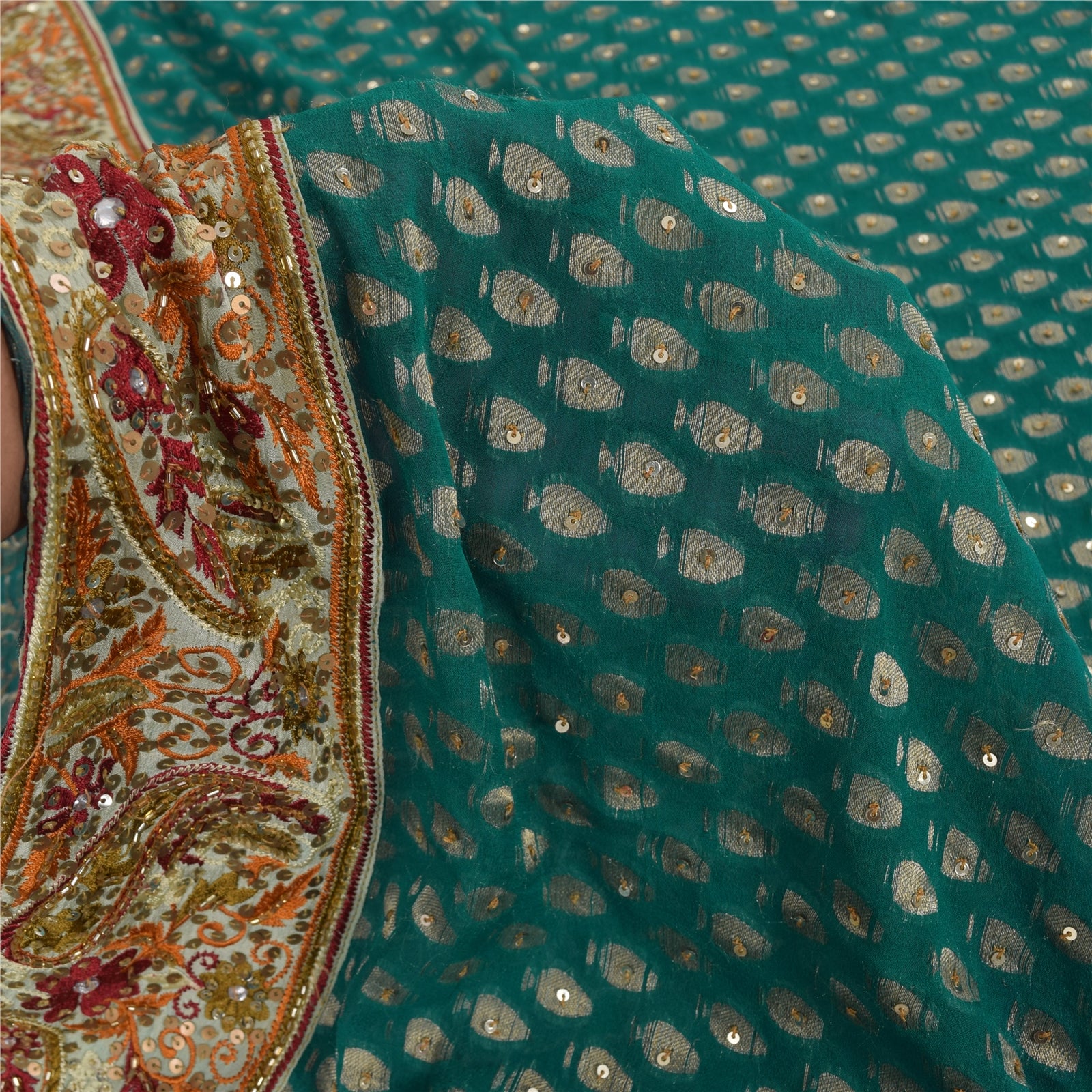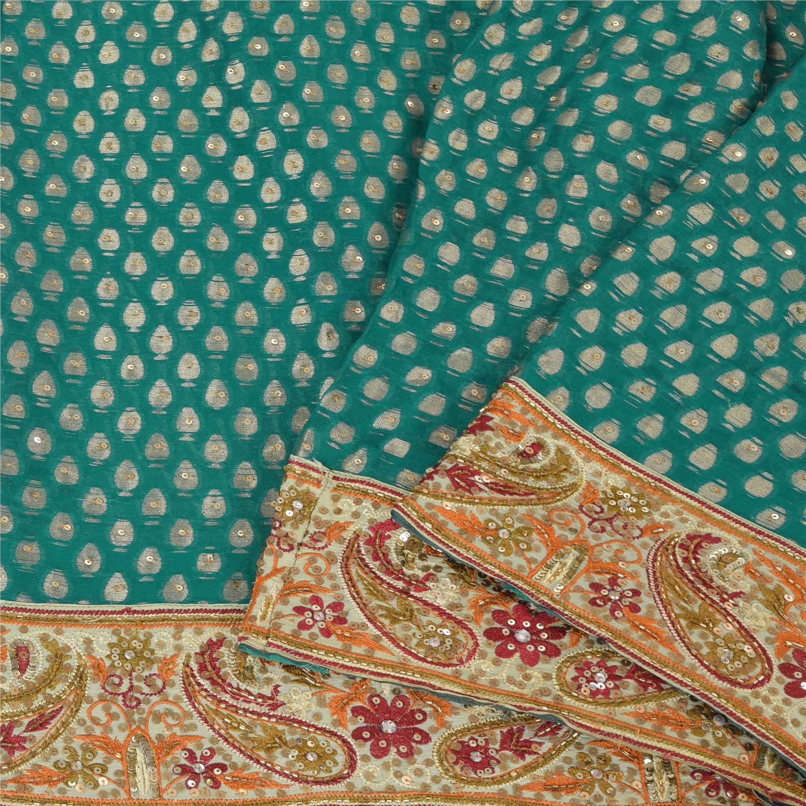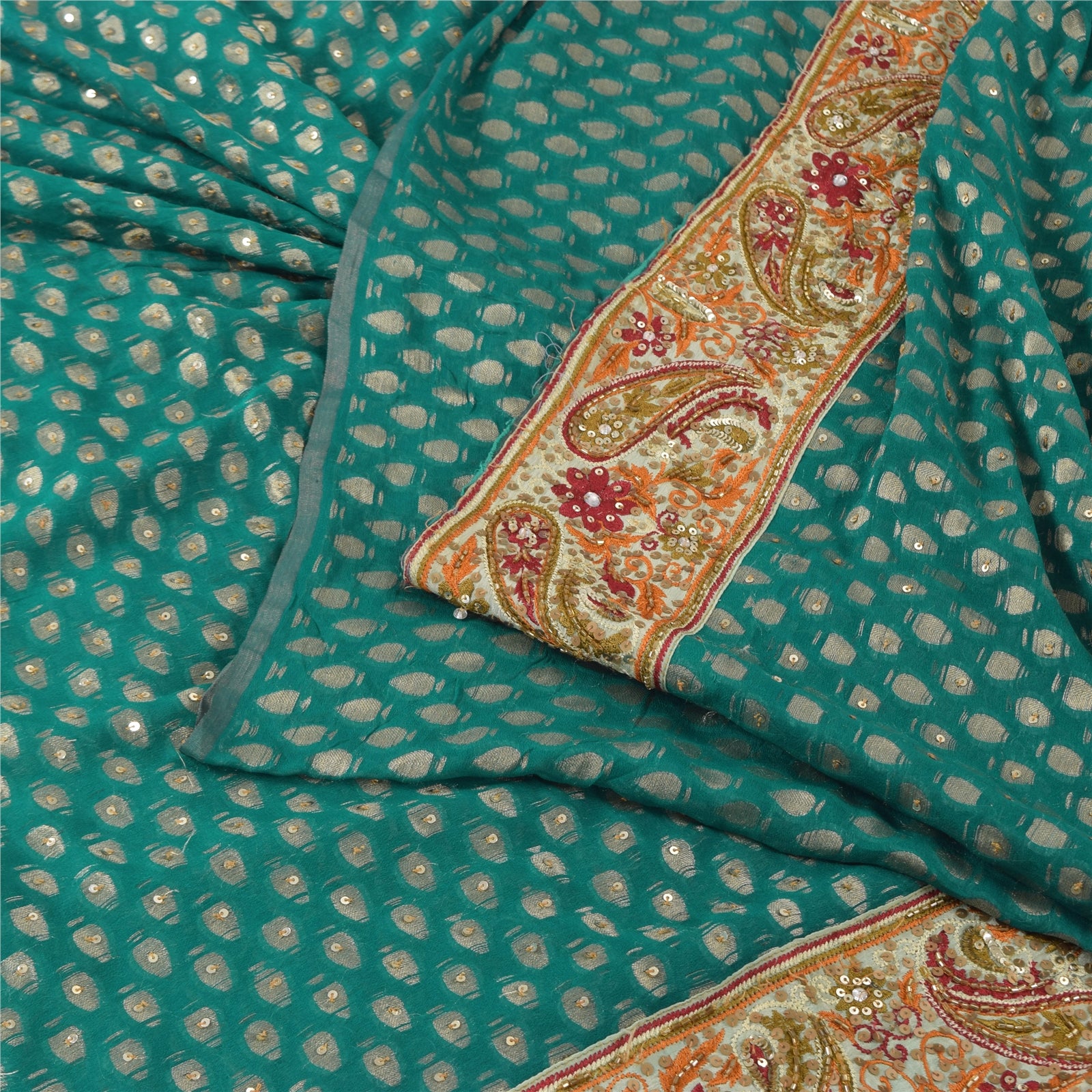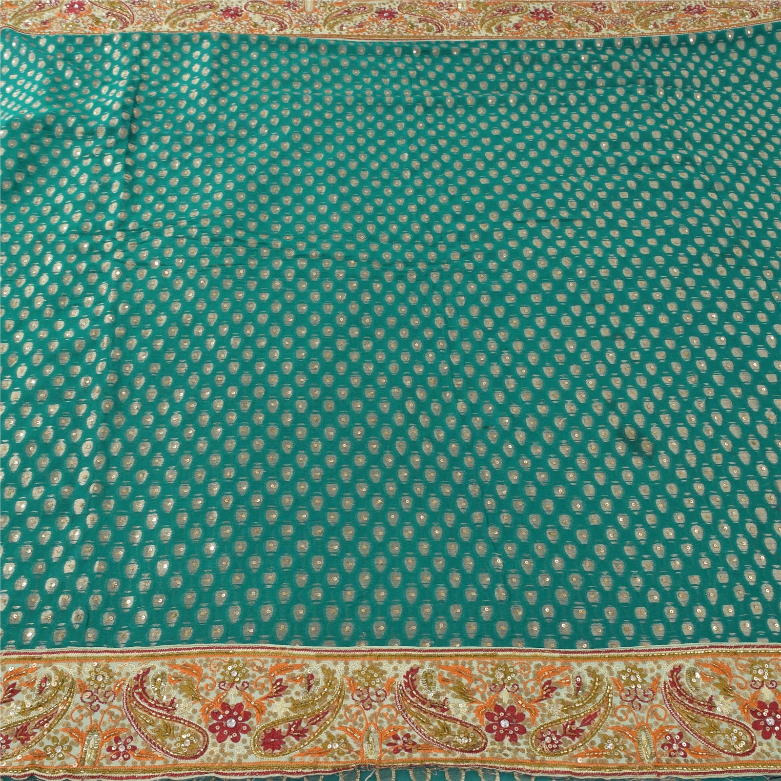 THE ITEM COLOR OR SHADE MAY BE DARKER OR LIGHTER THAN THE PICTURE.' An Awesome Sari In 100% Pure Georgette Silk Blue Colored Hand Embroidered Sari/Sustainable Fabric. Pallu & Border Features floral design embellished with golden zari work, golden sequins work, yellow glass beads work & green,red & cream color thread work. You Can See Center Portion Of The Sari Has Similar Thread Work With Floral Design. This unique vintage saree can be used for various crafting ideas for example design a dress, use it as a throw, as window dressing, upholstery, table linen and much more. Let your creative juices flow and use this decorated Sustainable Fabric in multiple fashion Shipping note: International buyers please note: Import duties, taxes, and charges are not included in the item price or postage cost. These charges are the buyer's responsibility. Please check with your country's customs office to determine what these additional costs will be prior to bidding or buying. Buyer will pay custom duty/tax. It is calculated and charged differently by every country. As a seller I do not have any control over it. VAT or sales tax is calculated by the platform at the time of checkout. Customs charge is payable at the time of delivery. SKU: PS-63953