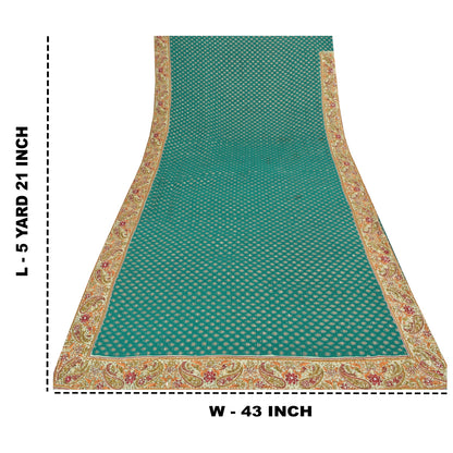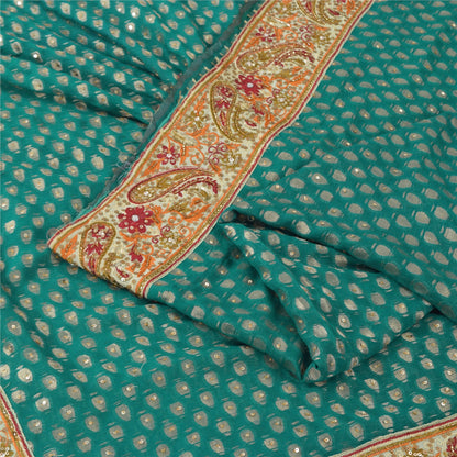 Sanskriti Vintage Blue Sarees Pure Georgette Hand Beaded Premium Sari 5yd Sustainable Fabric