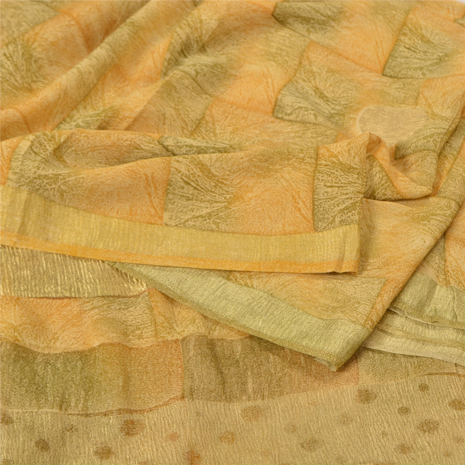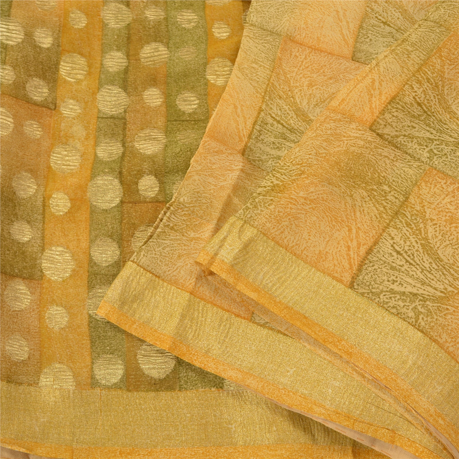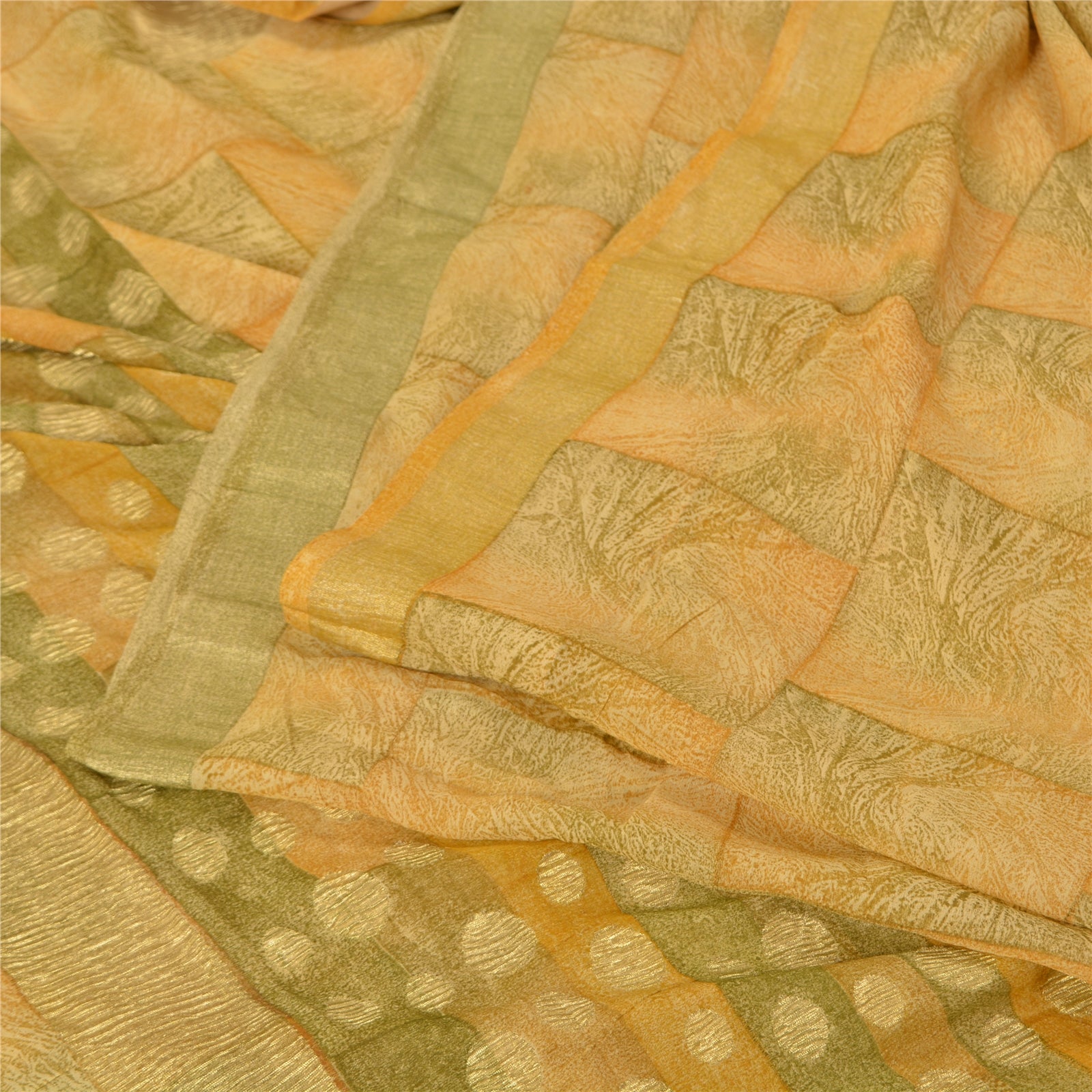 'THE ITEM COLOR OR SHADE MAY BE DARKER OR LIGHTER THAN THE PICTURE.' Beautiful shade of cream & green colored pure georgette woven sari. Pallu & border features printed abstract design with golden woven work. The center of the saree has similar printed & woven work. This saree can be used for various crafting ideas too. Use it for dress designing, as a throw, as window dressing, upholstery, table linen and much more. Let your creative juices flow. 'International buyers please note: Import duties, taxes, and charges are not included in the item price or postage cost. These charges are the buyer's responsibility. Please check with your country's customs office to determine what these additional costs will be prior to bidding or buying. Buyer will pay custom duty/tax. It is calculated and charged differently by every country. As a seller I do not have any control over it. VAT or sales tax is calculated by the platform at the time of checkout. Customs charge is payable at the time of delivery.'