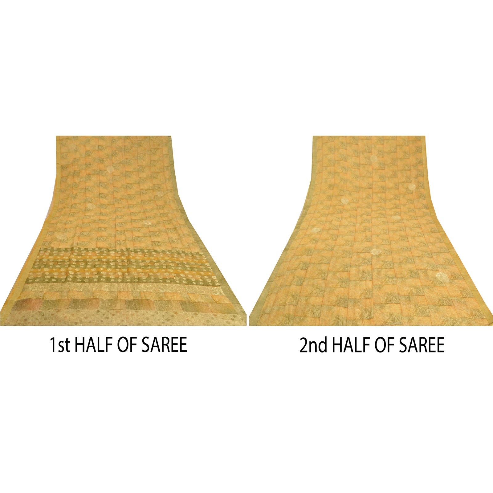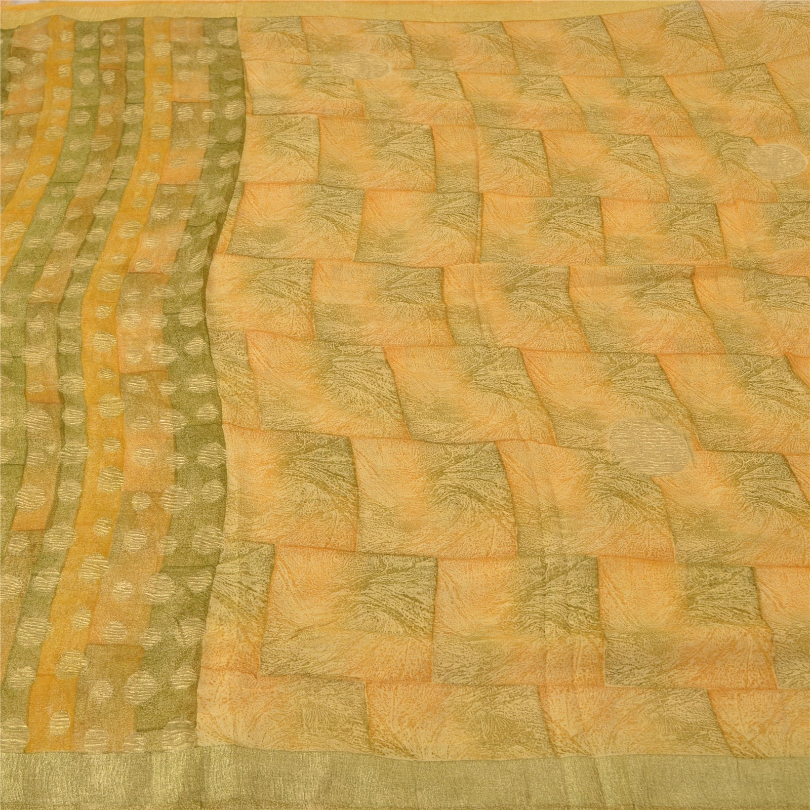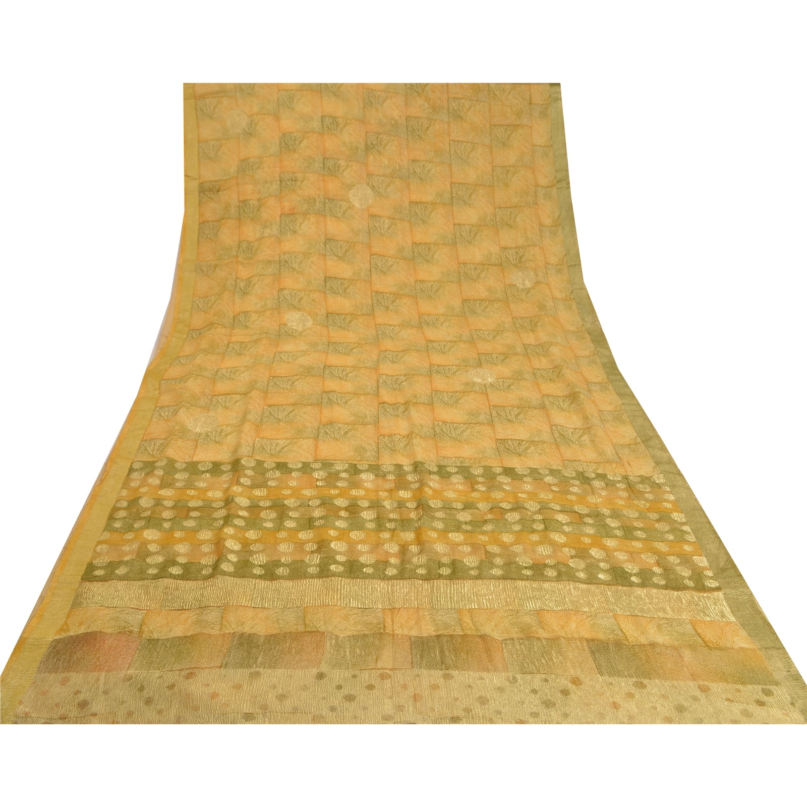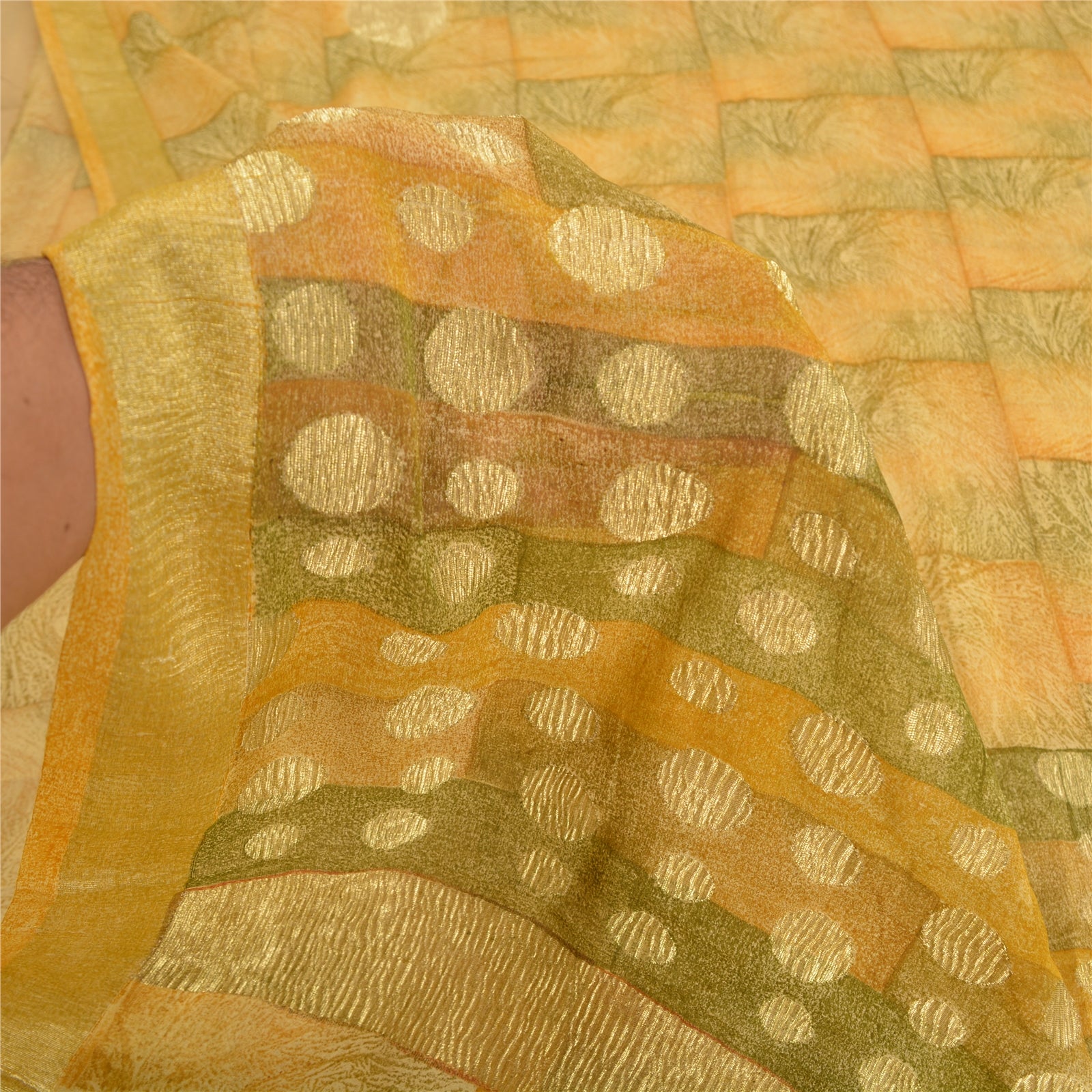 'THE ITEM COLOR OR SHADE MAY BE DARKER OR LIGHTER THAN THE PICTURE.' Beautiful shade of cream & green colored pure georgette woven sari. Pallu & border features printed abstract design with golden woven work. The center of the saree has similar printed & woven work. This saree can be used for various crafting ideas too. Use it for dress designing, as a throw, as window dressing, upholstery, table linen and much more. Let your creative juices flow. 'International buyers please note: Import duties, taxes, and charges are not included in the item price or postage cost. These charges are the buyer's responsibility. Please check with your country's customs office to determine what these additional costs will be prior to bidding or buying. Buyer will pay custom duty/tax. It is calculated and charged differently by every country. As a seller I do not have any control over it. VAT or sales tax is calculated by the platform at the time of checkout. Customs charge is payable at the time of delivery.'