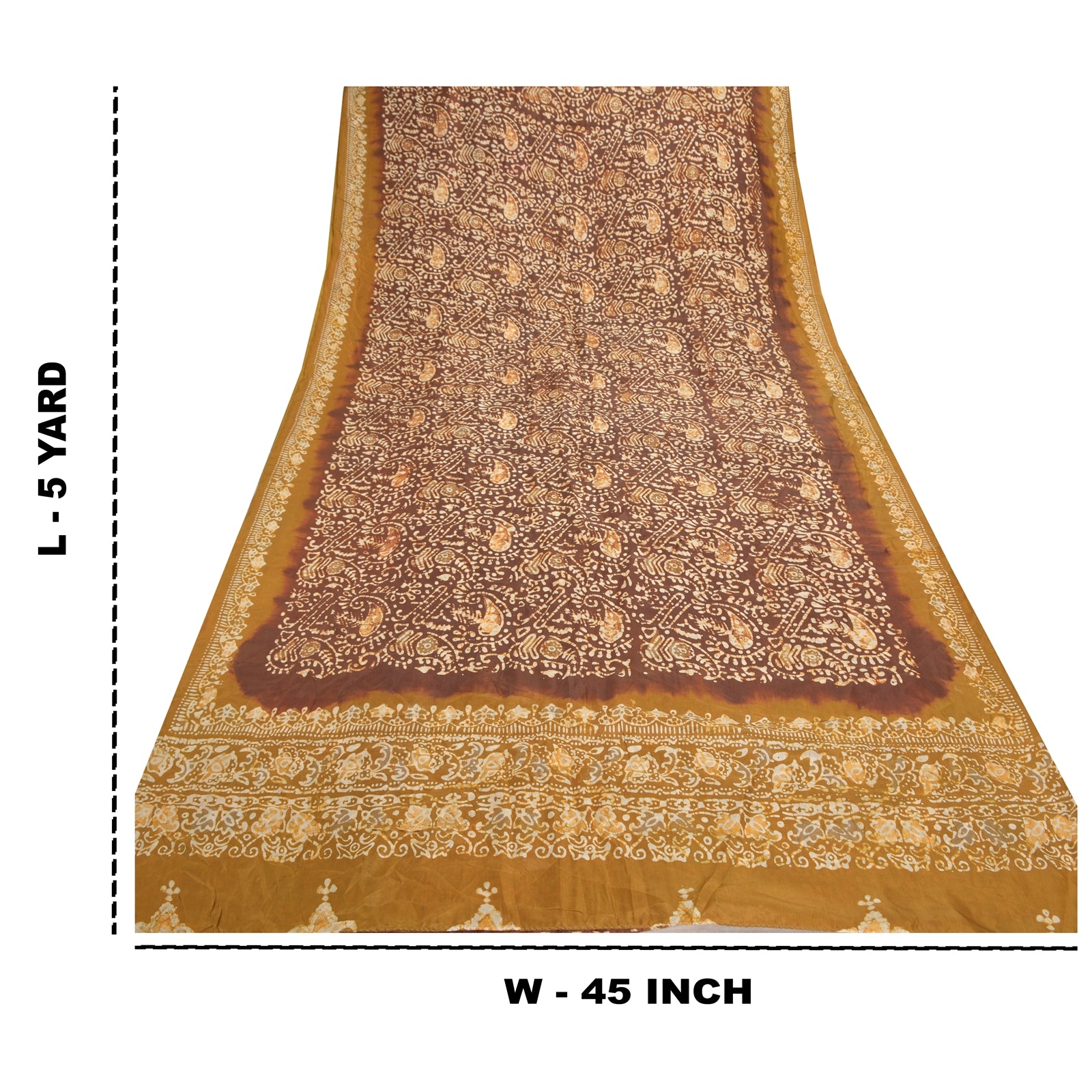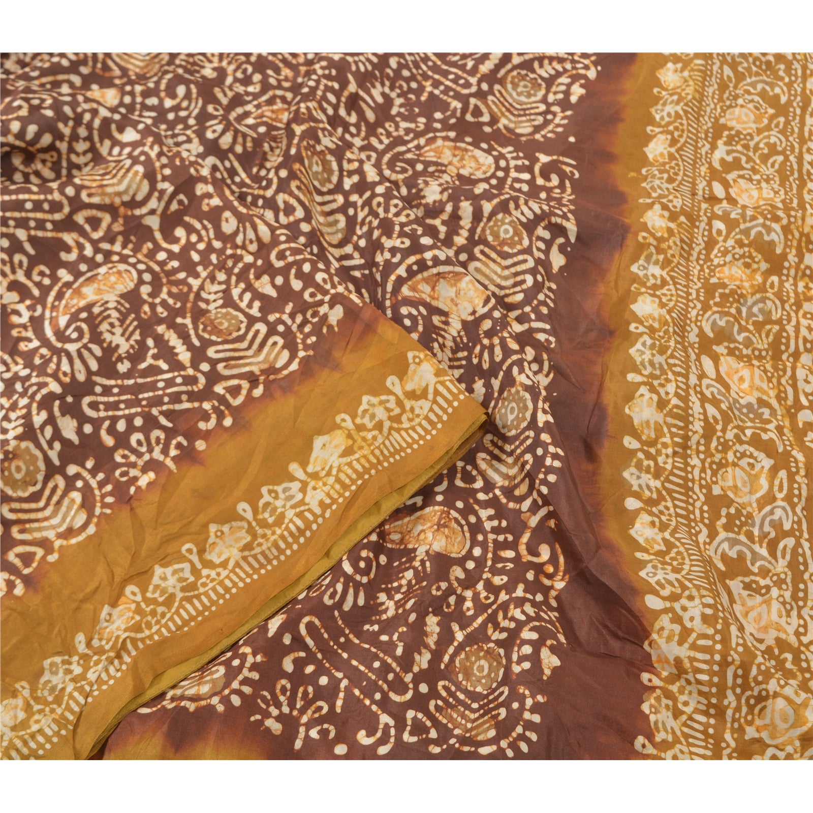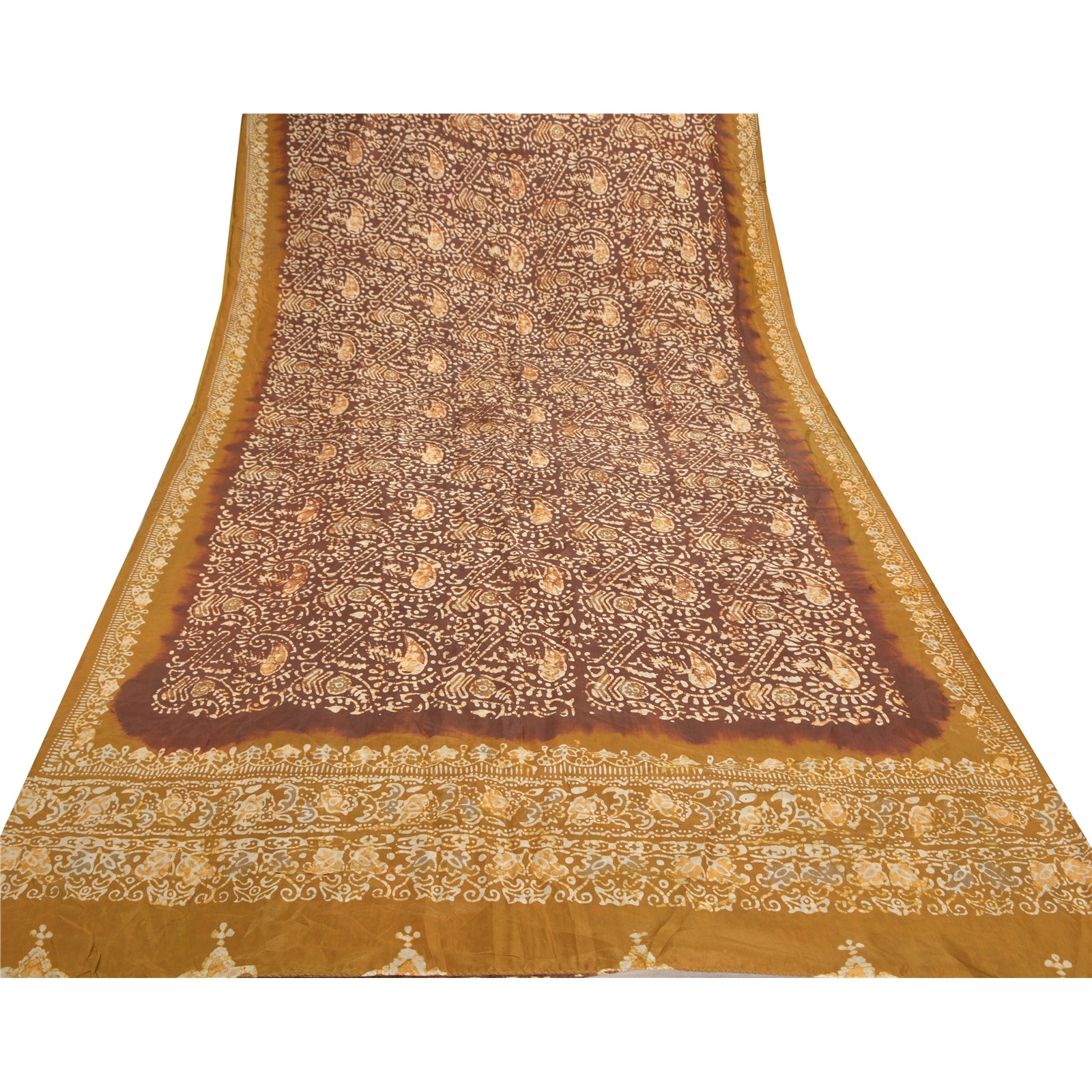 Sanskriti Vintage Brown Heavy Sarees Pure Silk Batik Work Indian Sari Sustainable Fabric