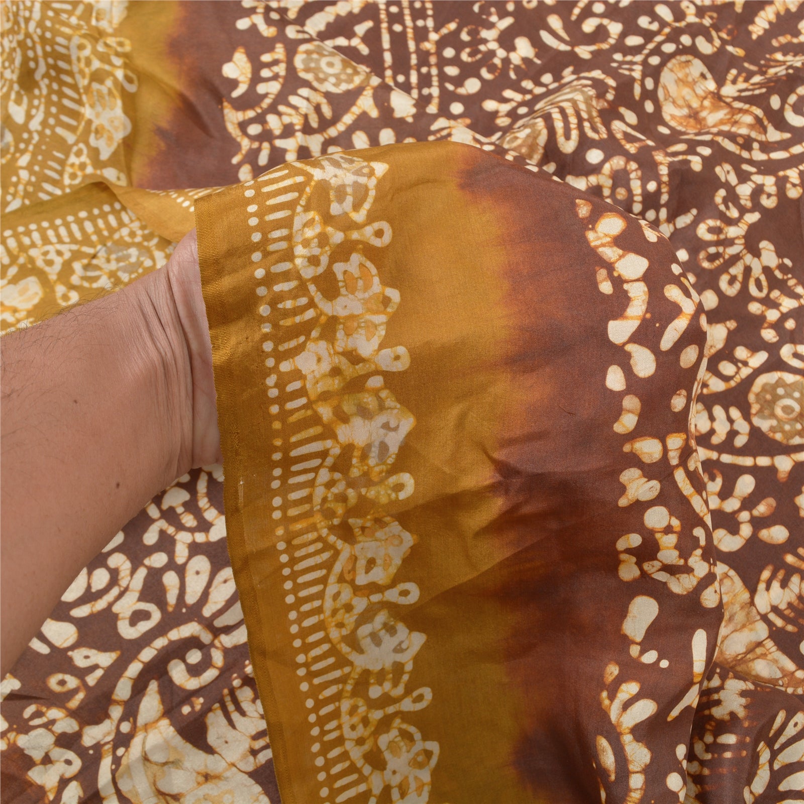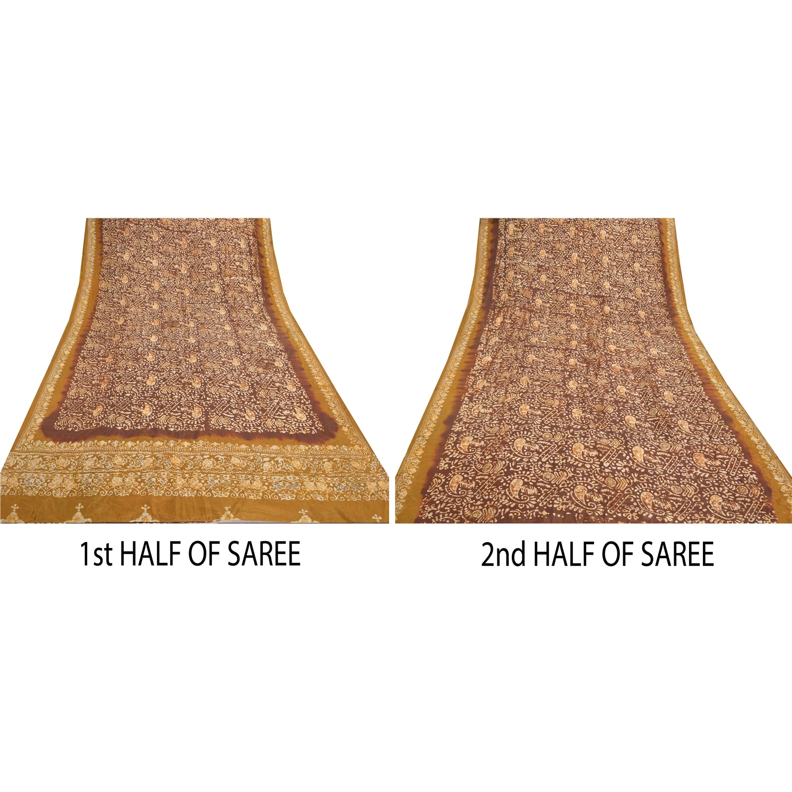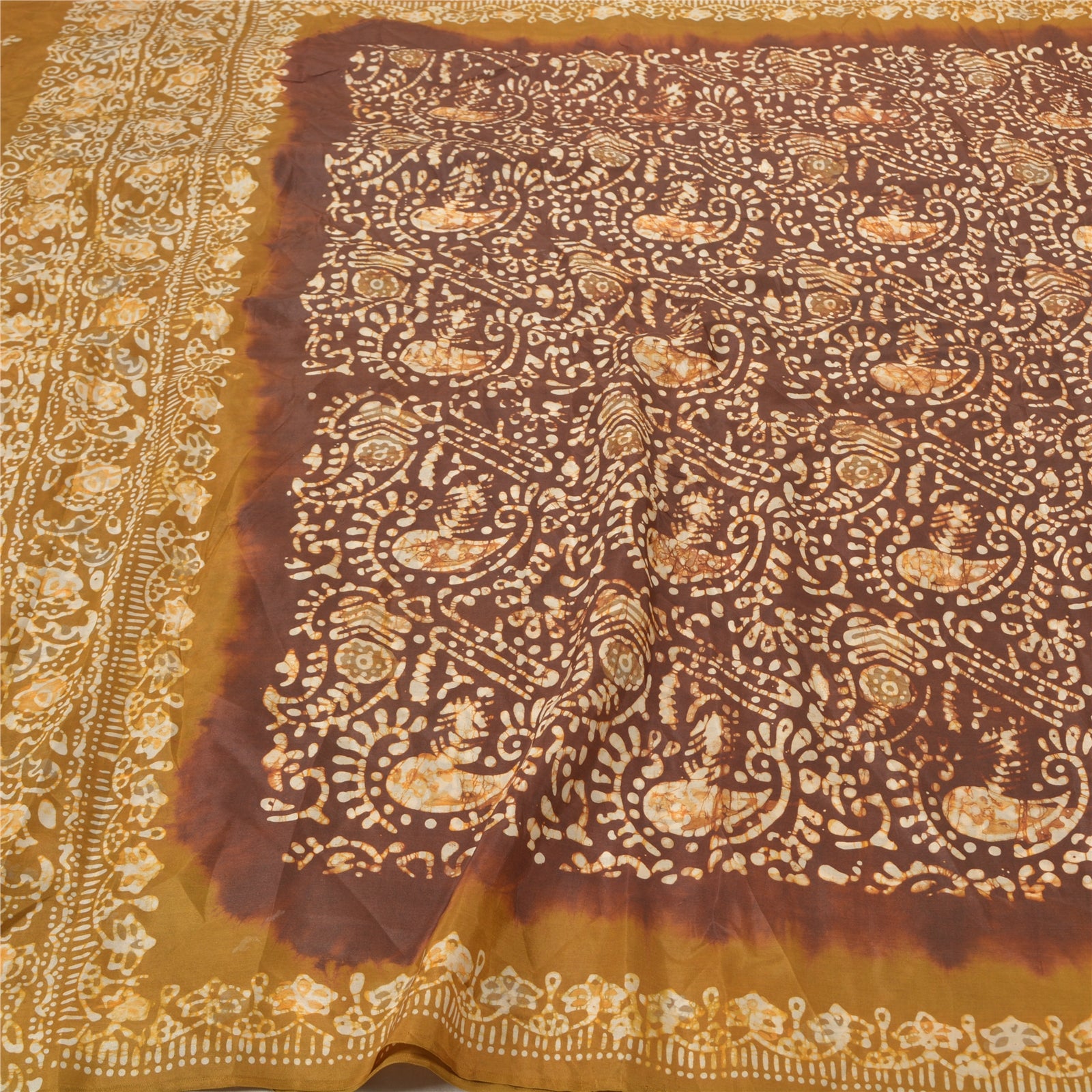 Sanskriti Vintage Brown Heavy Sarees Pure Silk Batik Work Indian Sari Sustainable Fabric
