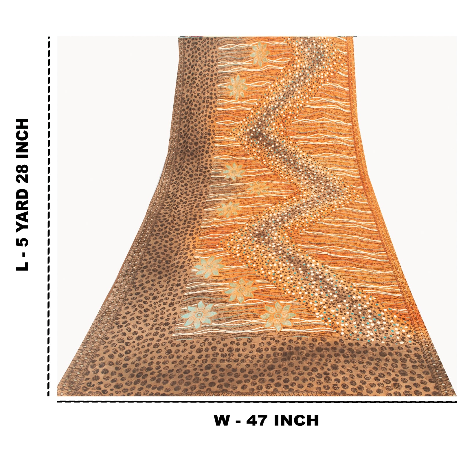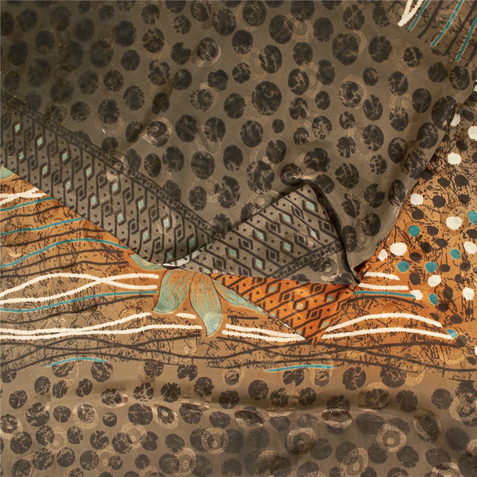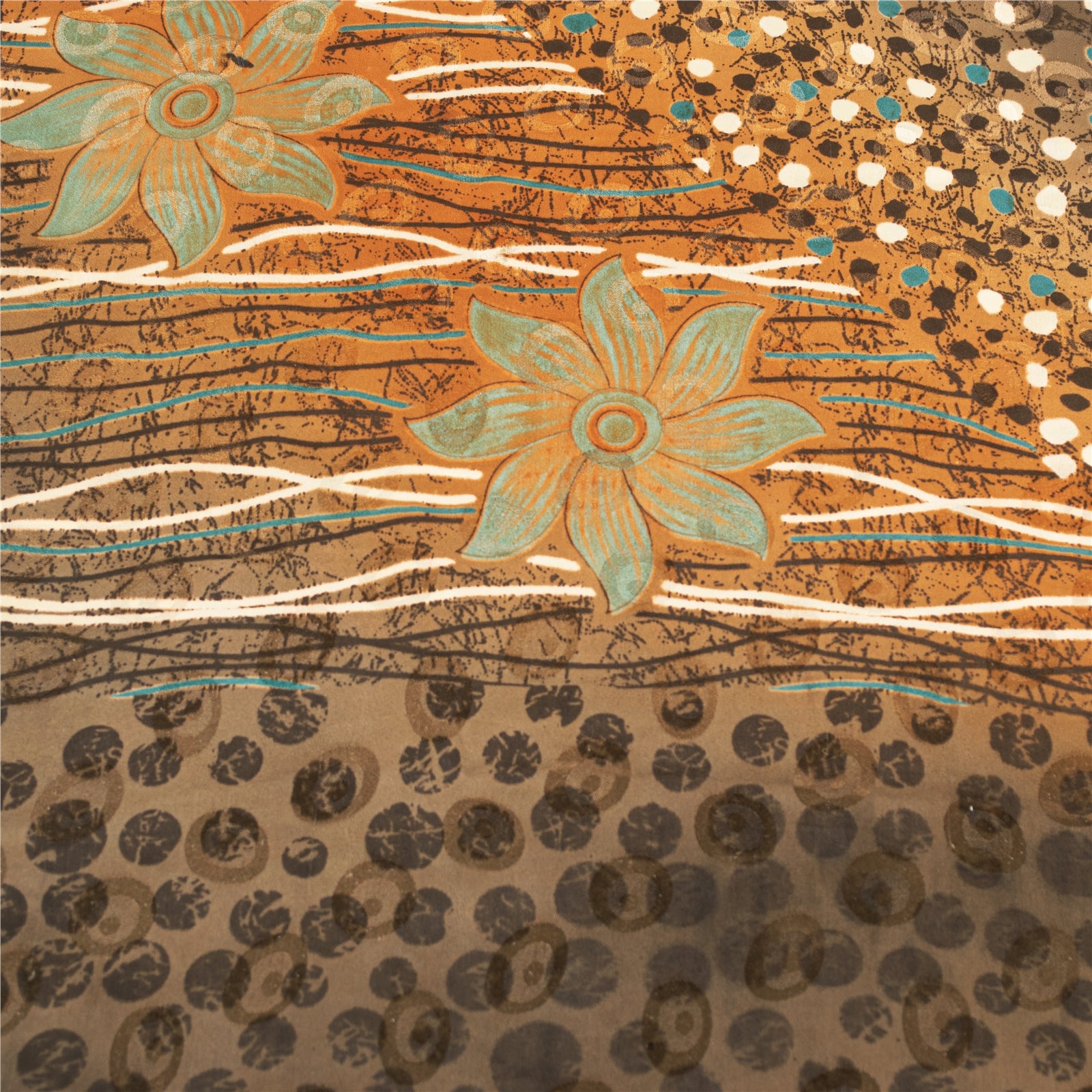 Sanskriti Vintage Brown Sarees Moss Crepe Floral Printed Craft Fabric Sari