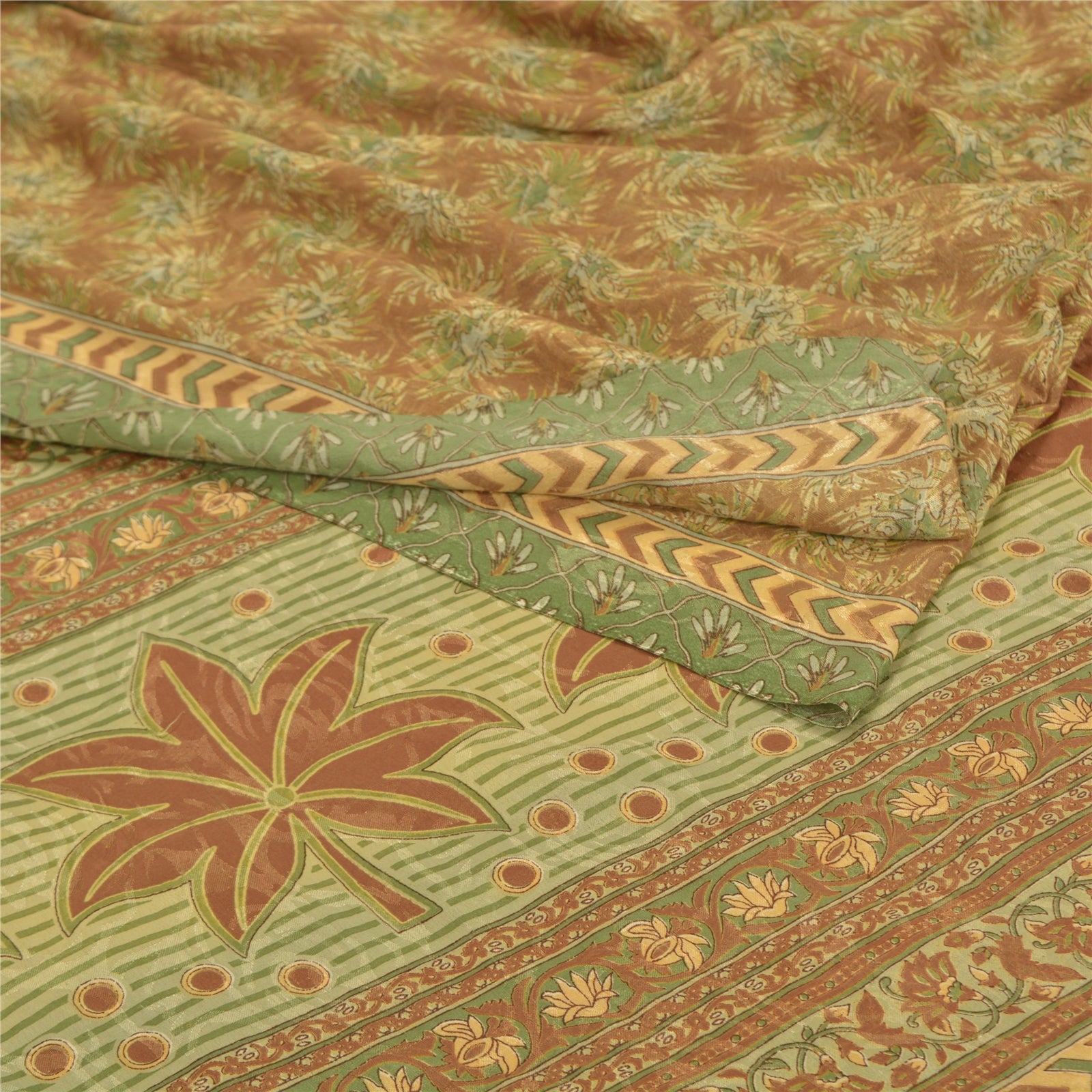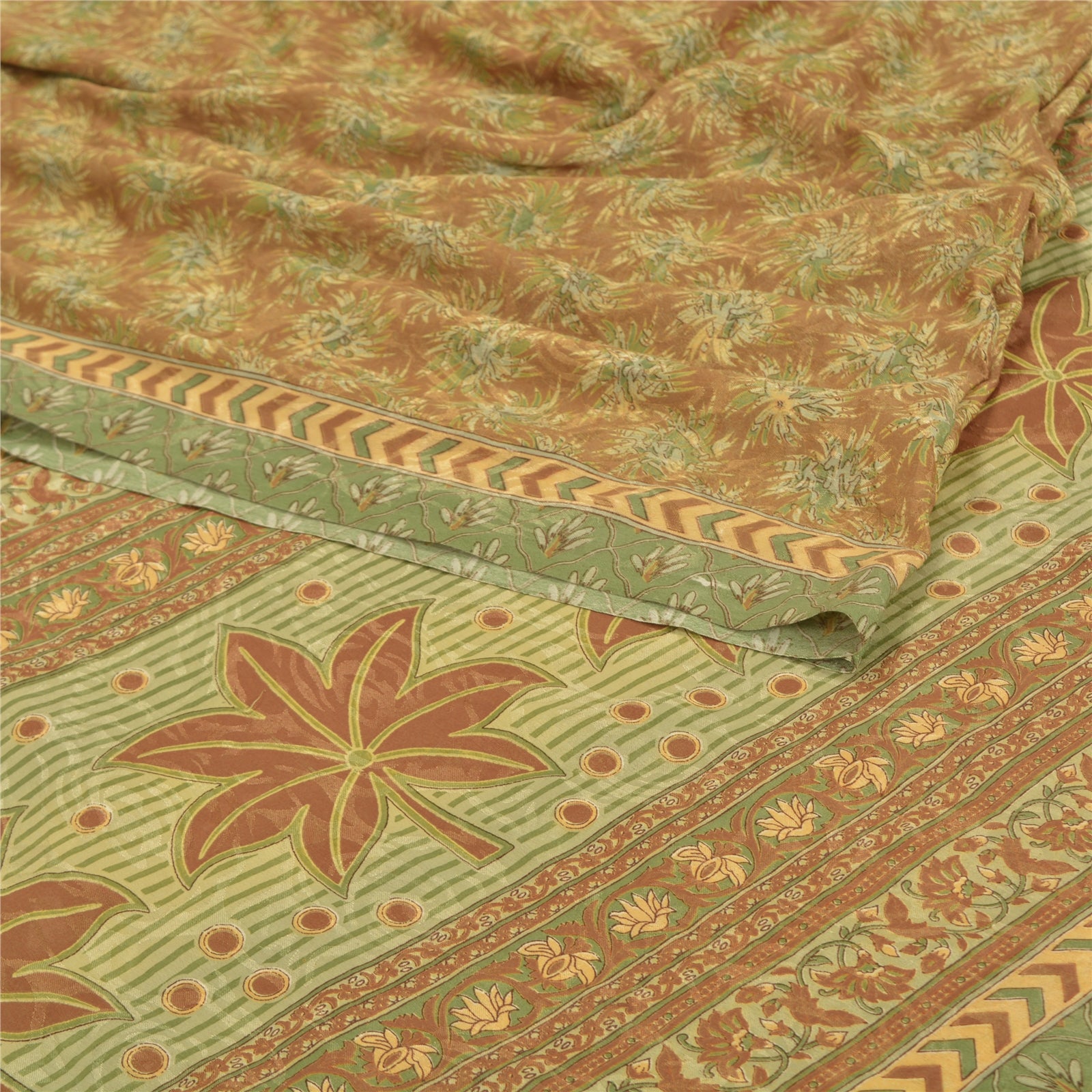 Sanskriti Vintage Brown Sarees Moss Crepe Printed Sari Floral Craft Fabric