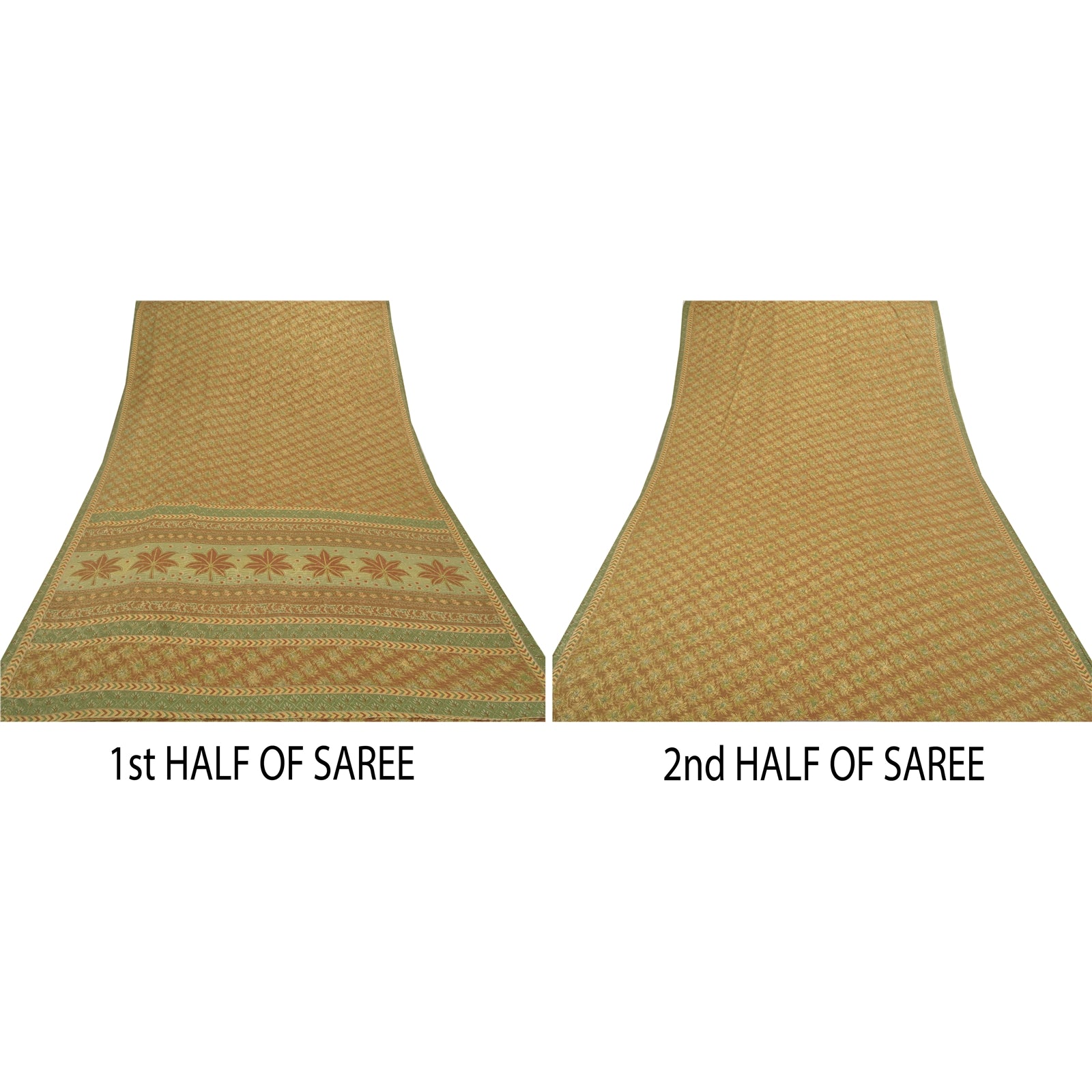 • Elegant brown & green colored printed moss crepe saree . • Pallu & Border has printed floral design . • Floral design in center part of sari. Moss Crepe- This sari is polyester but it feels like crepe silk. This unique vintage saree can be used for various crafting ideas even if you don't want to use it as a sari. Design a dress, use it as a throw, as window dressing, upholstery, sarongs, table linen and much more. Let your creative juices flow and use this decorated fabric in multiple fashion.