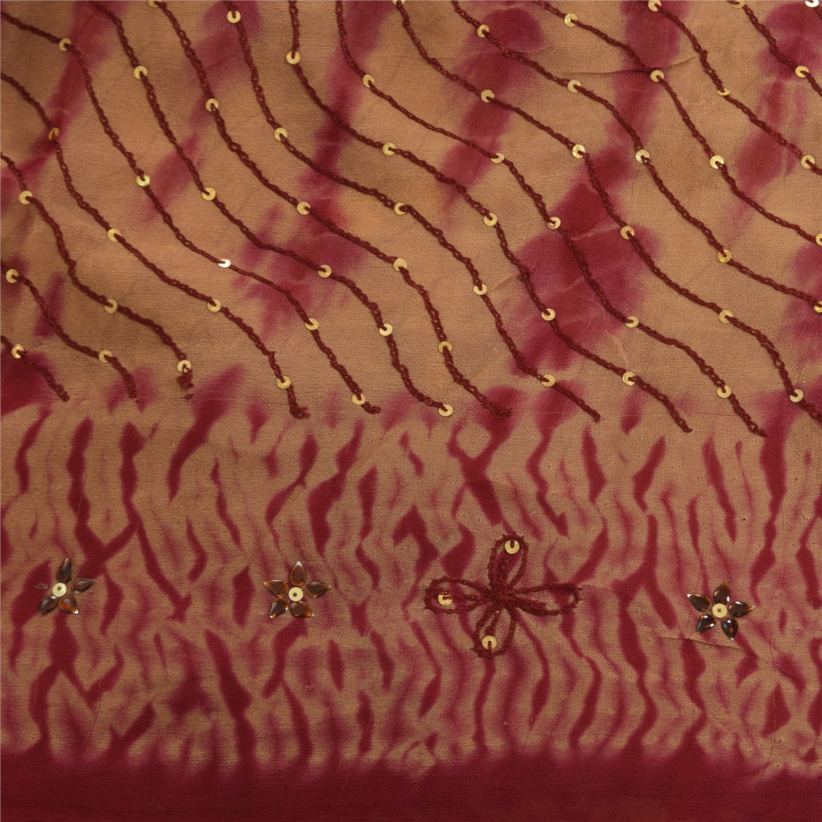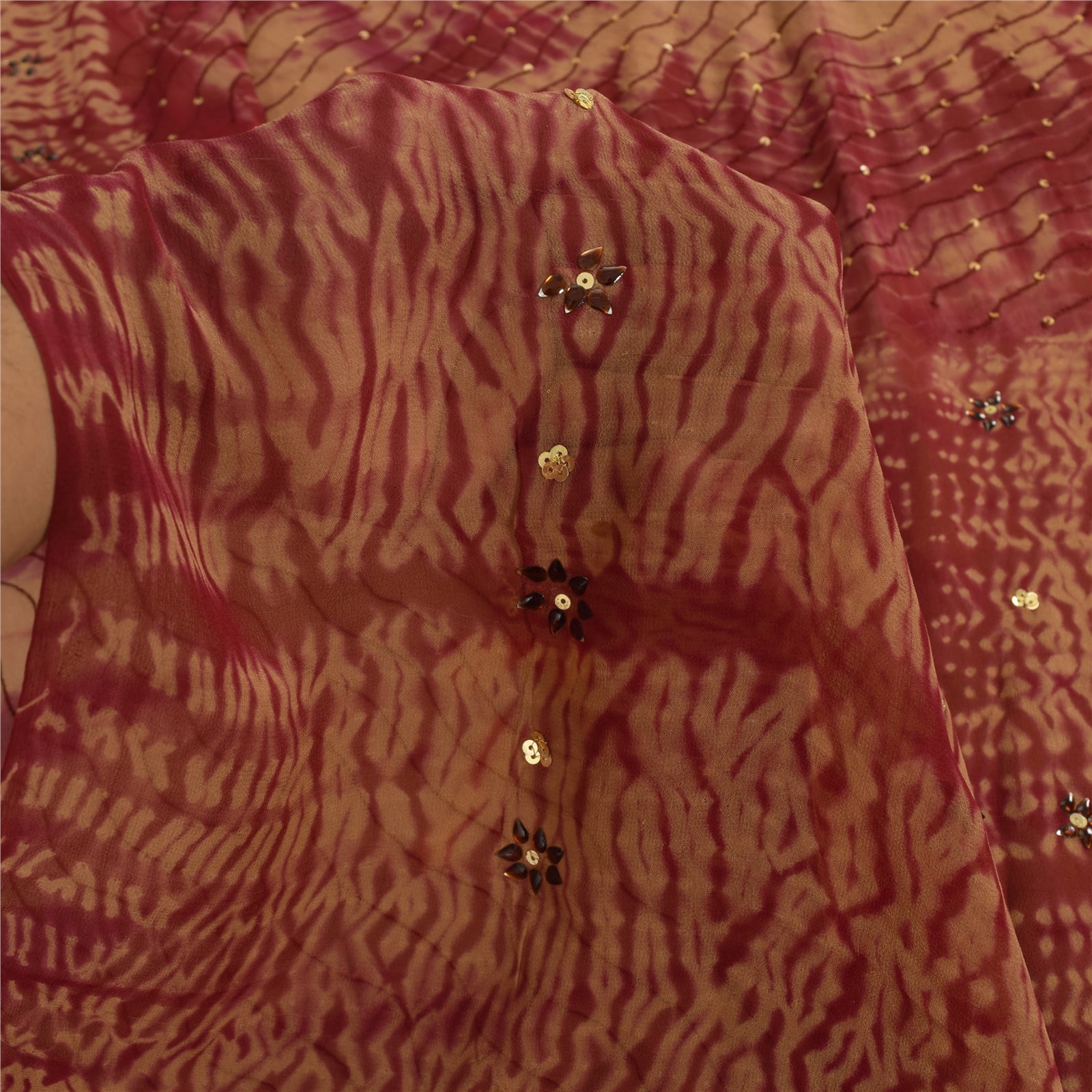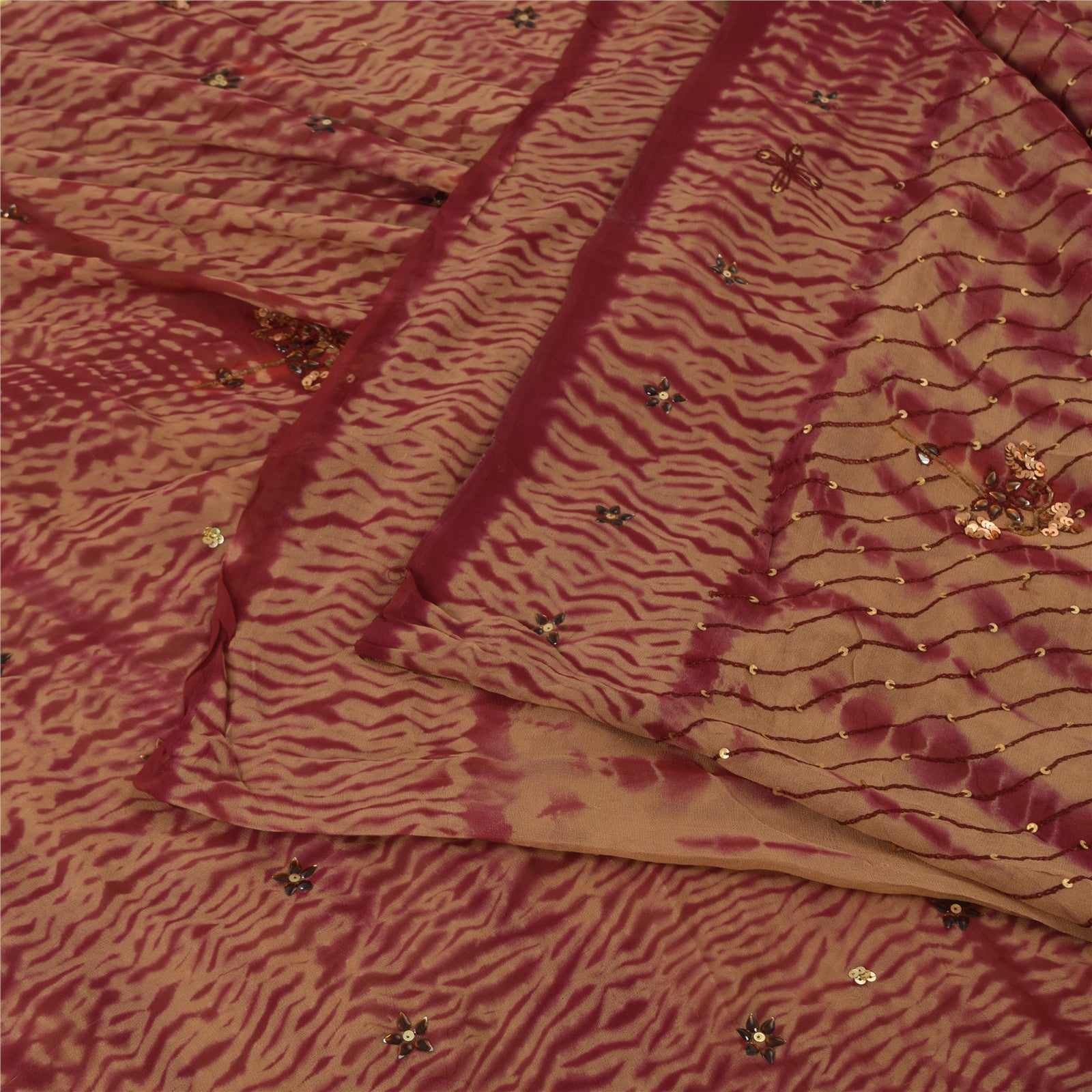 Sanskriti Vintage Brown Sarees Pure Georgette Hand Beaded Ethnic Sari 5yd Sustainable Fabric