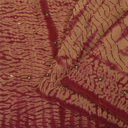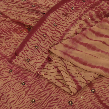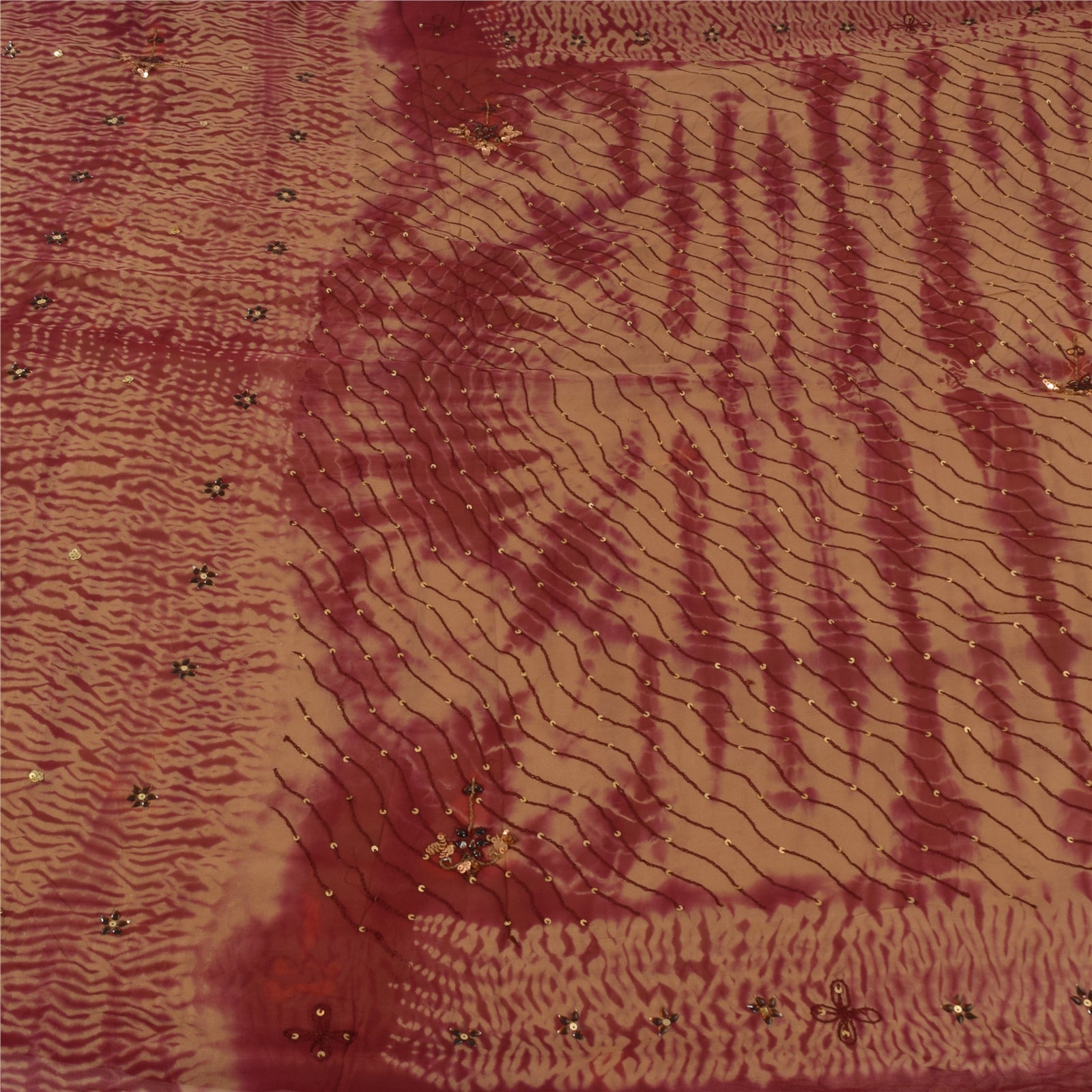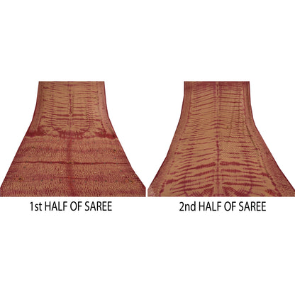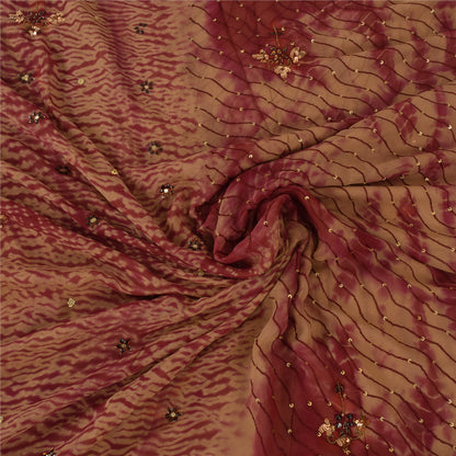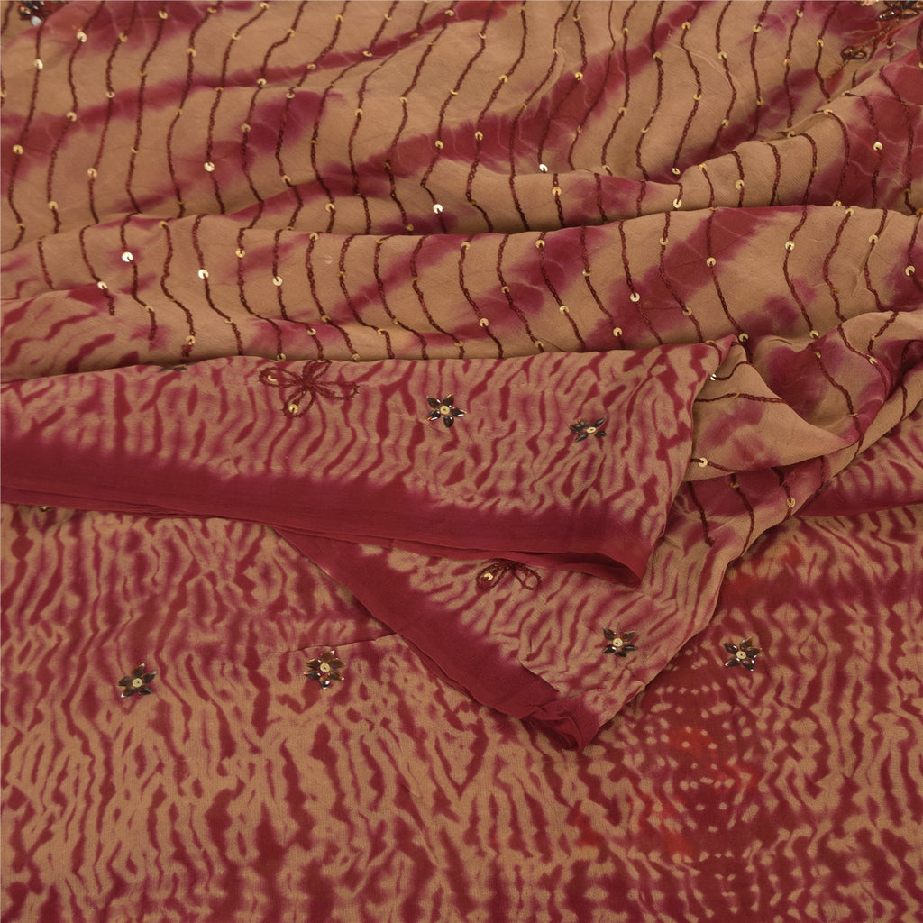 Sanskriti Vintage Brown Sarees Pure Georgette Hand Beaded Ethnic Sari 5yd Sustainable Fabric