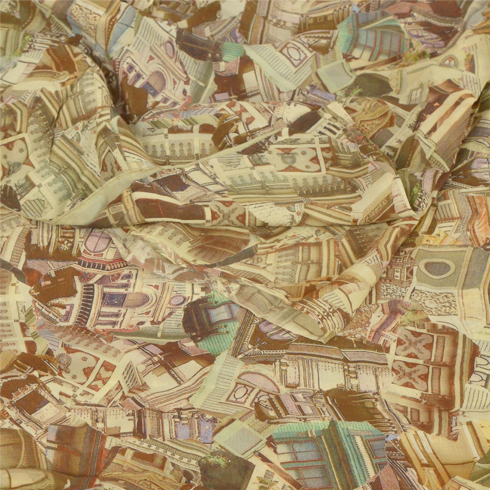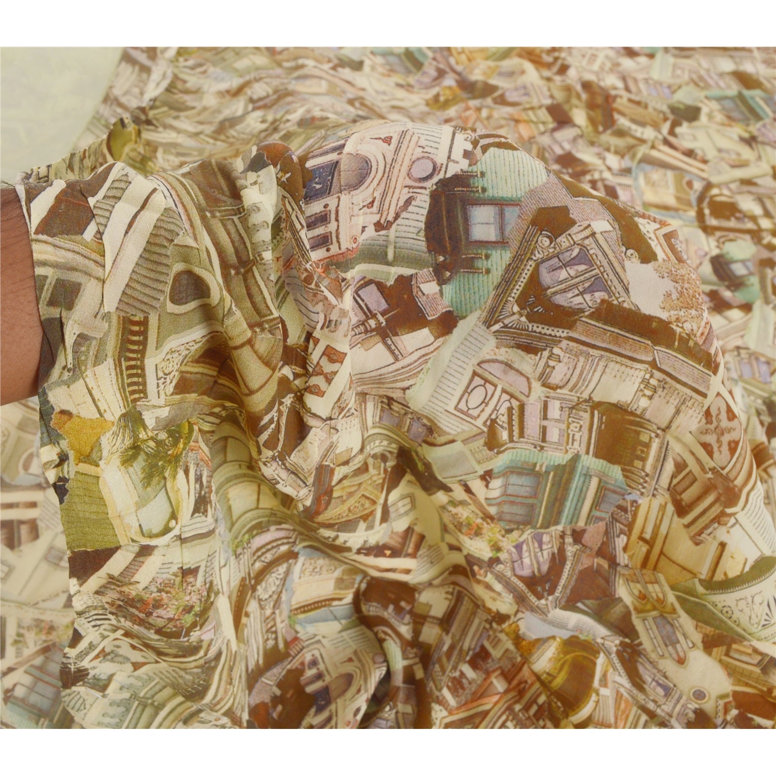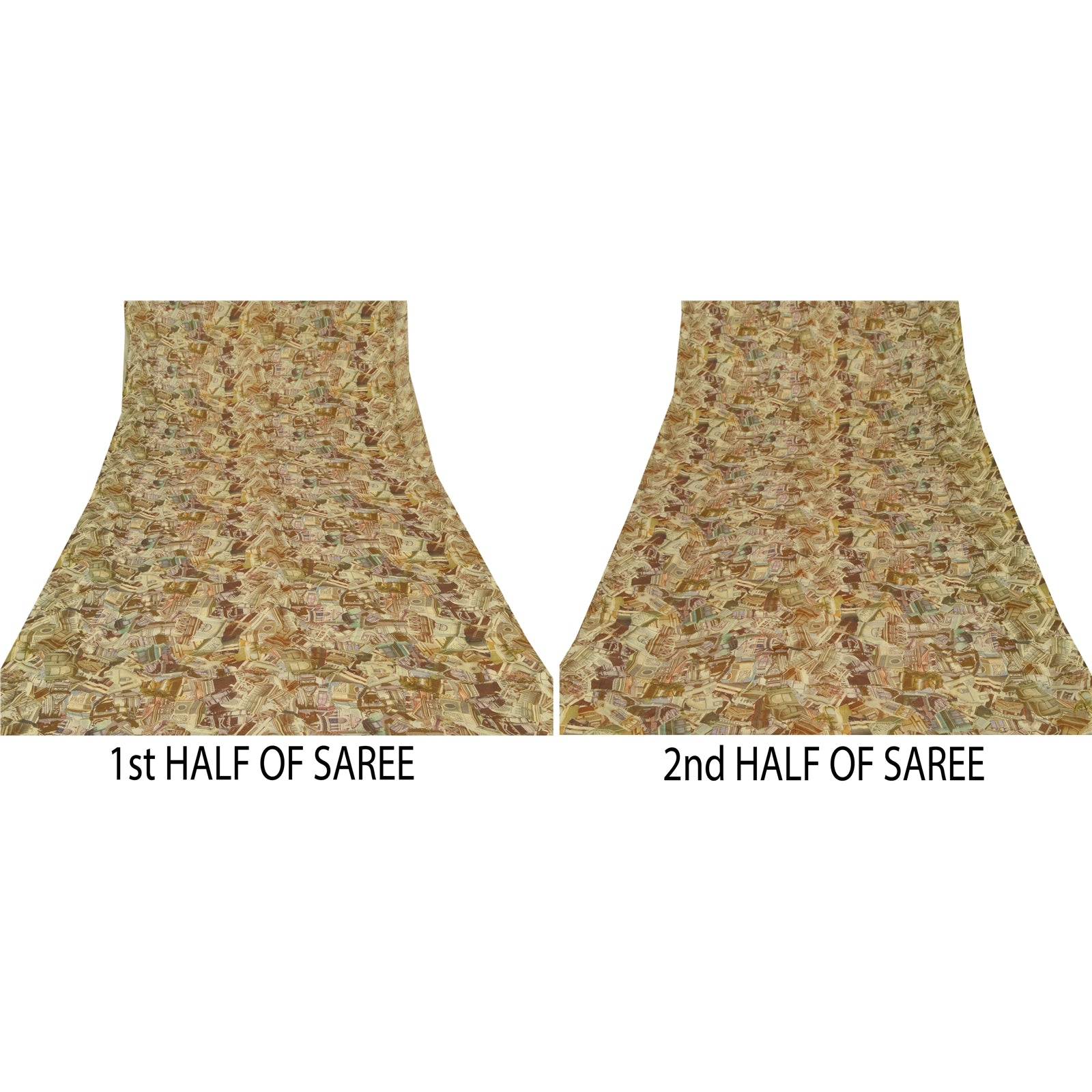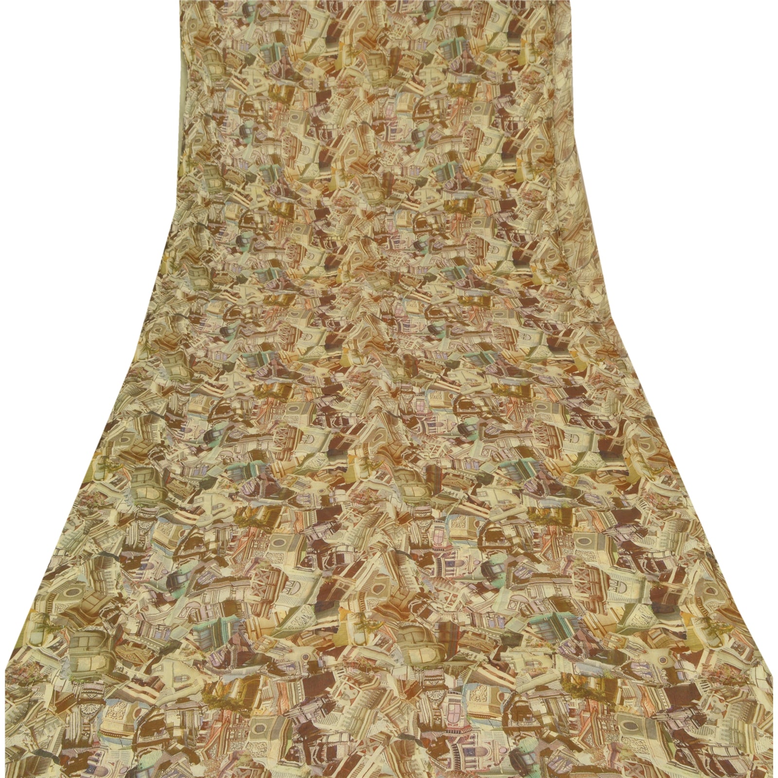 Sanskriti Vintage Cream Sarees Blend Silk Printed Sari Craft Sewing Sustainable Fabric