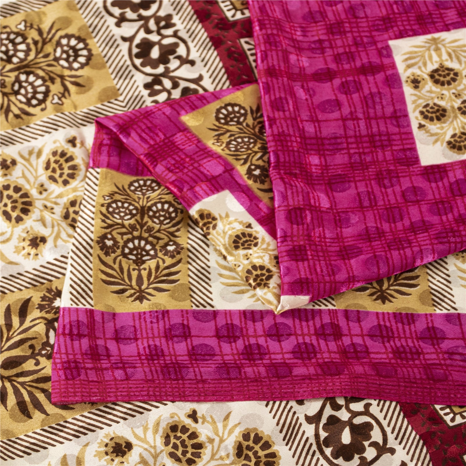 Sanskriti Vintage Dark Pink Sarees Moss Crepe Floral Print Craft Fabric 5+YDSari