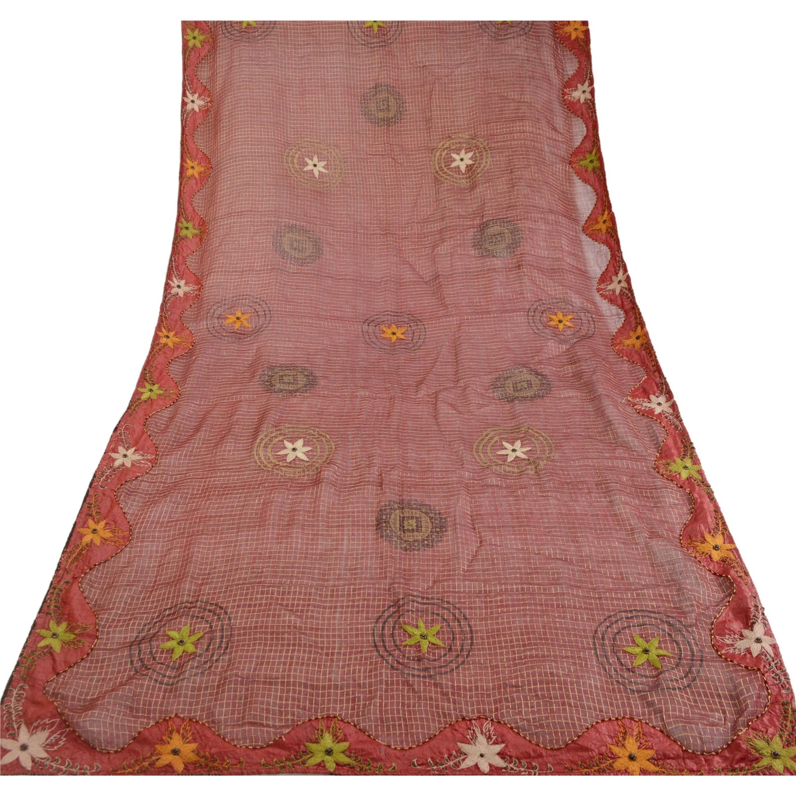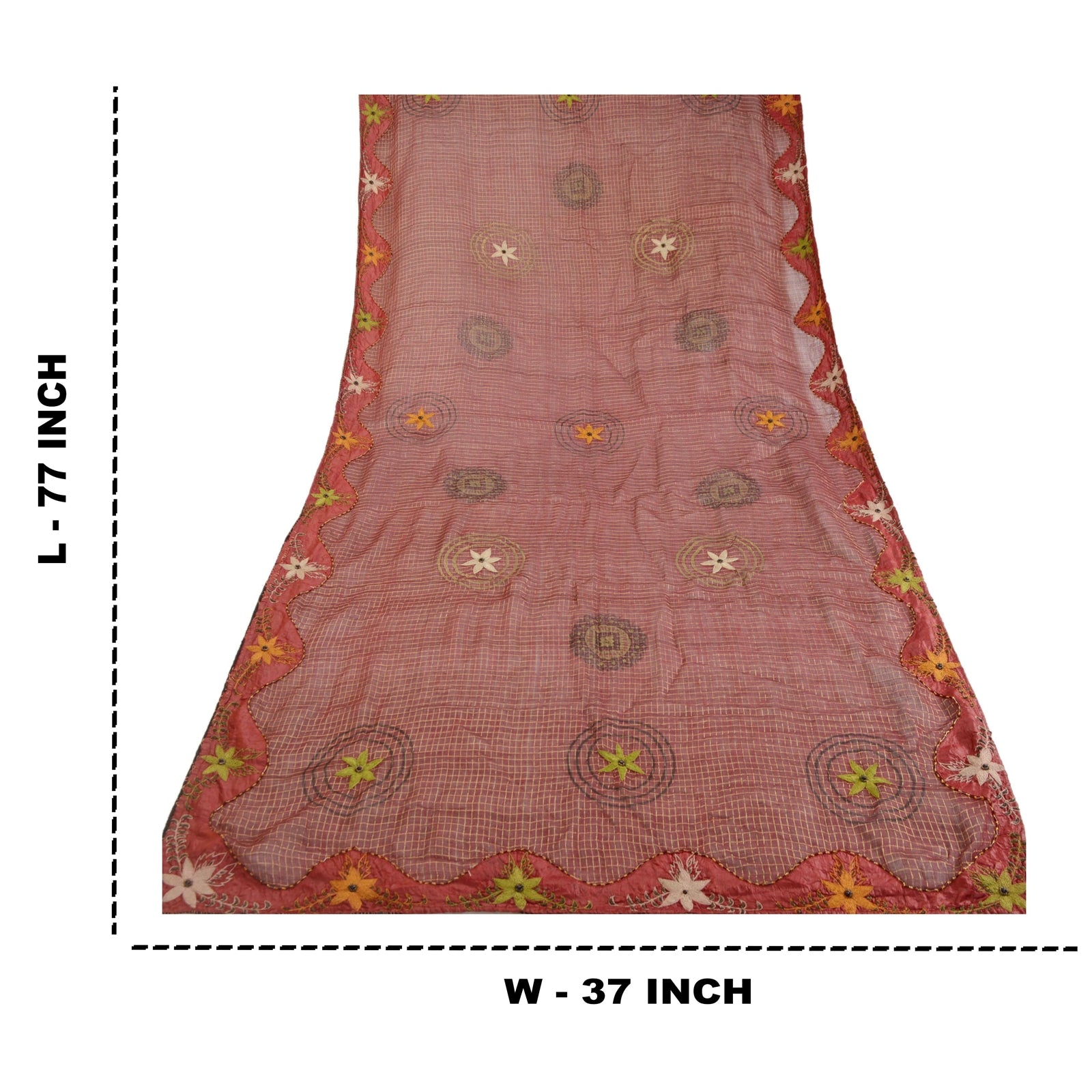 Sanskriti Vintage Dupatta Long Stole Cotton Red Hand Beaded Woven Scarves