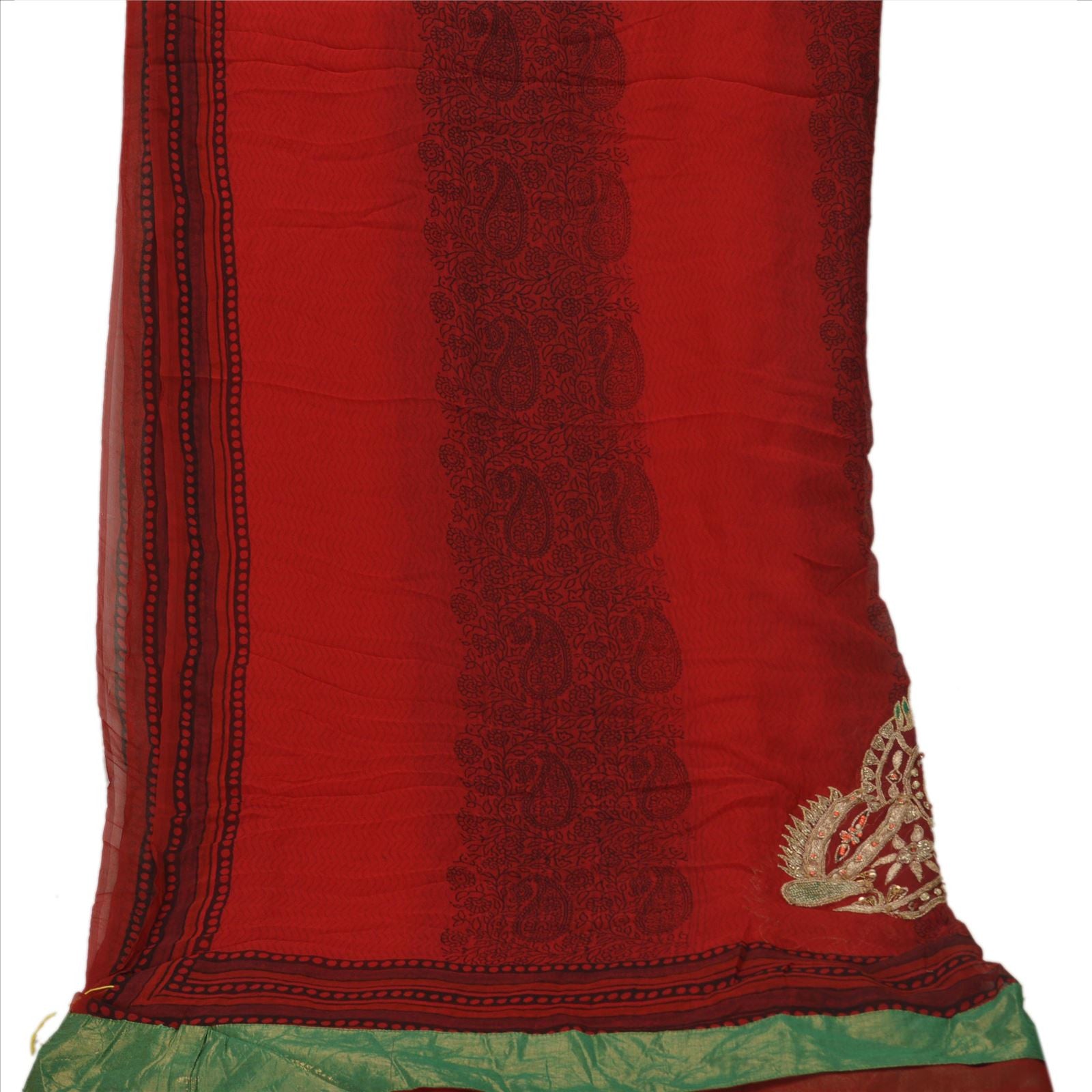 Sanskriti Vintage Dupatta Long Stole Georgette Maroon Hijab Hand Beaded Scarves
