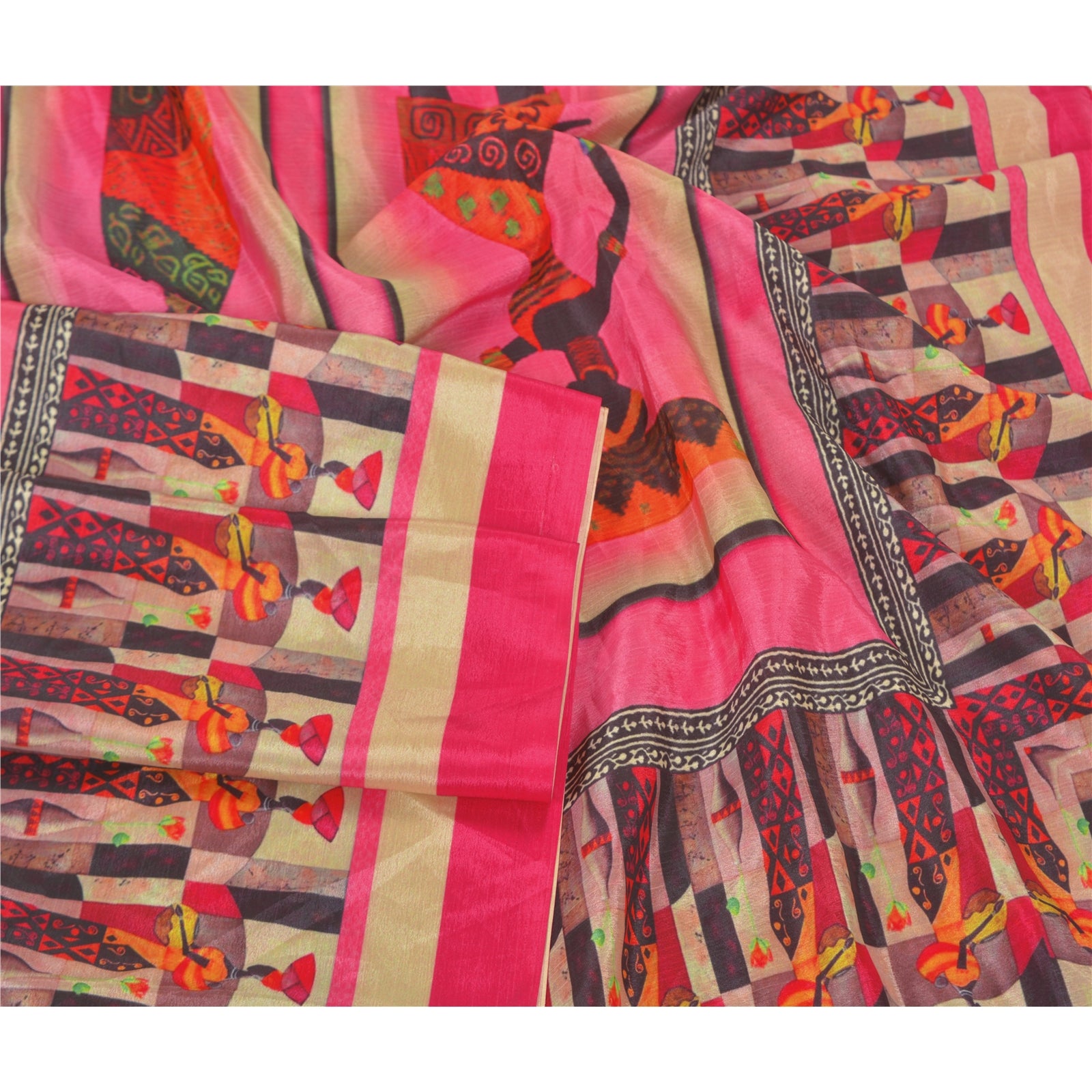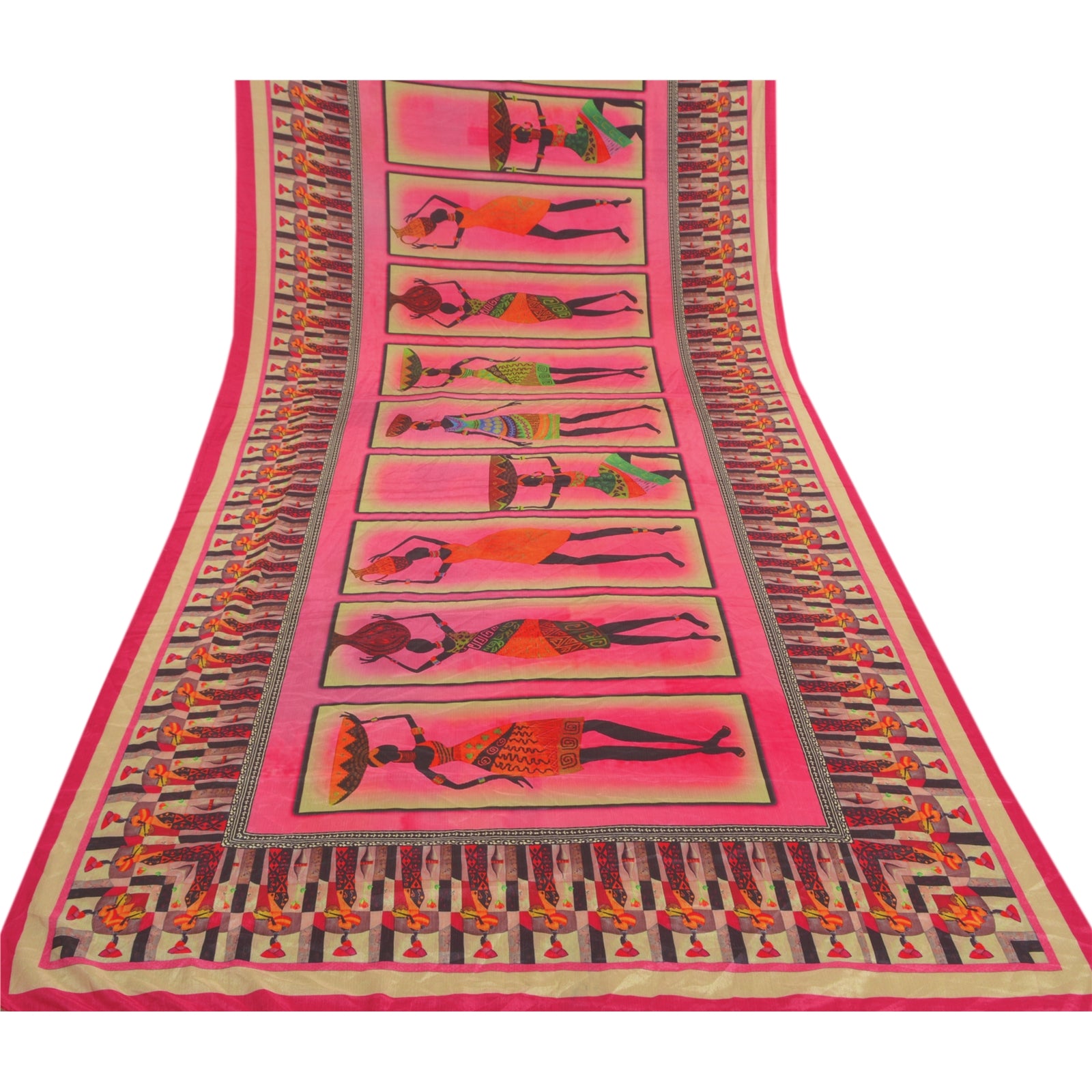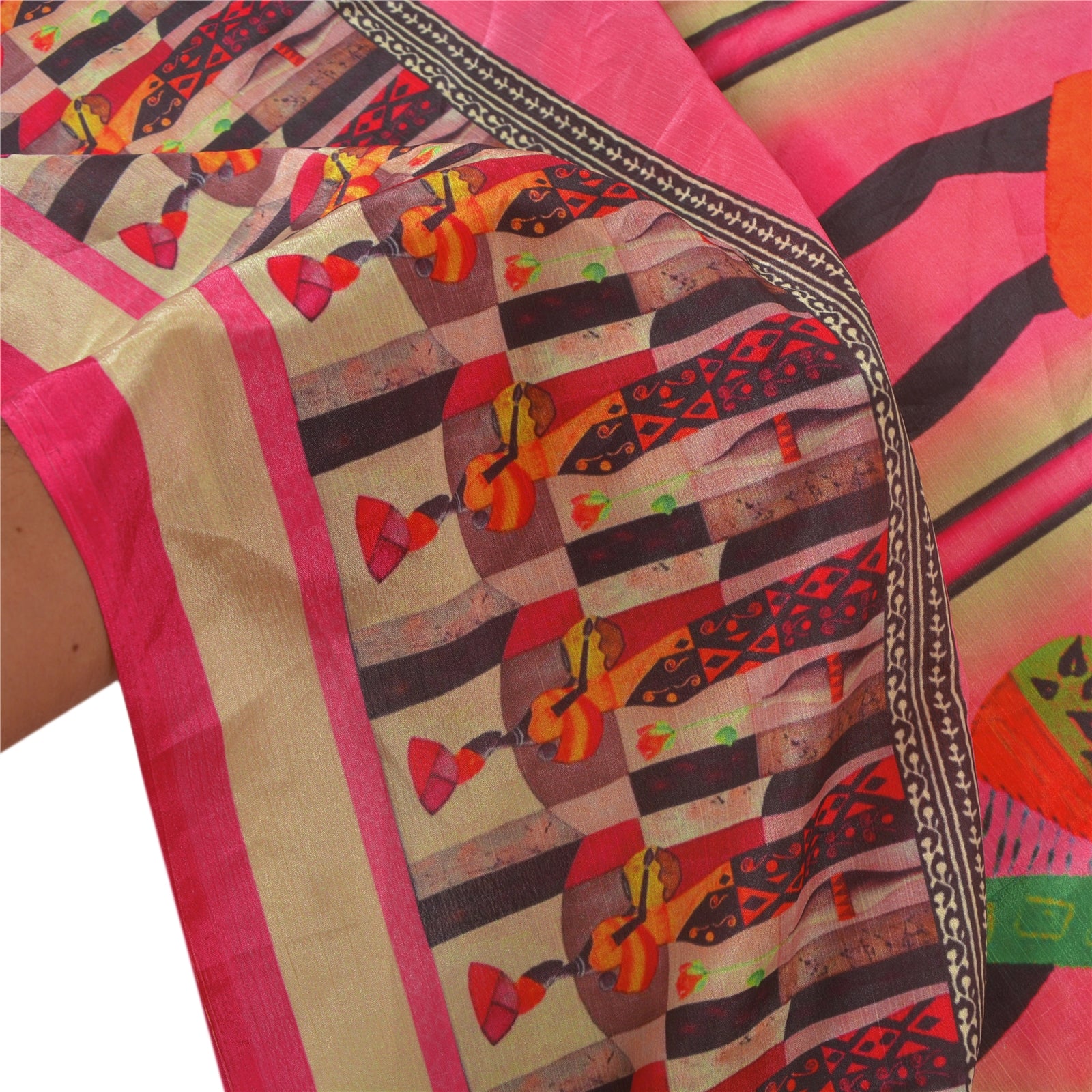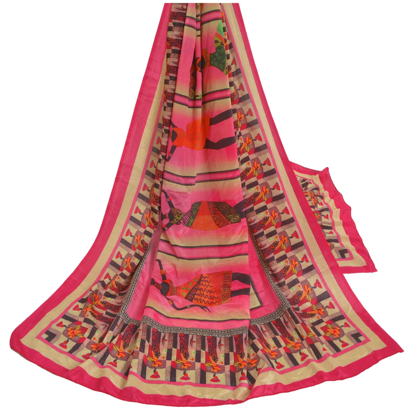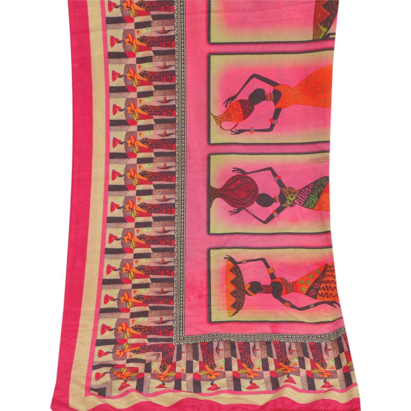 Sanskriti Vintage Dupatta Long Stole Pink Hijab Digital Printed Human Scarves
