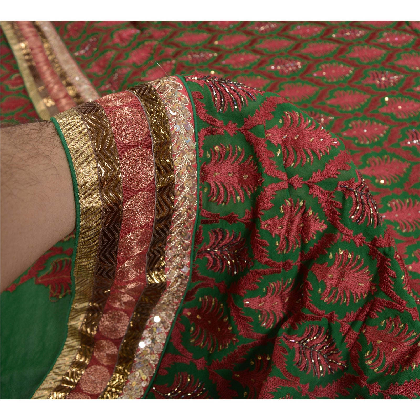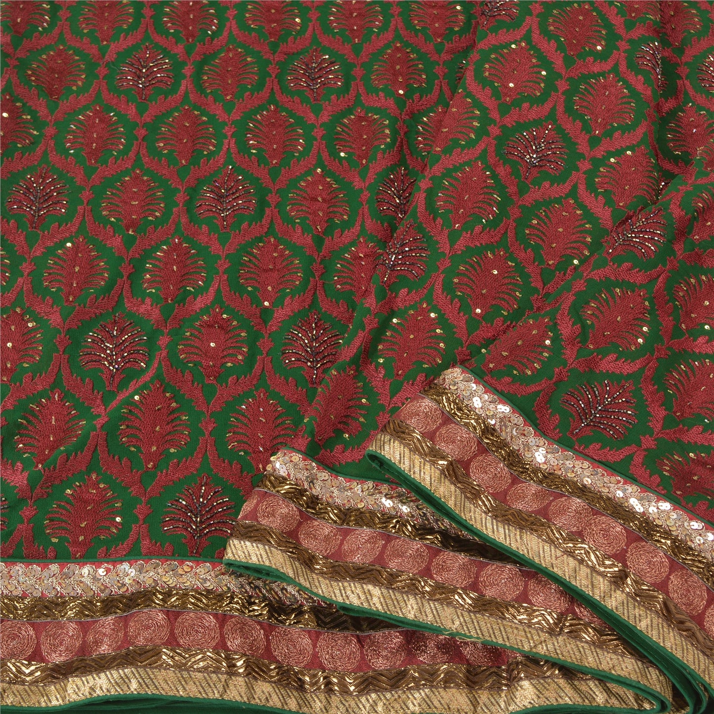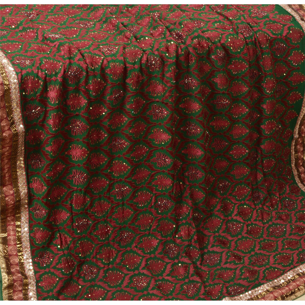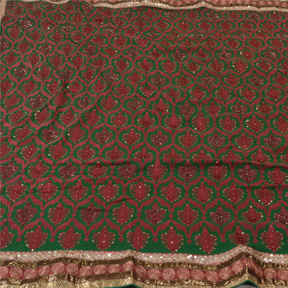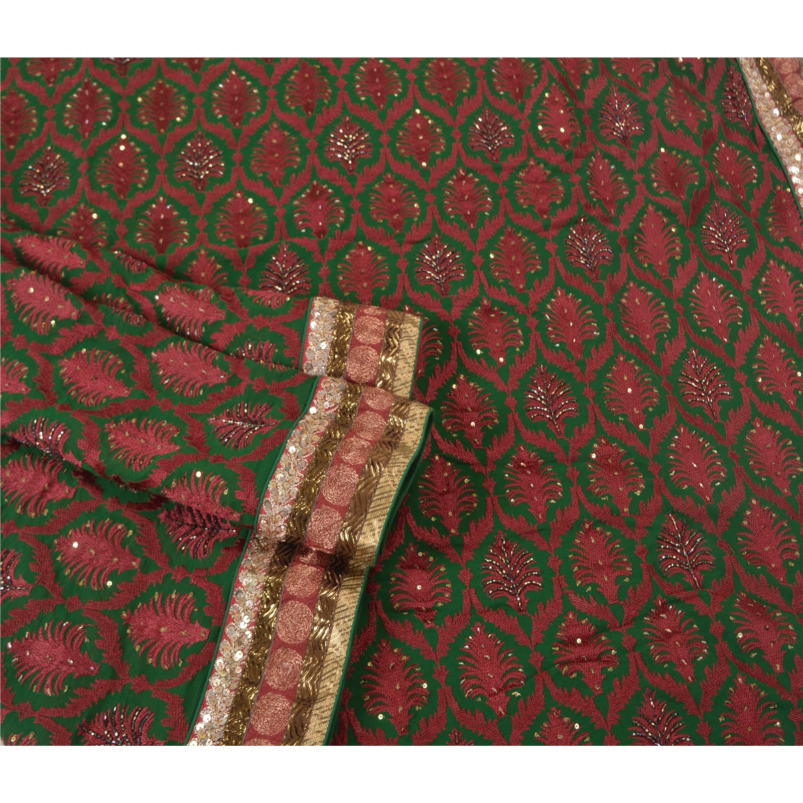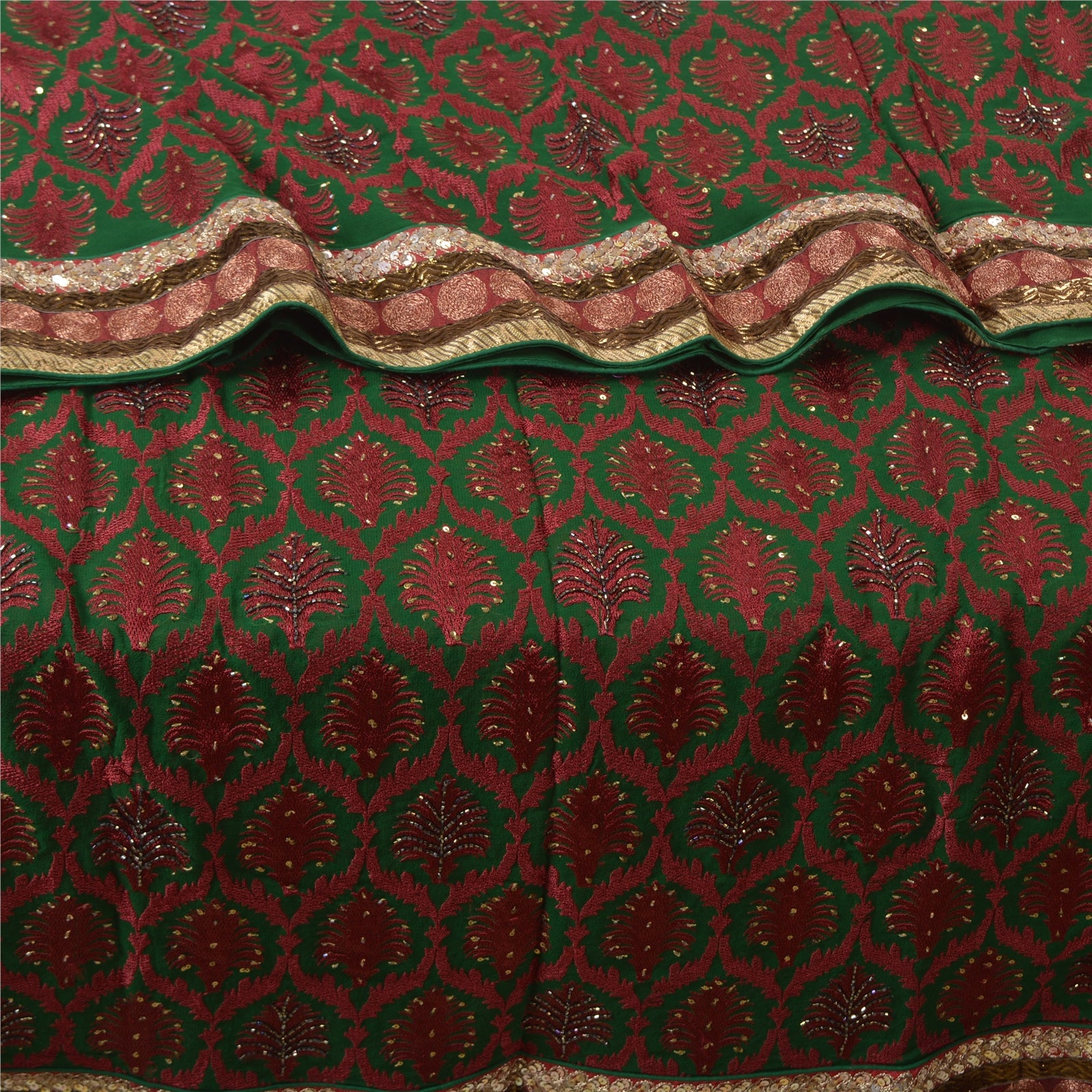 'THE ITEM COLOR OR SHADE MAY BE DARKER OR LIGHTER THAN THE PICTURE.' What a beautiful masterpiece saree Base Sustainable Fabric is pure georgette silk in green color. Sparkling gold sequins along with golden zari work. You can see multi reflected glass beads, red thread work look attractive. Pink thread work is truly eye catching. Saree has beautiful maroon & golden Sustainable Fabric applique work on border with gold/copper zari work and gold sequins work which is looking awesome. A marvelous one of a kind item. WOW!!! 'International buyers please note: Import duties, taxes, and charges are not included in the item price or postage cost. These charges are the buyer's responsibility. Please check with your country's customs office to determine what these additional costs will be prior to bidding or buying. Buyer will pay custom duty/tax. It is calculated and charged differently by every country. As a seller I do not have any control over it. VAT or sales tax is calculated by the platform at the time of checkout. Customs charge is payable at the time of delivery.'