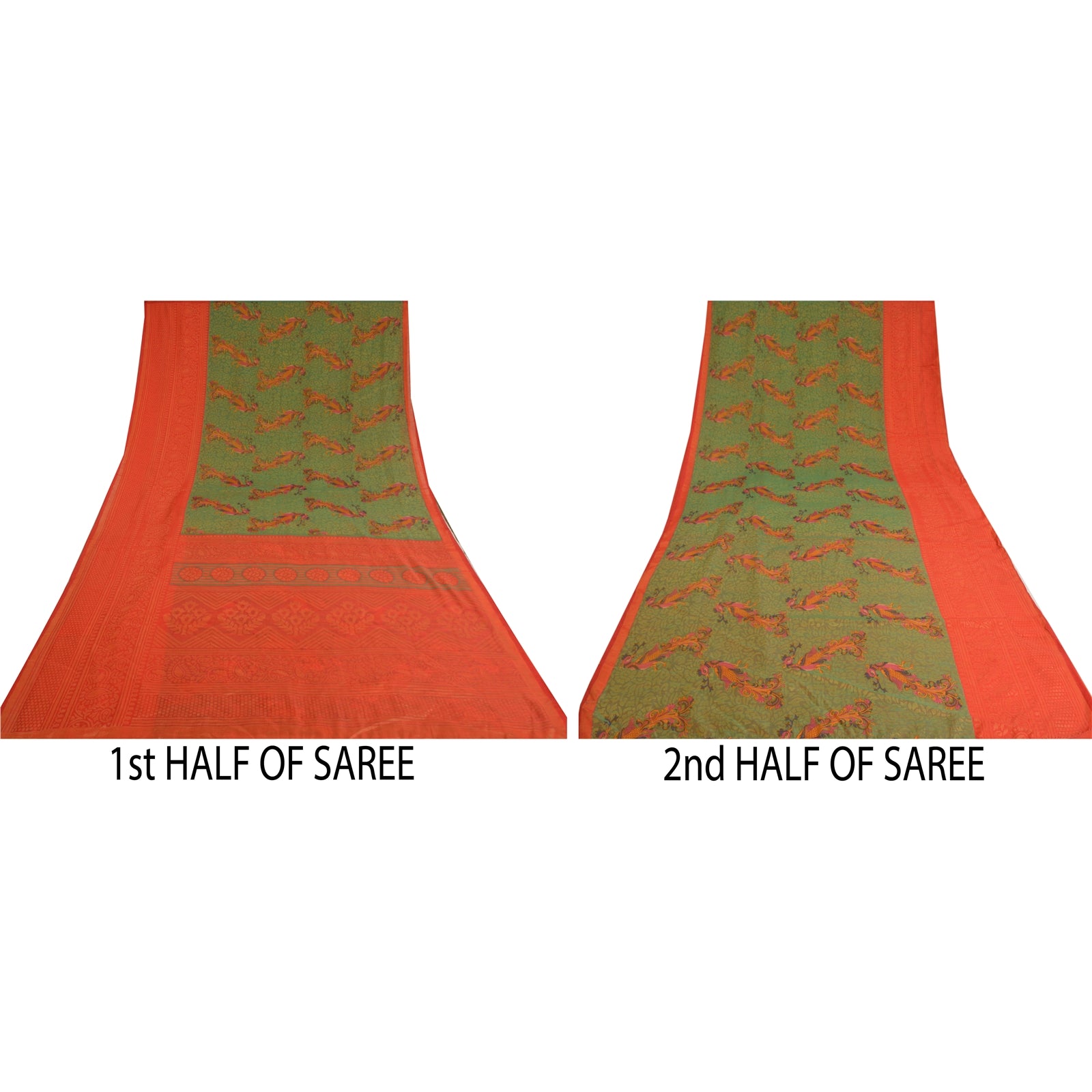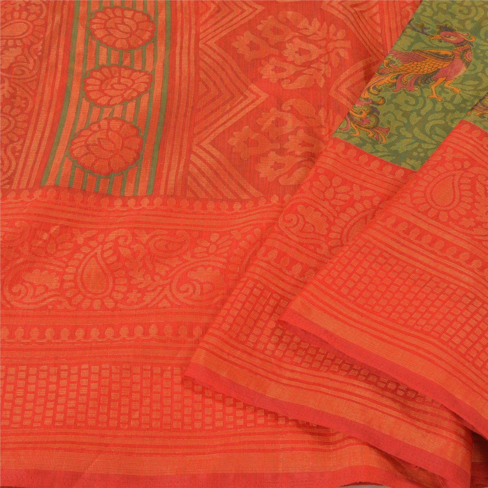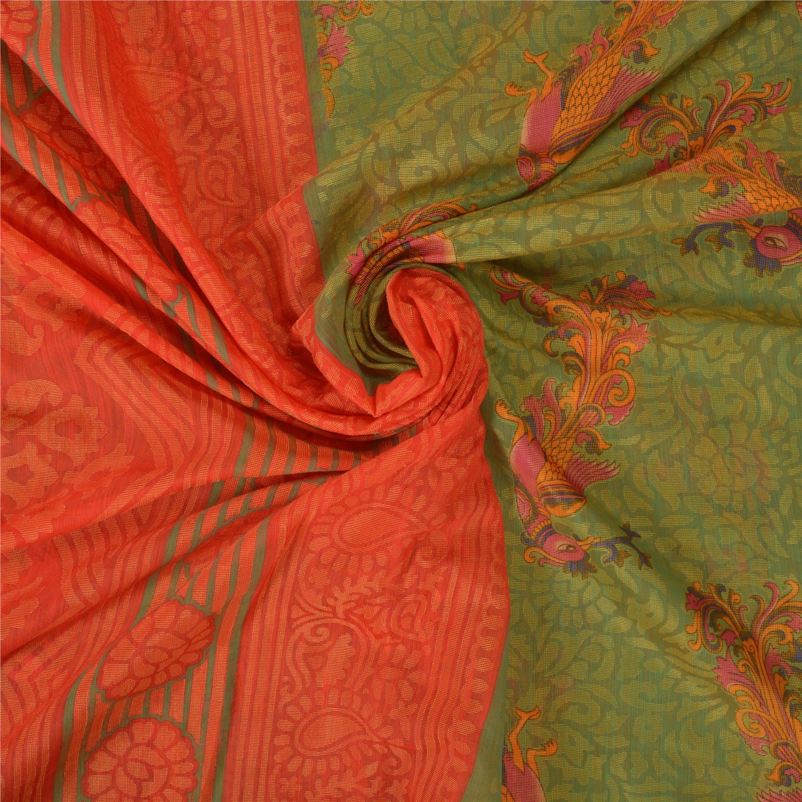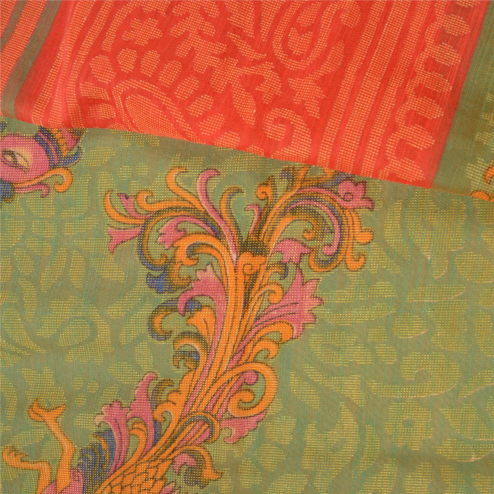 Sanskriti Vintage Green Indian Sarees Art Silk Woven Printed Sari Craft Sustainable Fabric