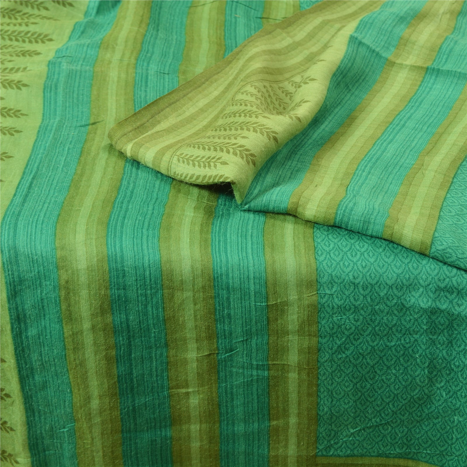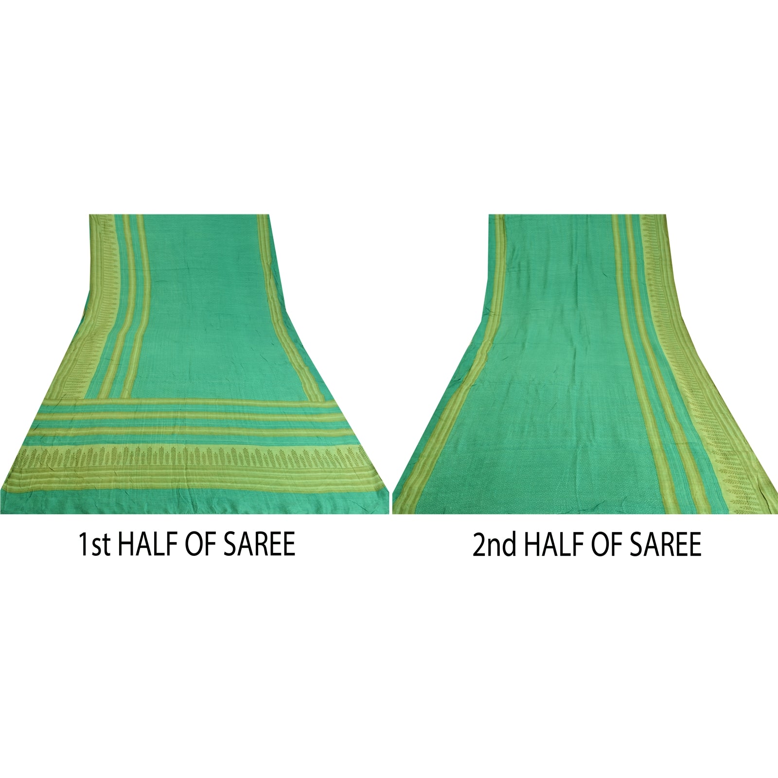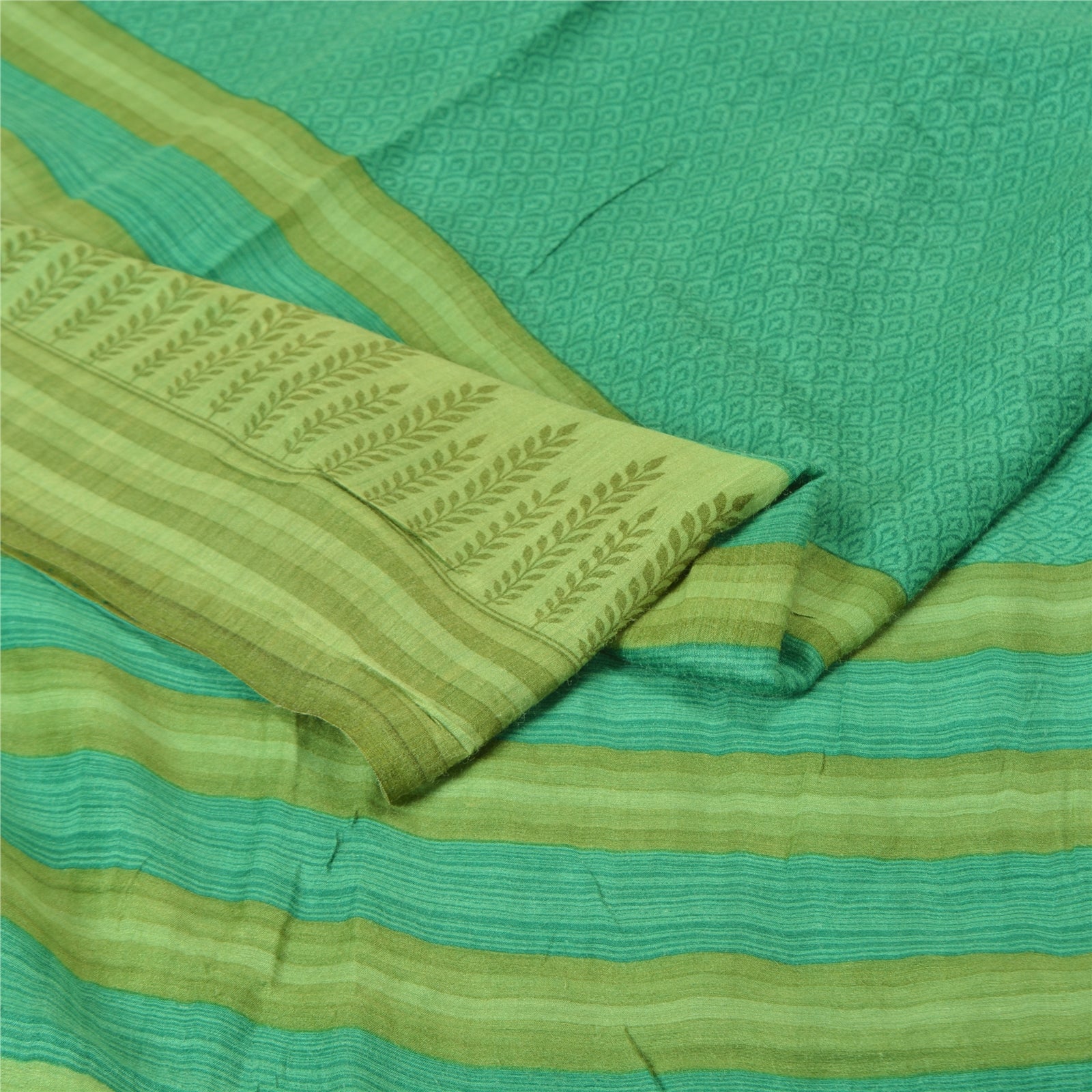 Sanskriti Vintage Green Indian Sarees Pure Woolen Sustainable Fabric Printed Woven Sari