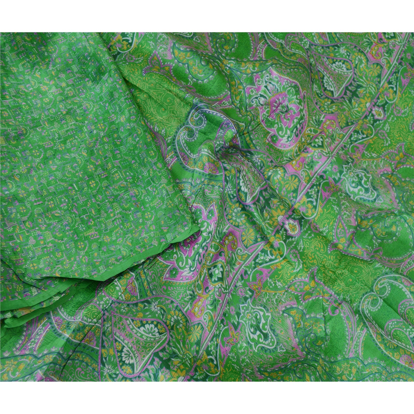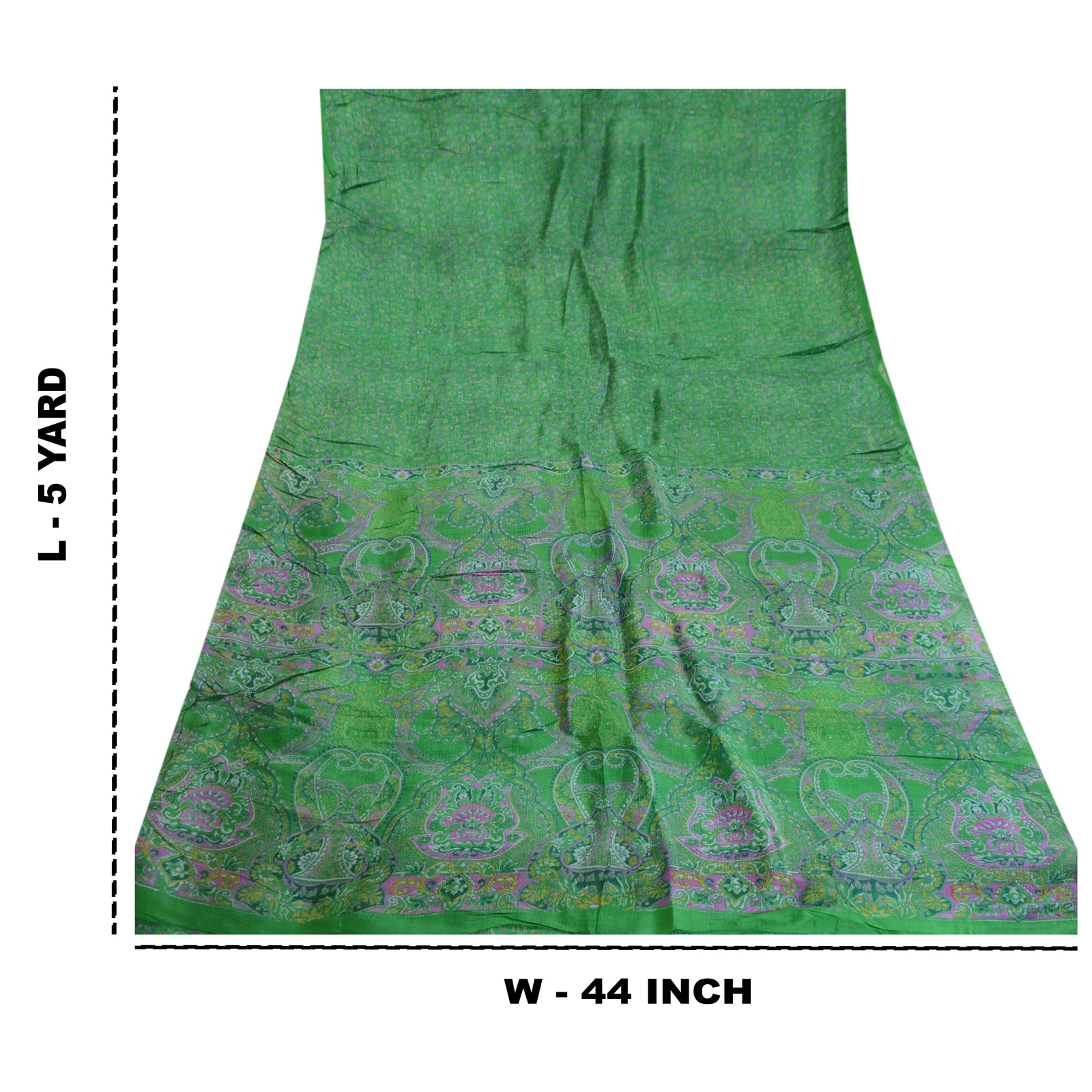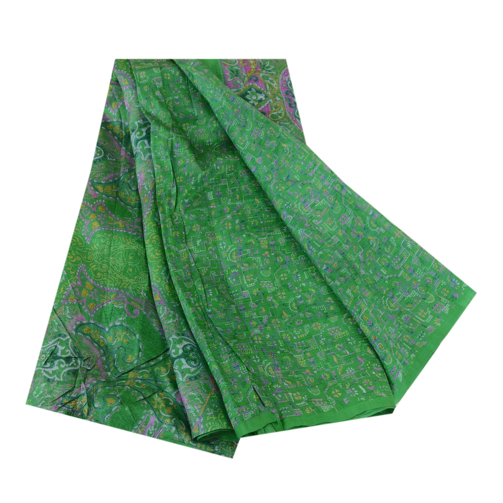 Sanskriti Vintage Green Printed Sarees 100% Pure Silk Sari Floral Craft Sustainable Fabric