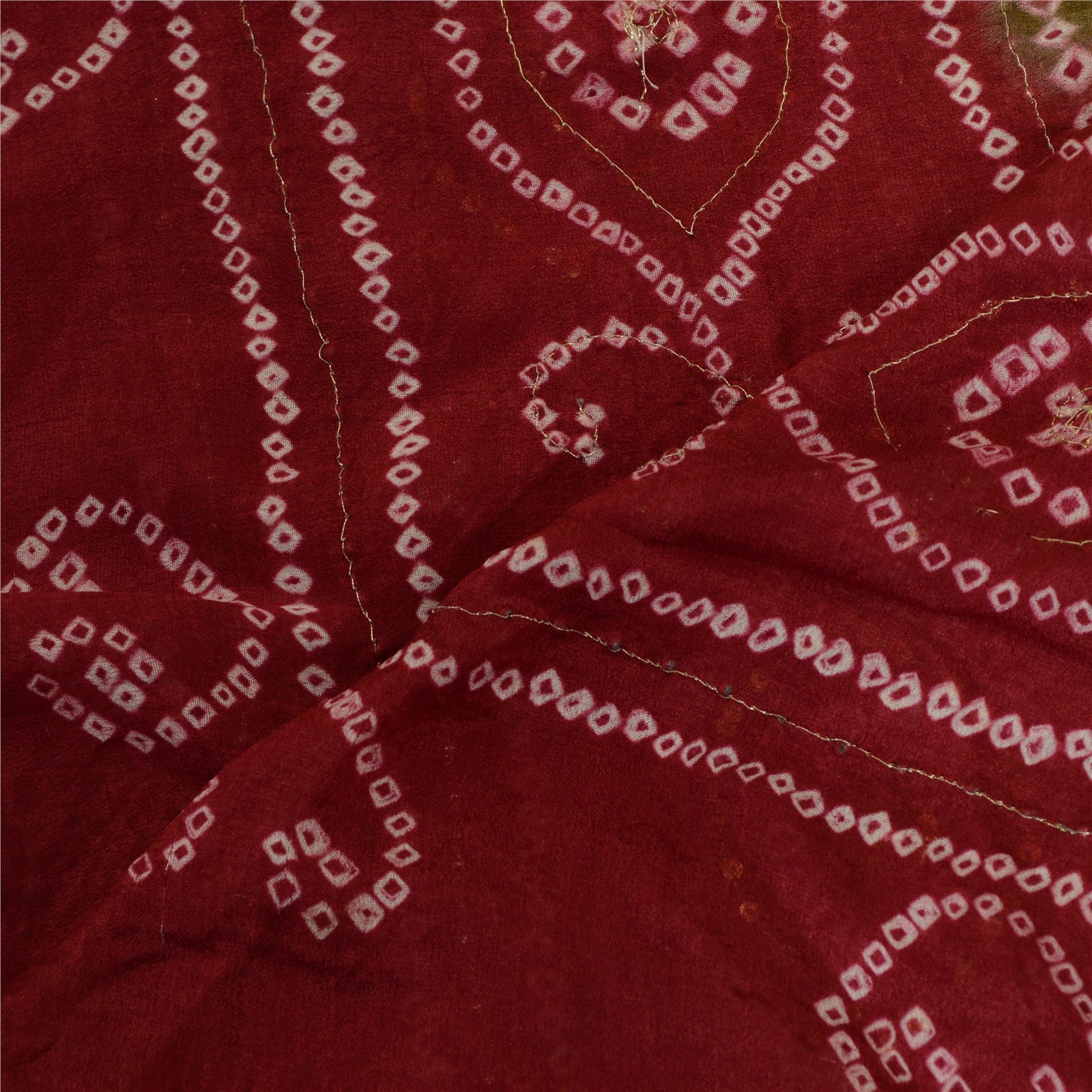Sanskriti Vintage Green/Red Long Dupatta/Stole Pure Georgette Handmade Bandhani